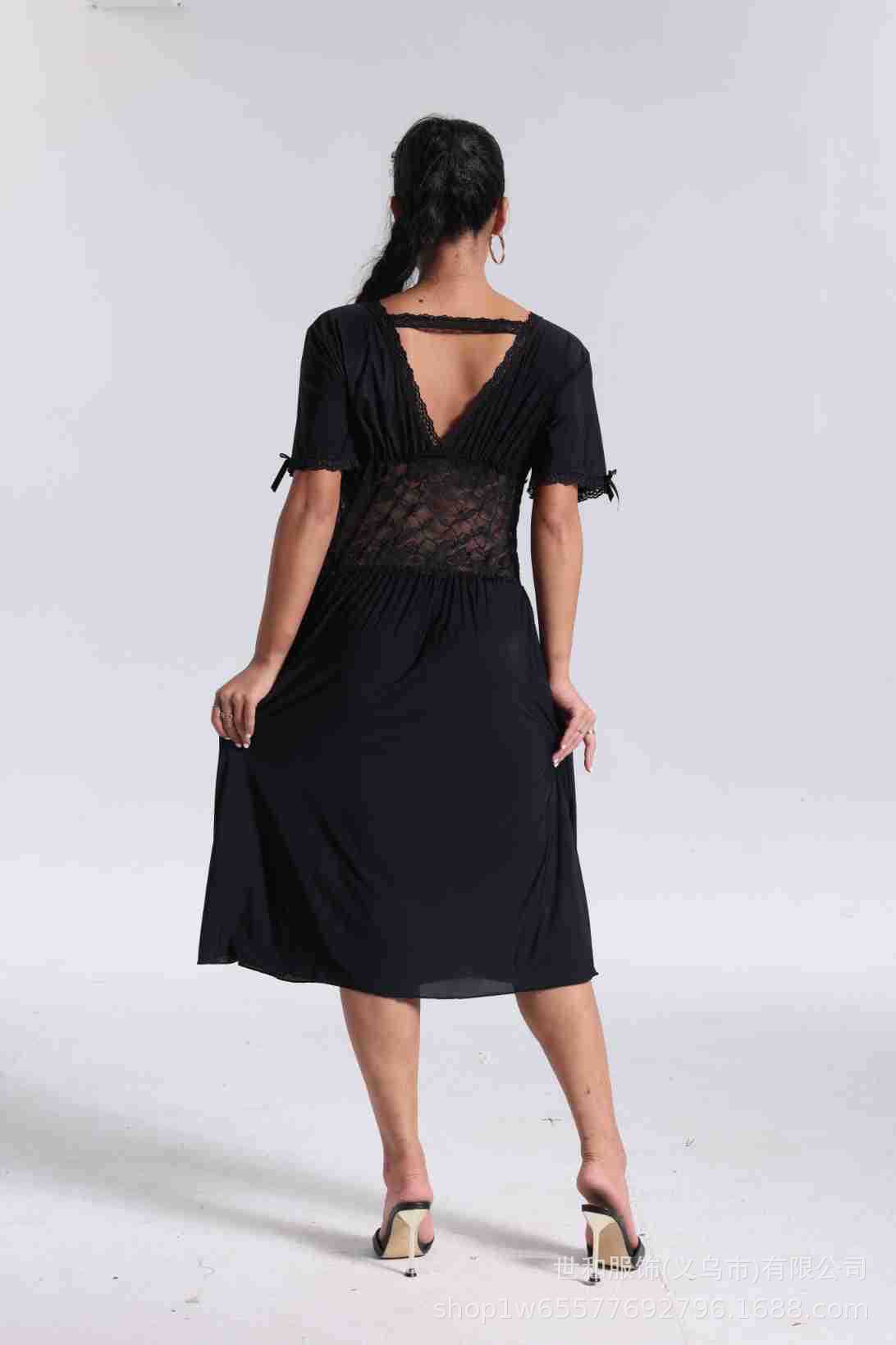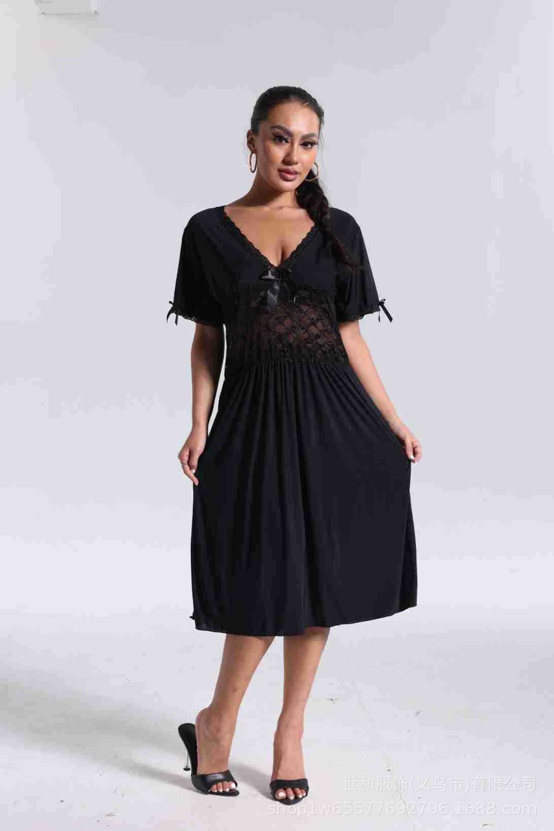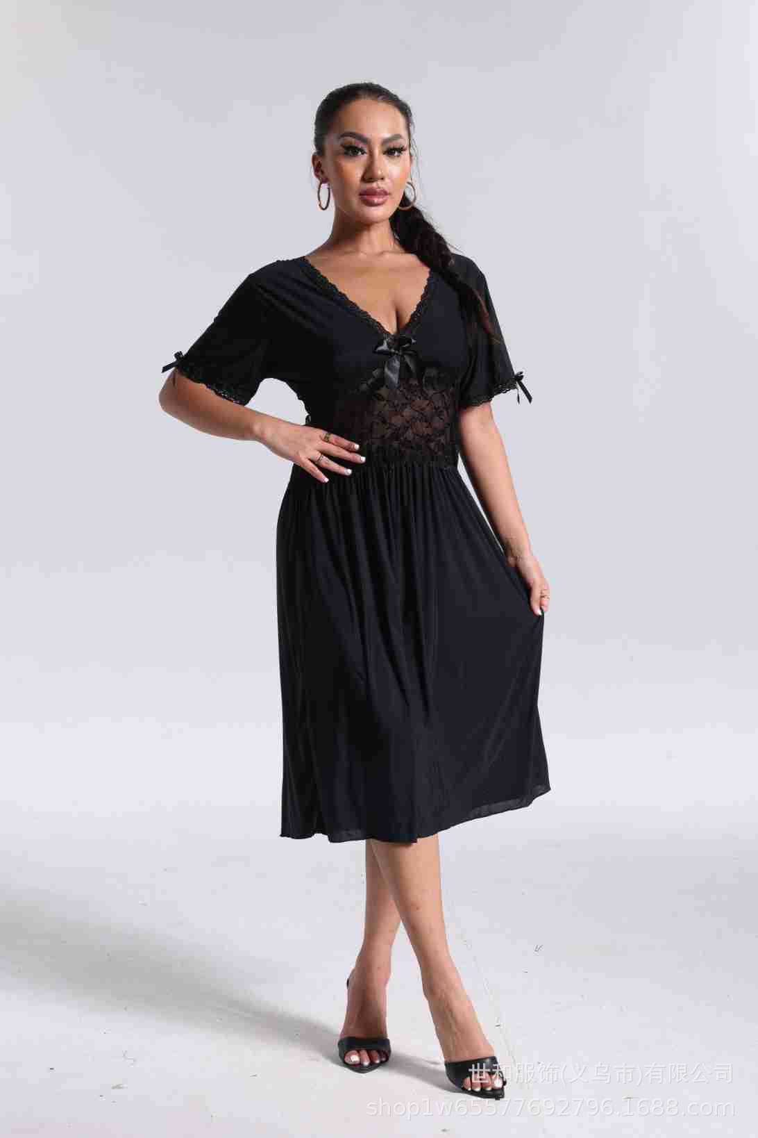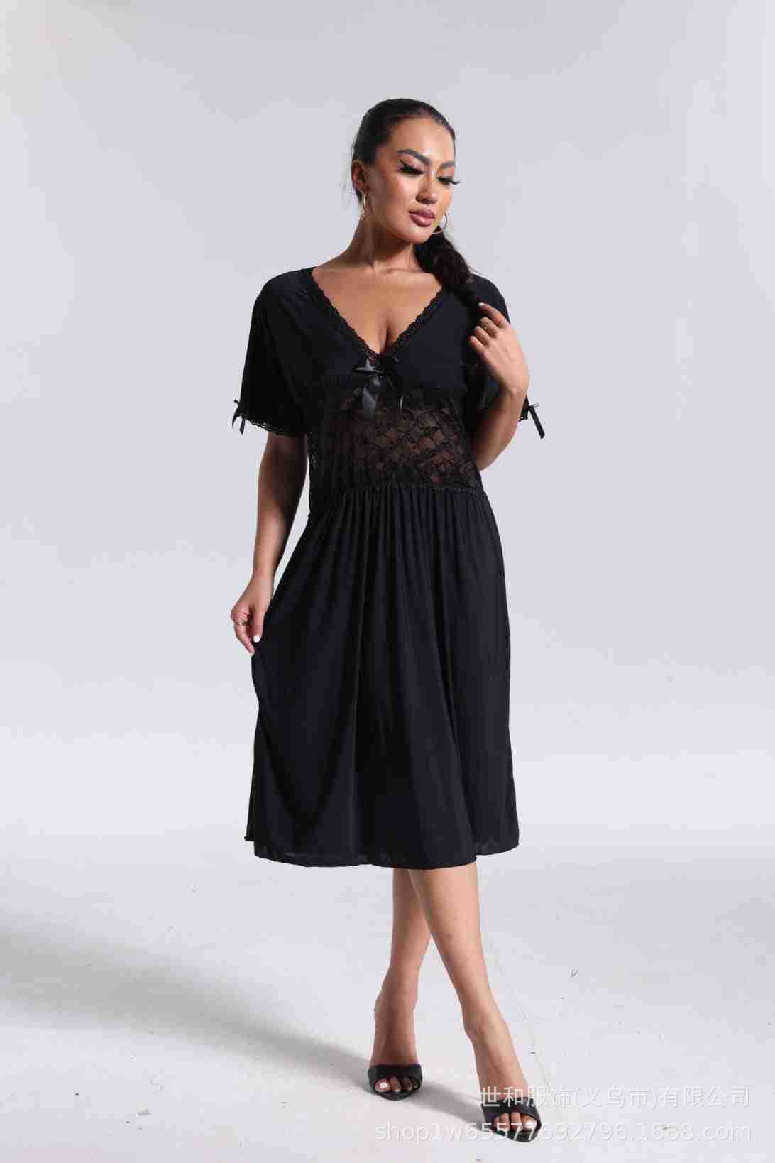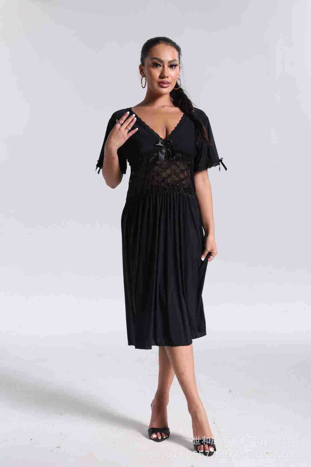 spring and summer new women's pajamas foreign trade women's large size modal stretch long lace nightdress 中文版