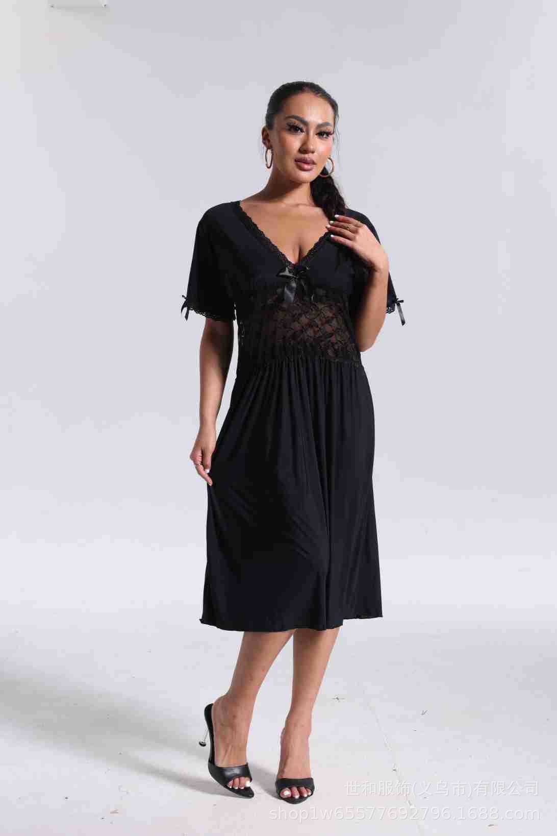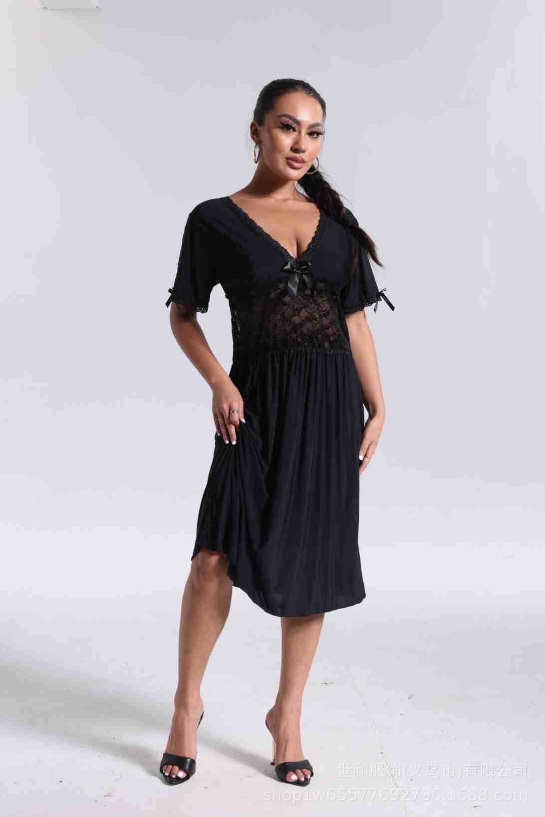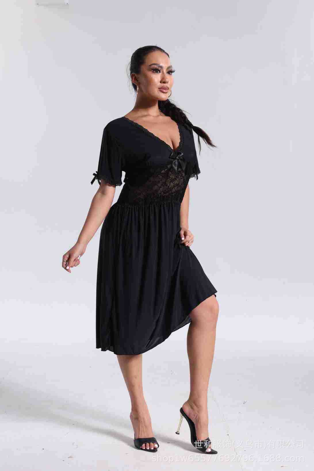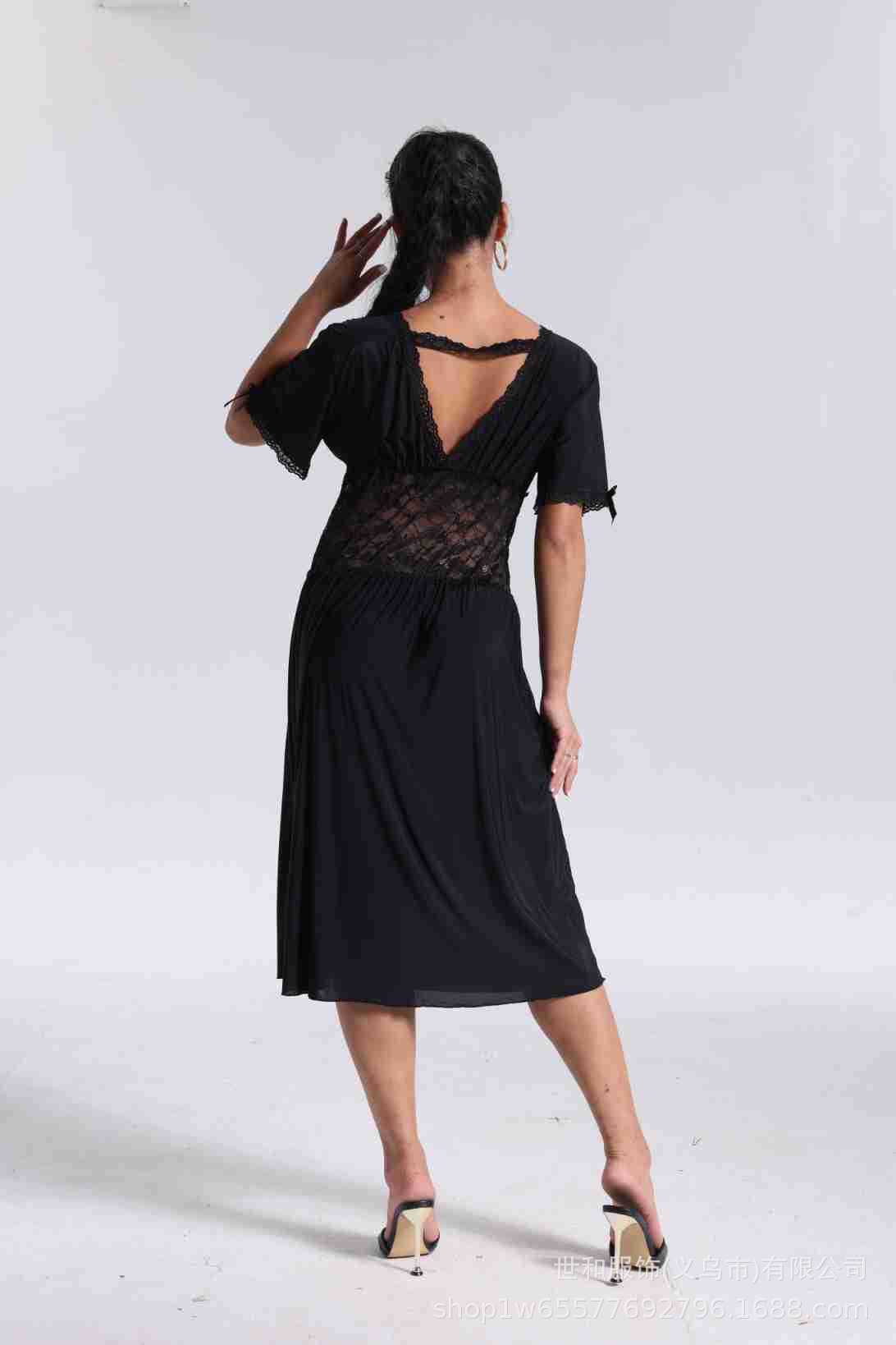 spring and summer new women's pajamas foreign trade women's large size modal stretch long lace nightdress 中文版