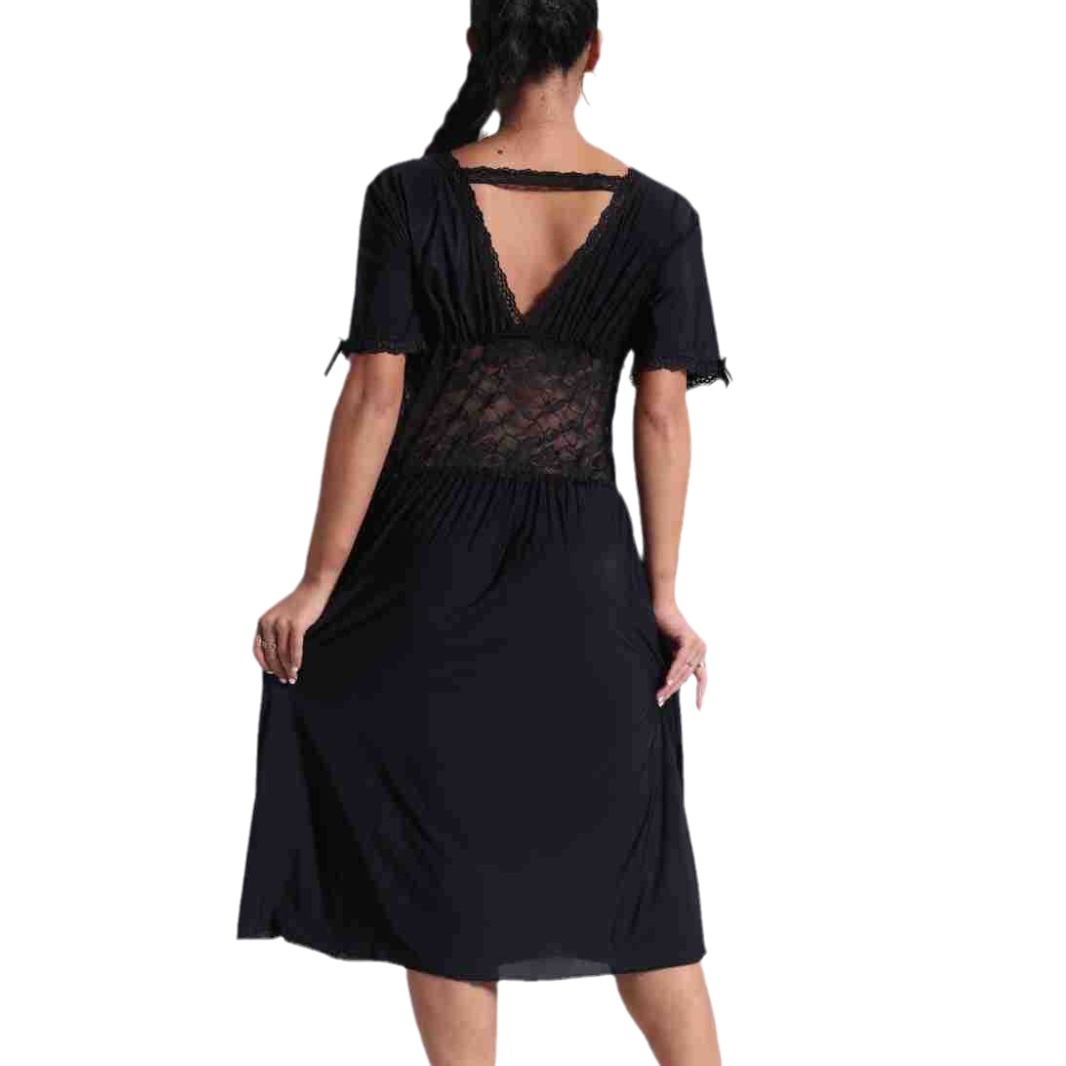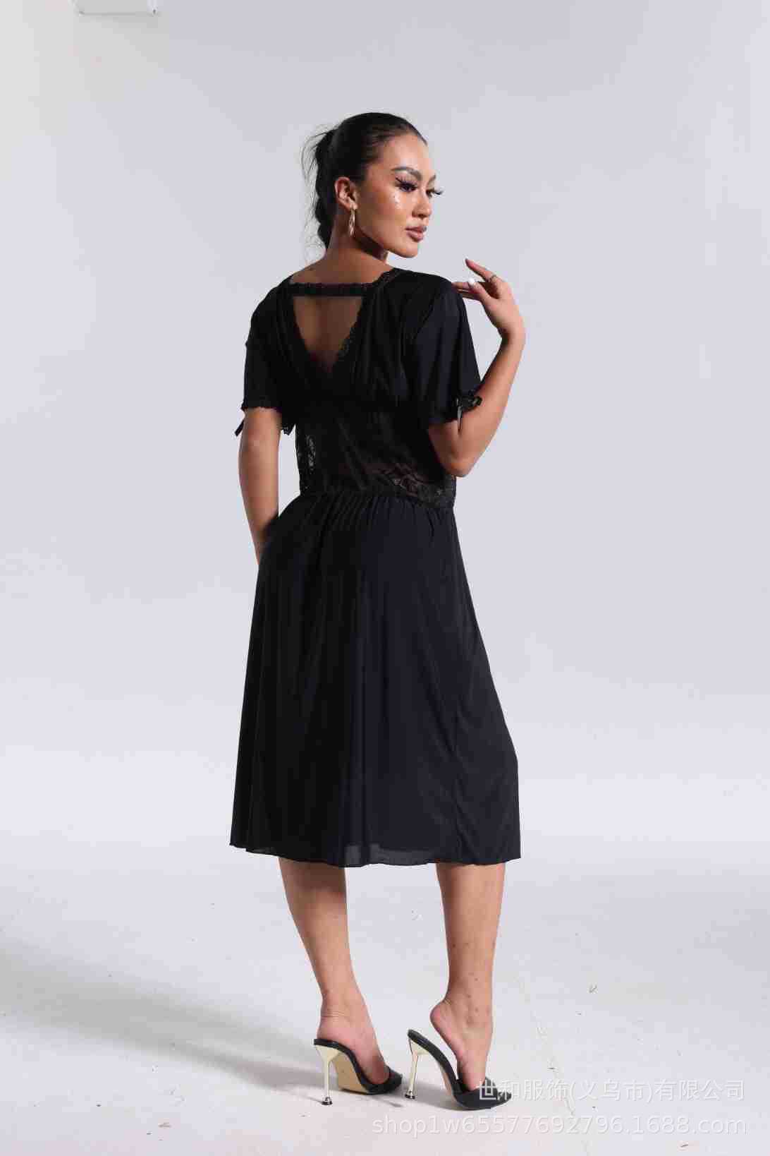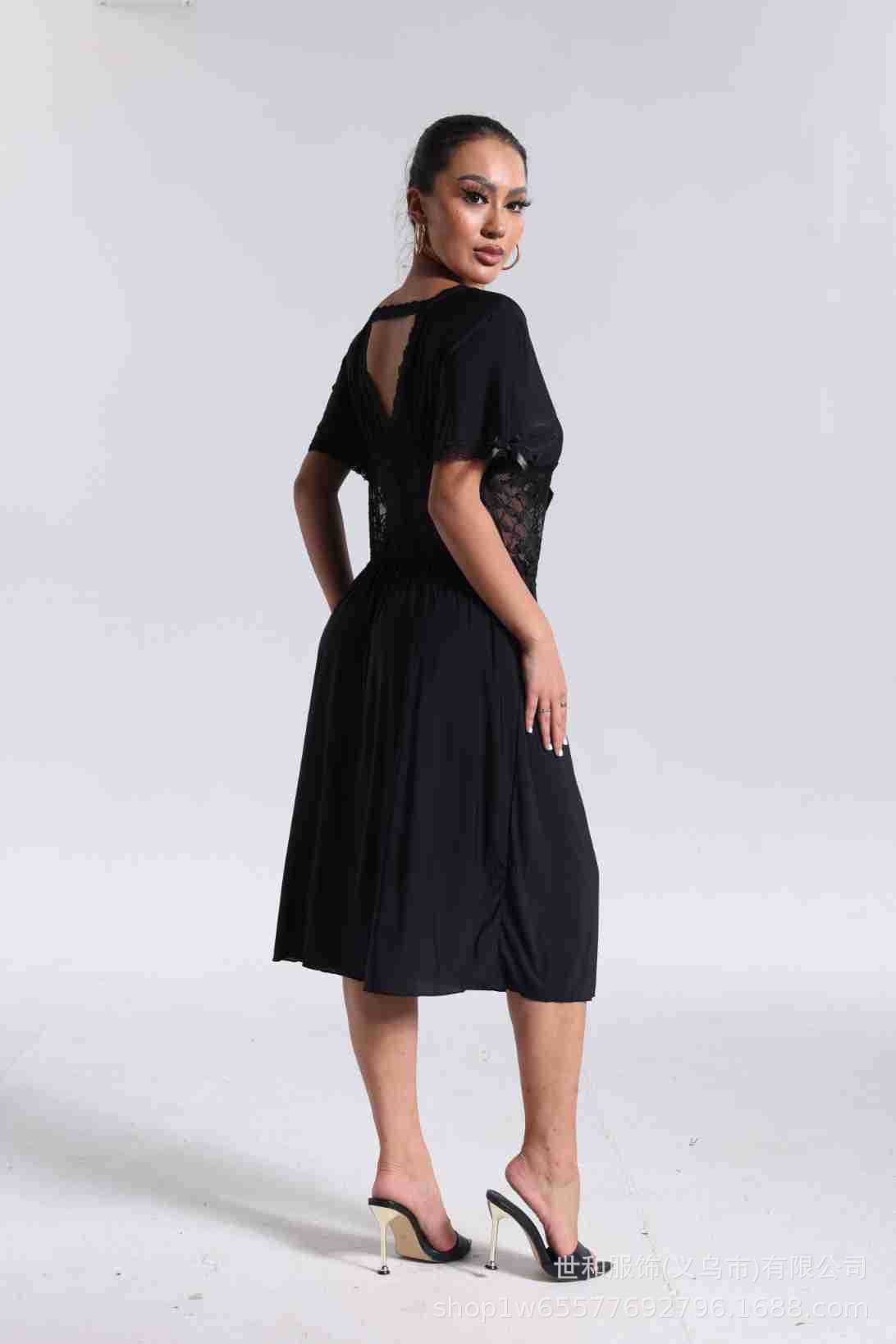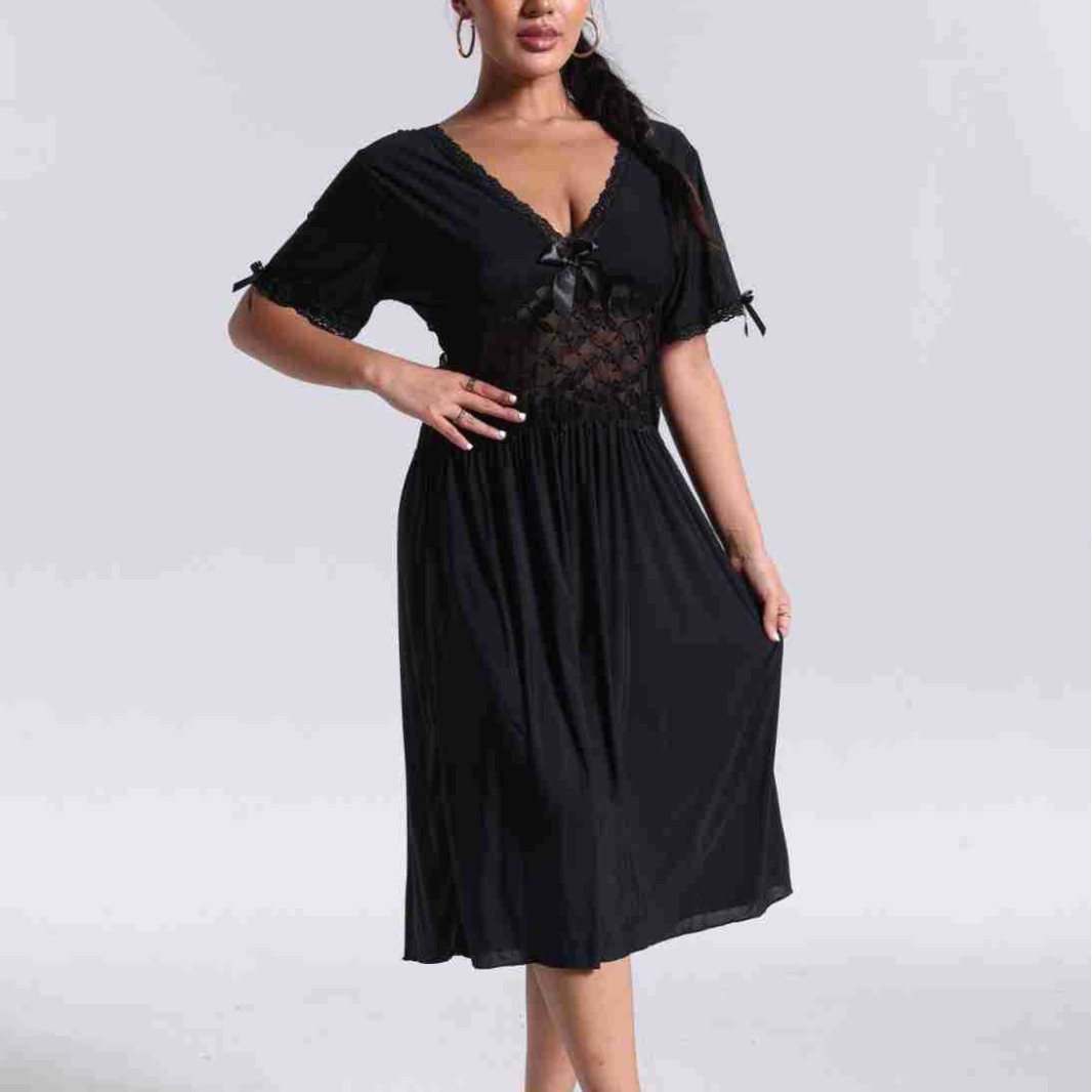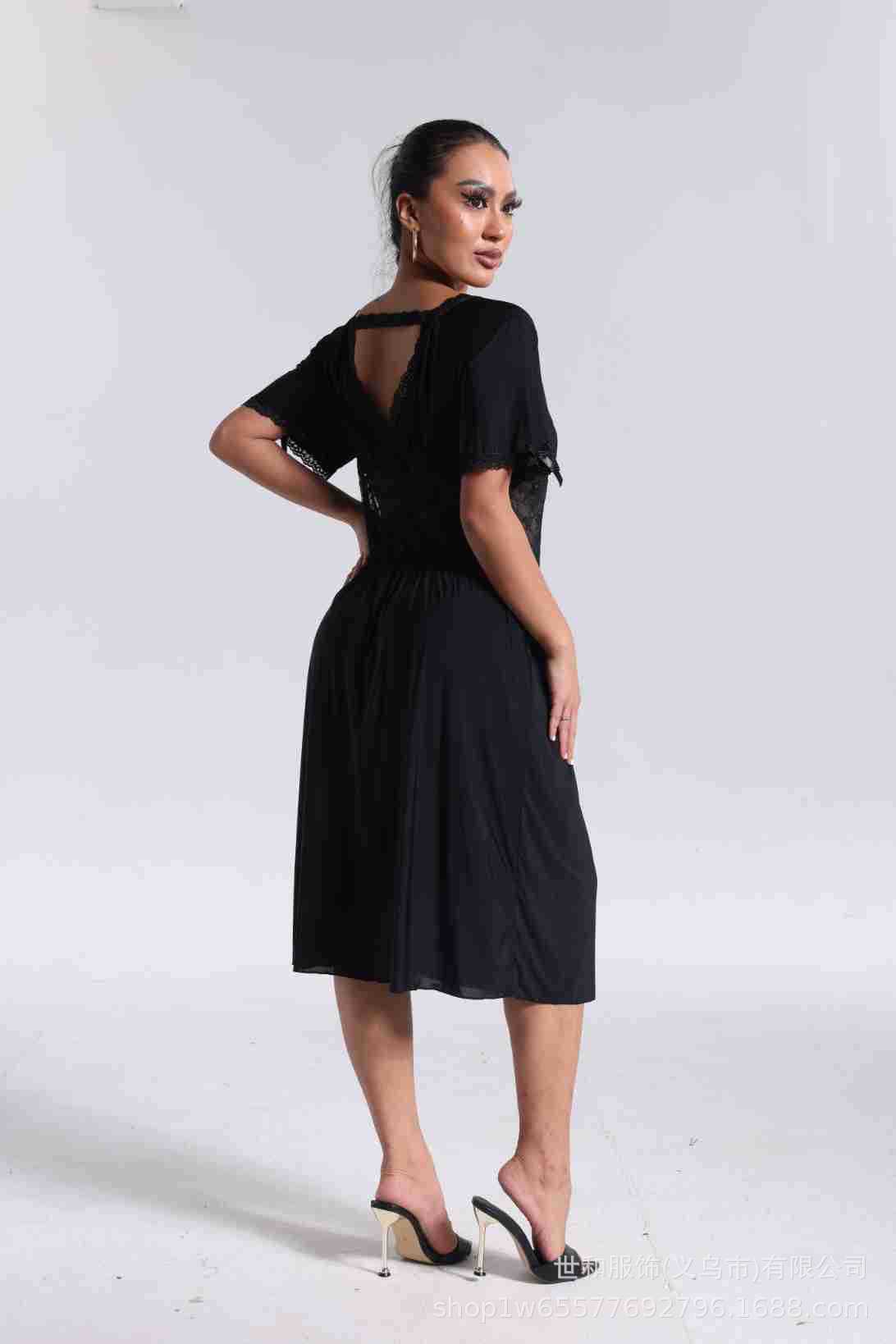 spring and summer new women's pajamas foreign trade women's large size modal stretch long lace nightdress 中文版