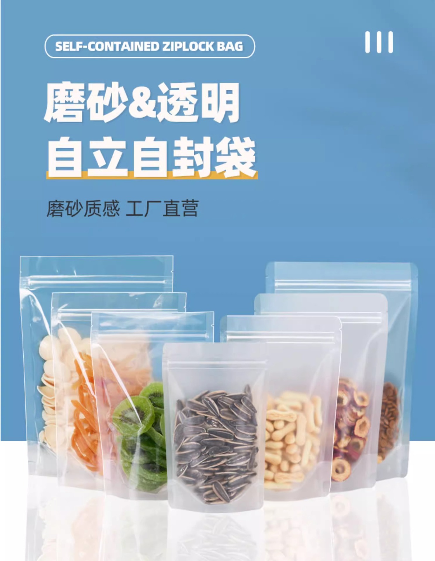 10*15+3;20 silk frosted self-supporting plastic bag