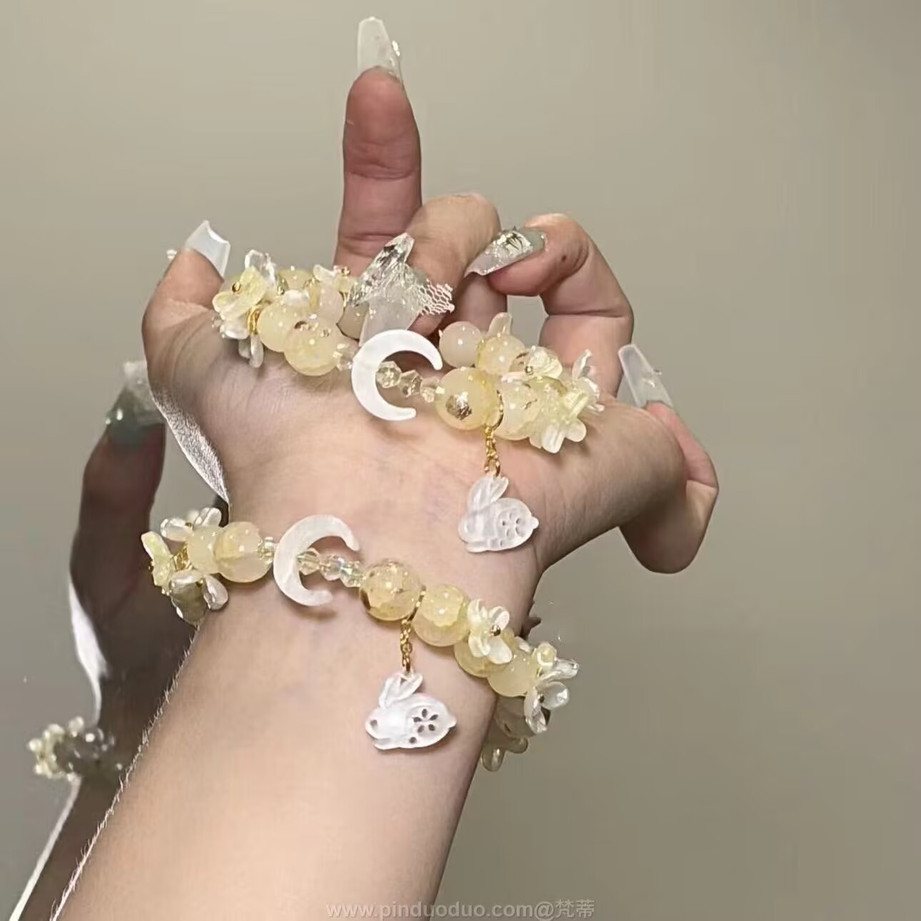white rabbit moon bracelet