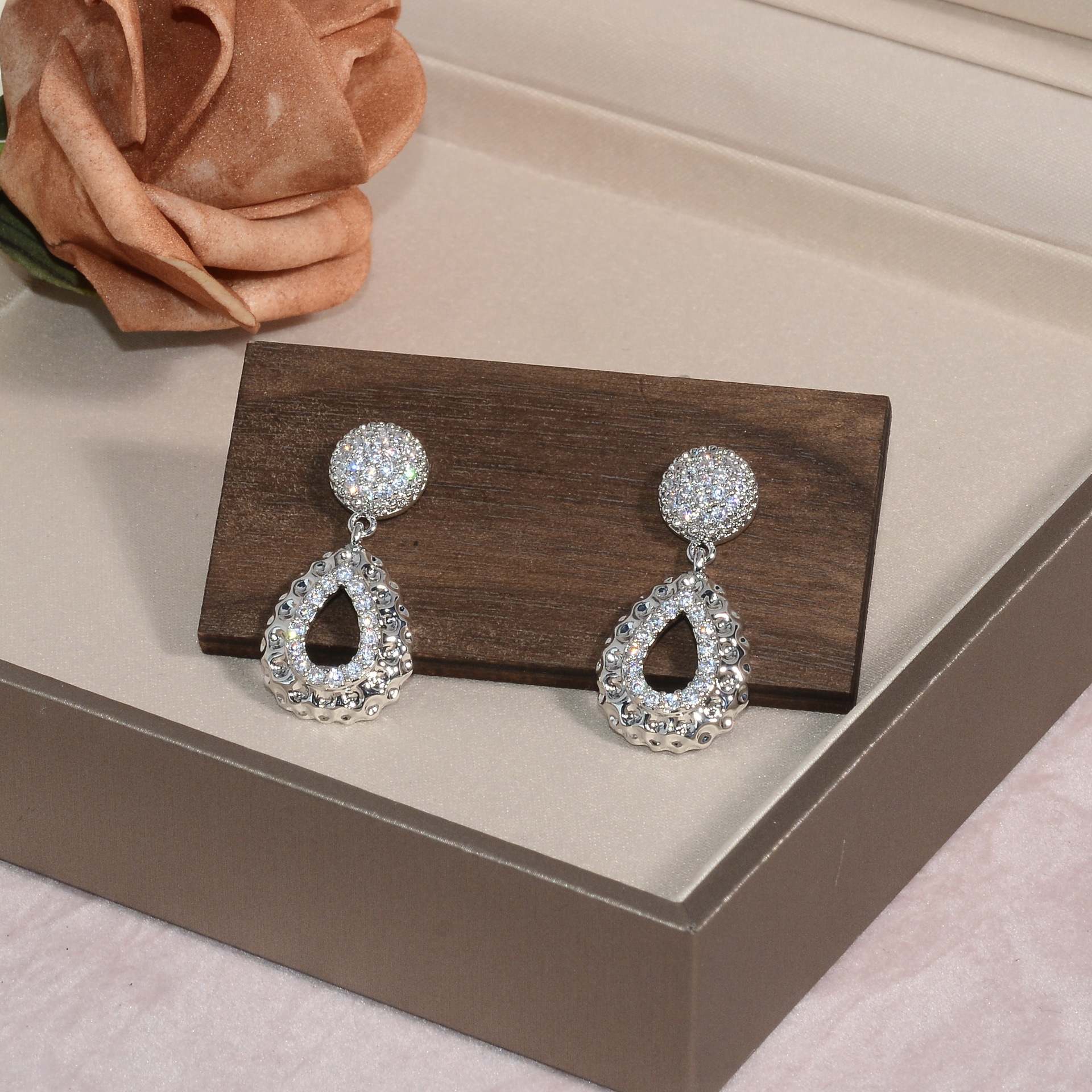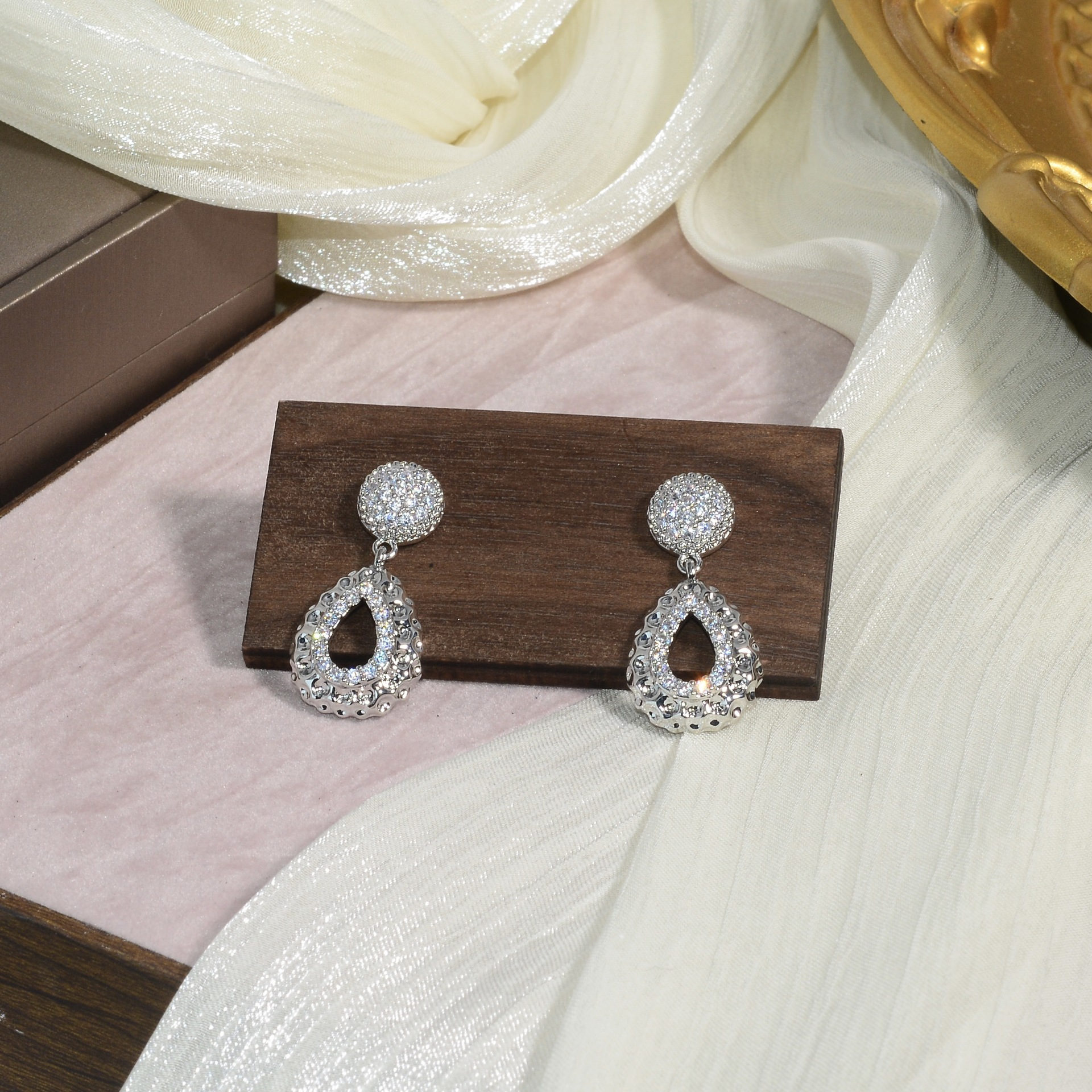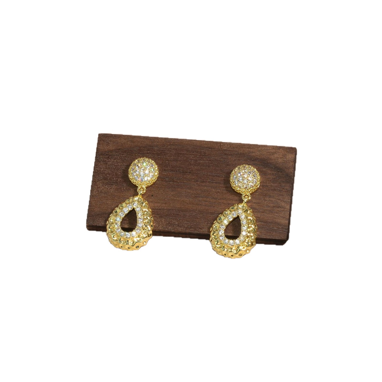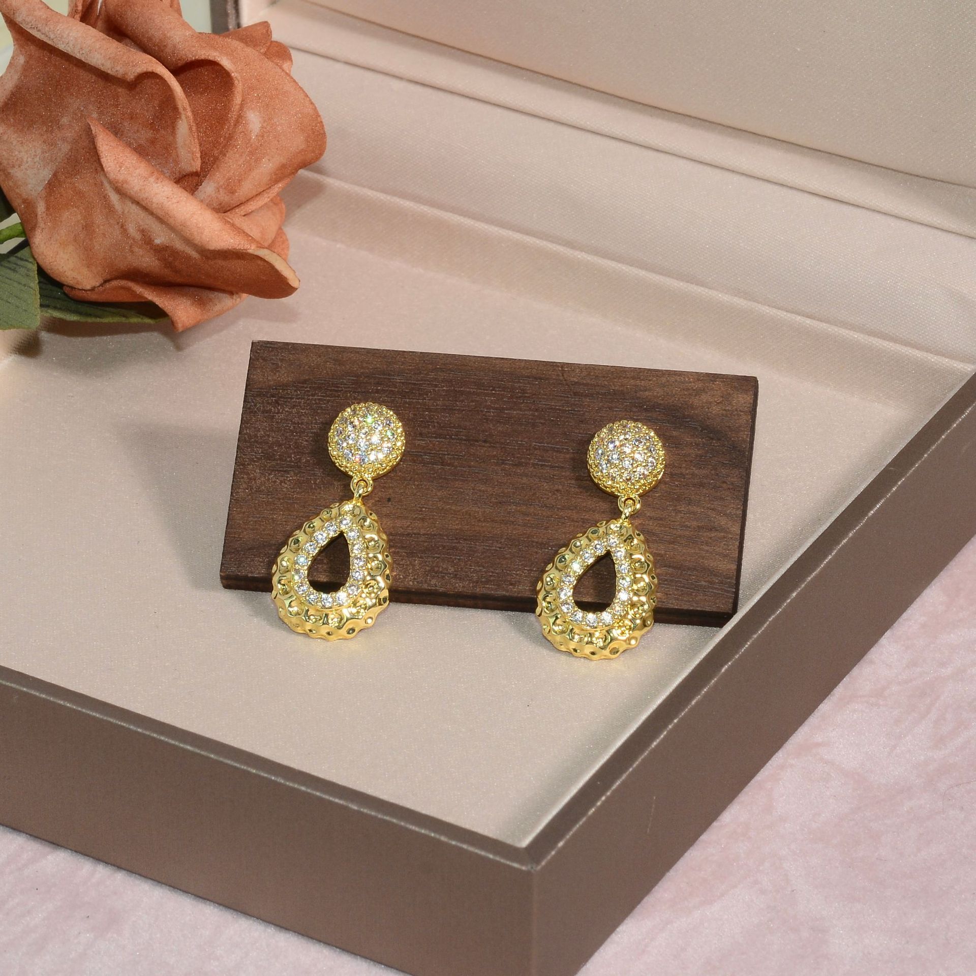 cross-border new arrival special-interest design drop-shaped earrings female copper plated real gold diamond-embedded personality high-grade earrings do not fade 中文版