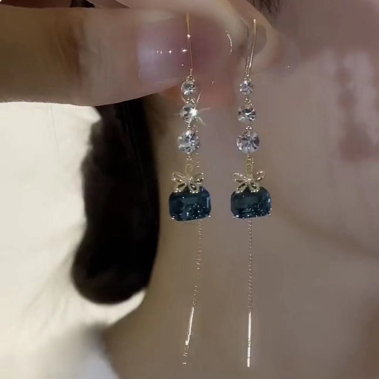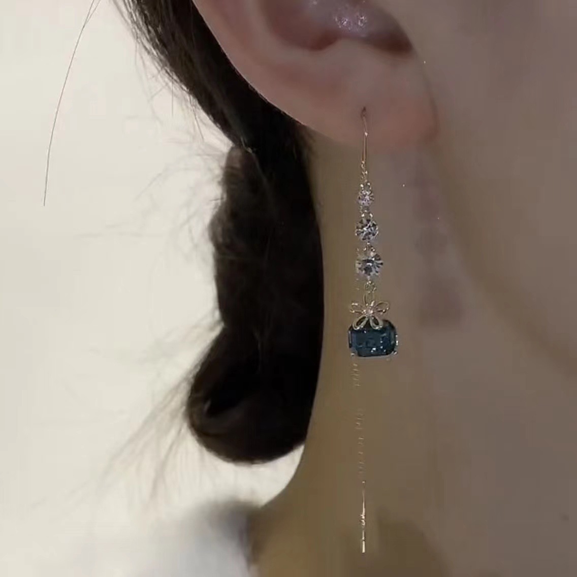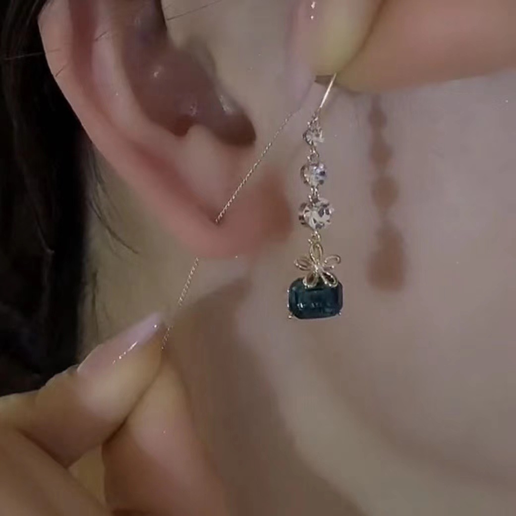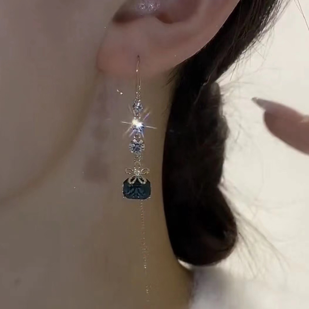 hai's daughter blue tassel hanging earrings internet hot light luxury high-grade smart delicate earrings female 中文版