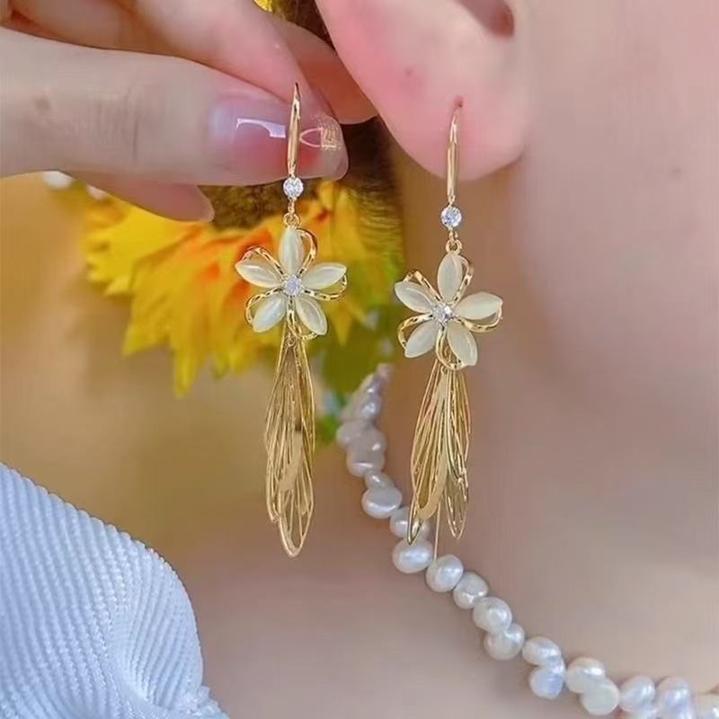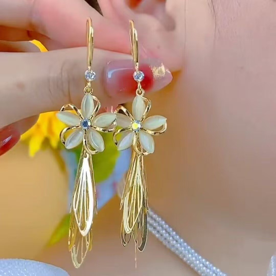 high-end long tassel flowers sequined earrings light luxury unique niche design earrings women's new fashion 2025 中文版