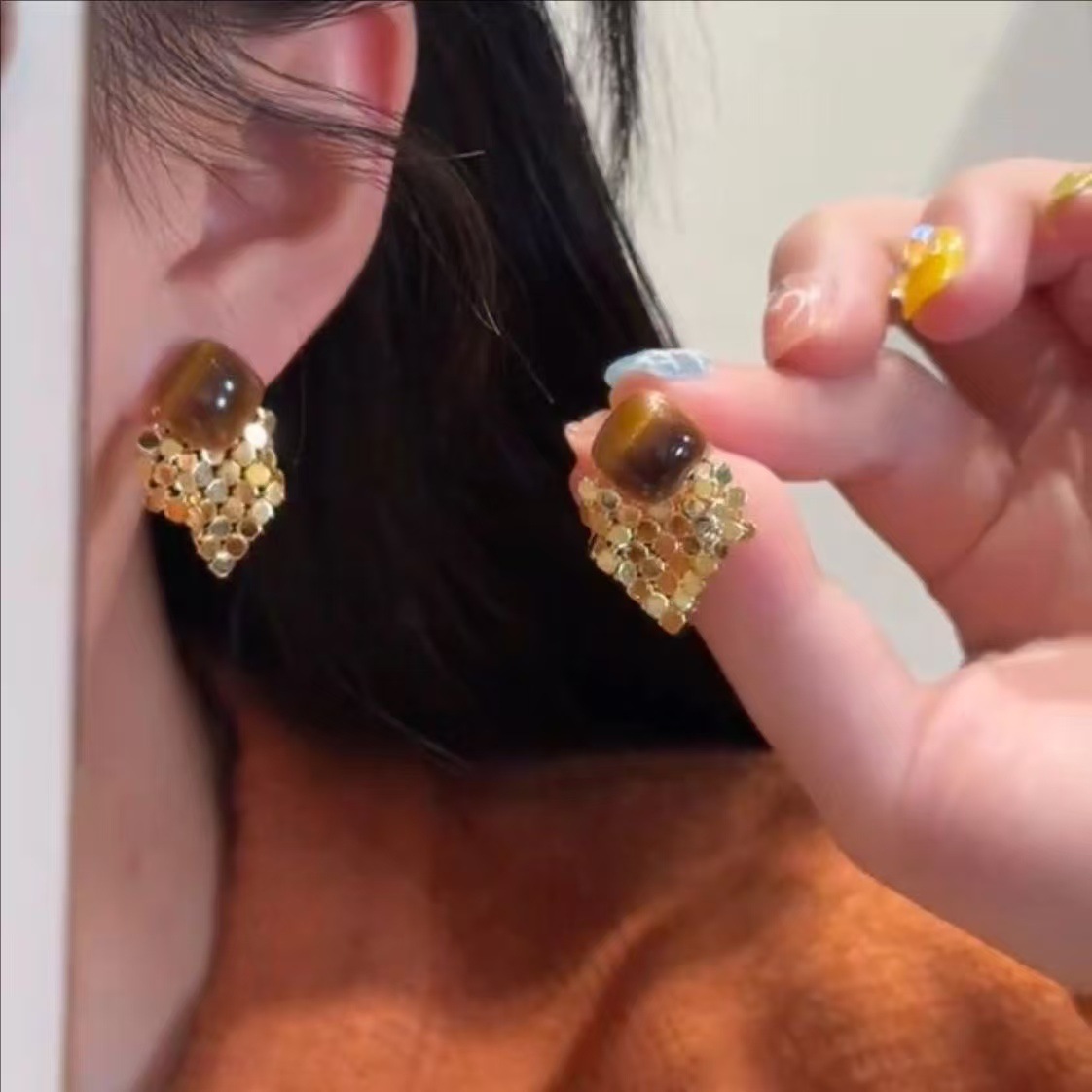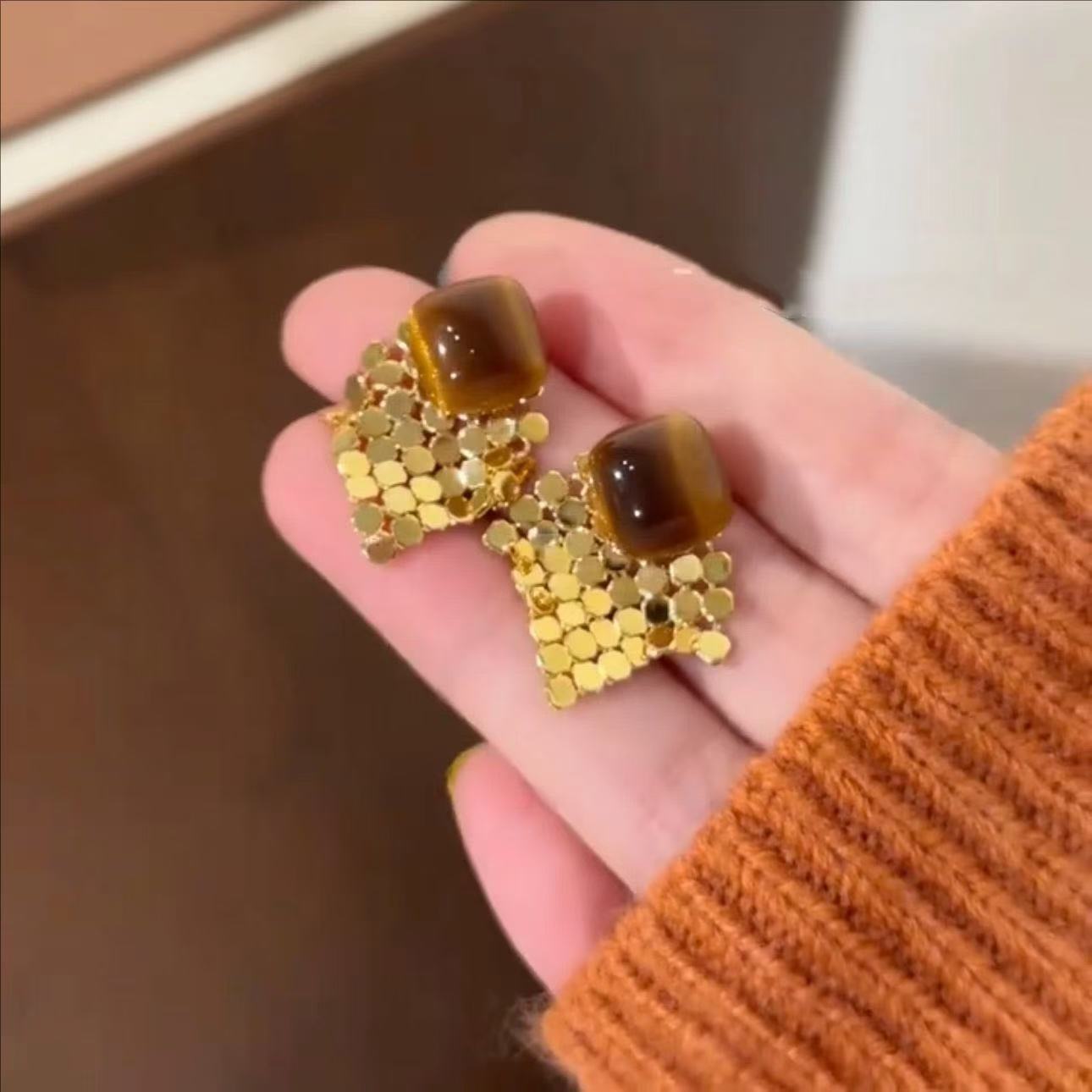 light luxury diamond gold sequined tassel earrings affordable luxury fashion elegant high-grade retro maillard style earrings for women 中文版