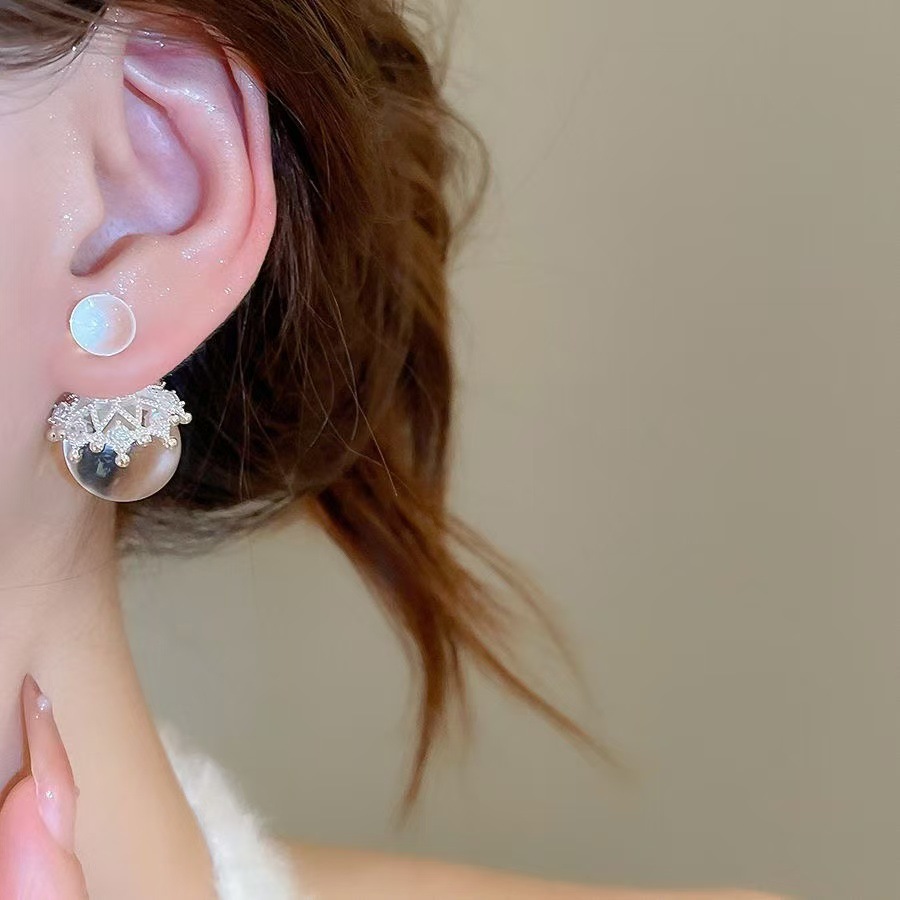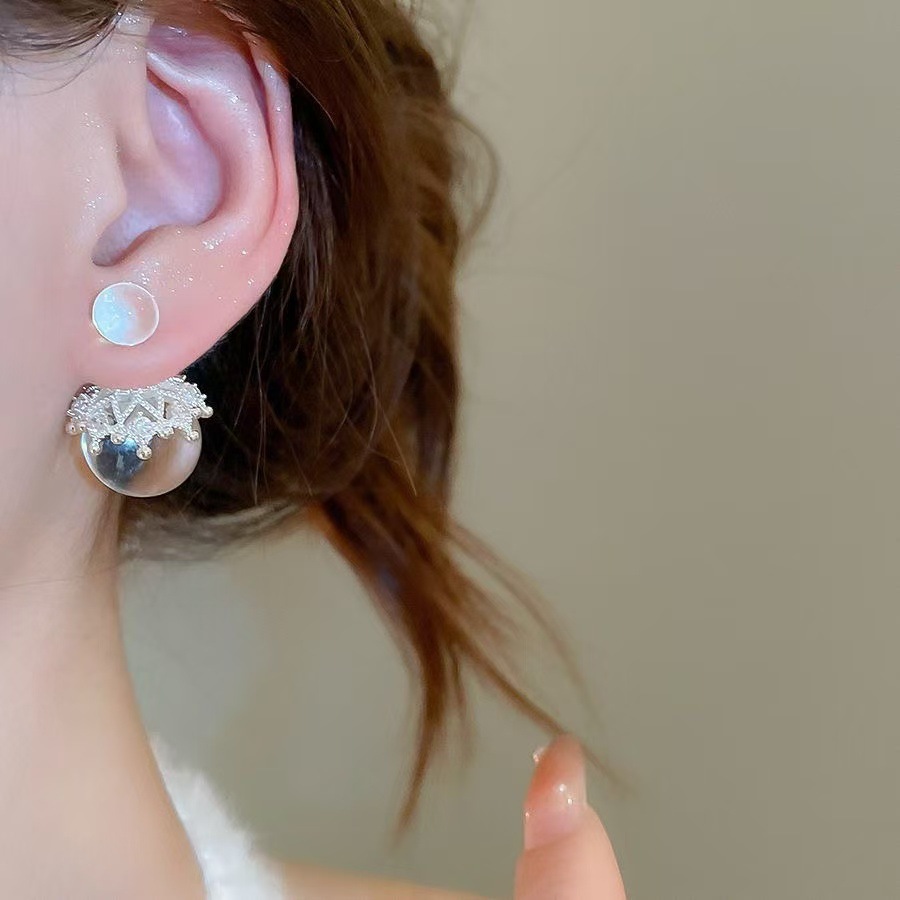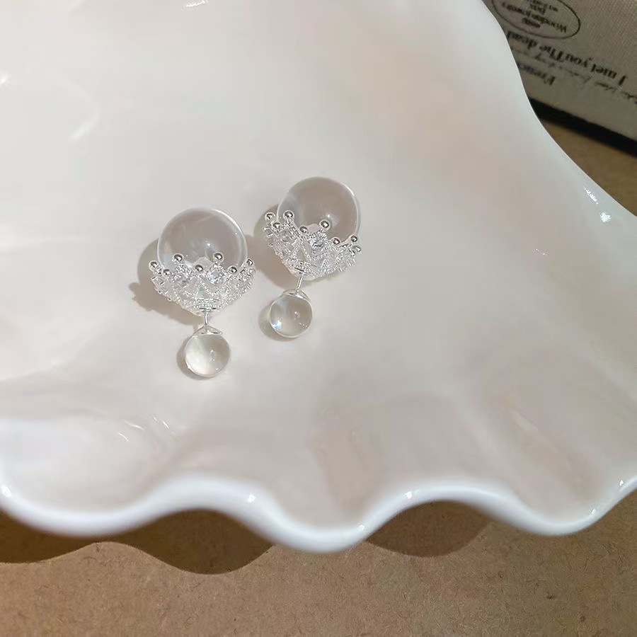 fresh geometric transparent ball stud earrings women's fashion temperament high sense elegant super white personality wild earrings 中文版