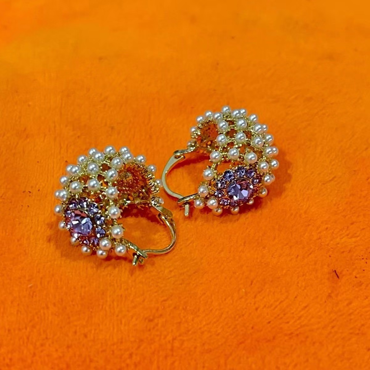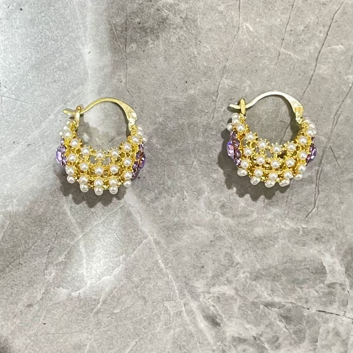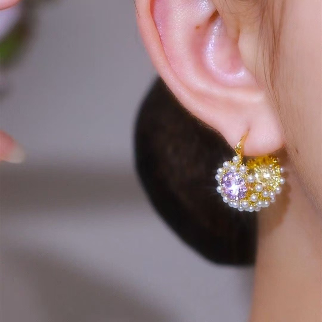 light luxury small rice-shaped beads purple cabas flower basket ear clip earrings women's anti-lost design sense heavy industry internet influencer all-match earrings tide 中文版