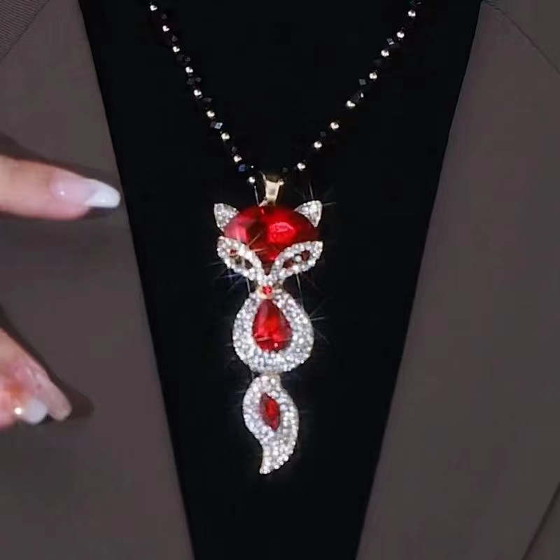 autumn and winter new temperament wild fox necklace women's exquisite fashion sweater chain long clothing accessories ornament pendant 中文版