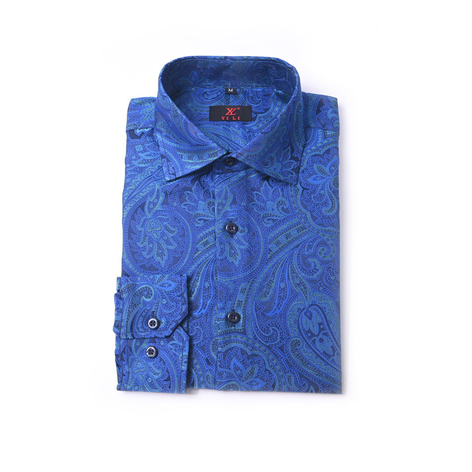high-end men's business casual shirt new paisley chinese style long sleeve shirt men's national fashion loose shirt 中文版