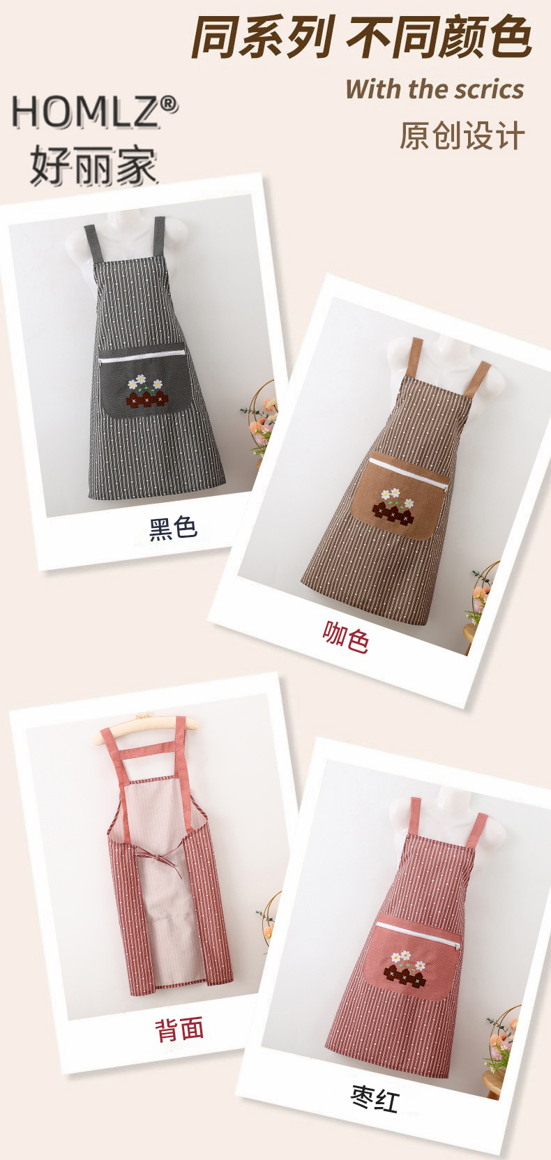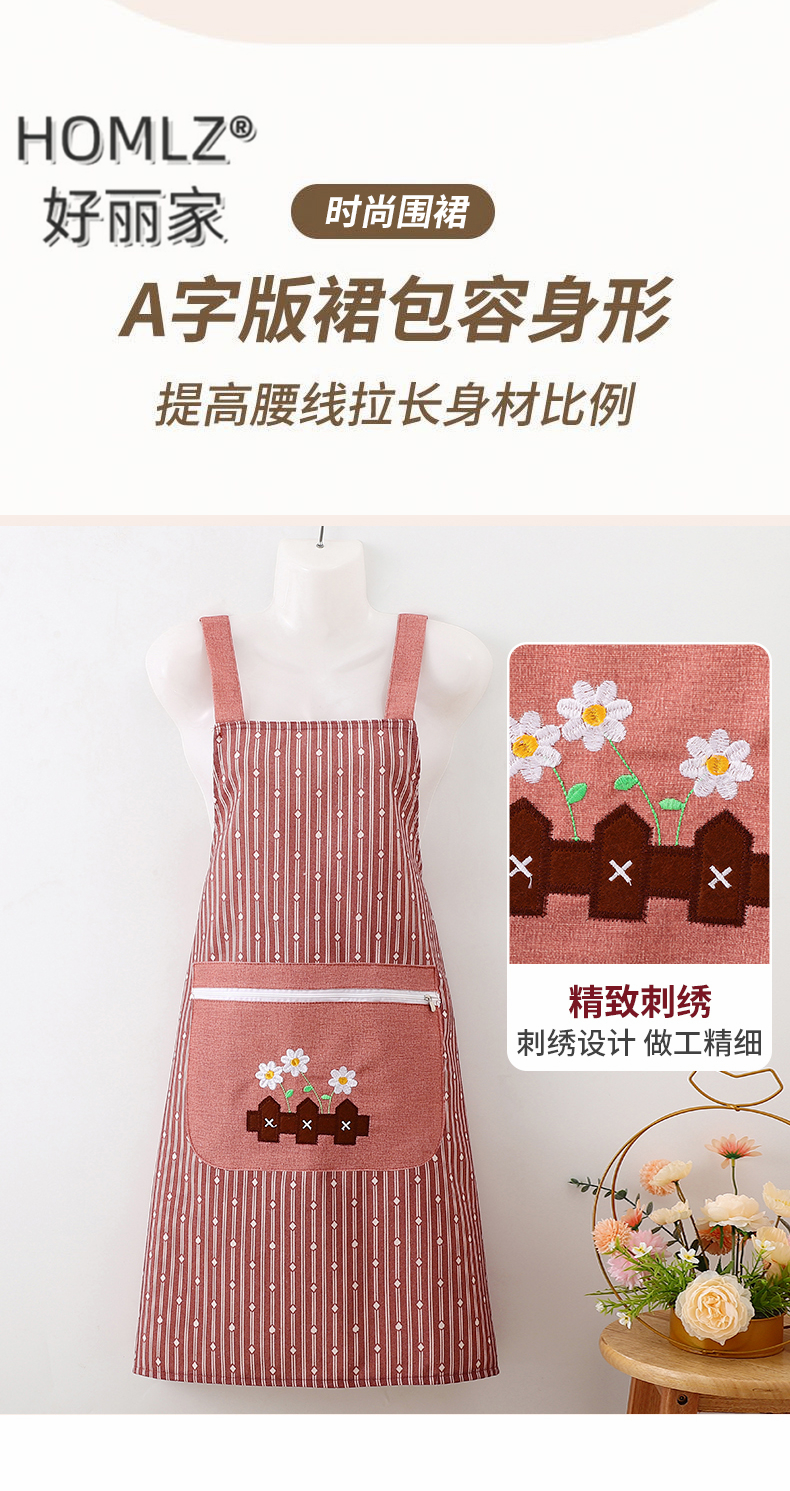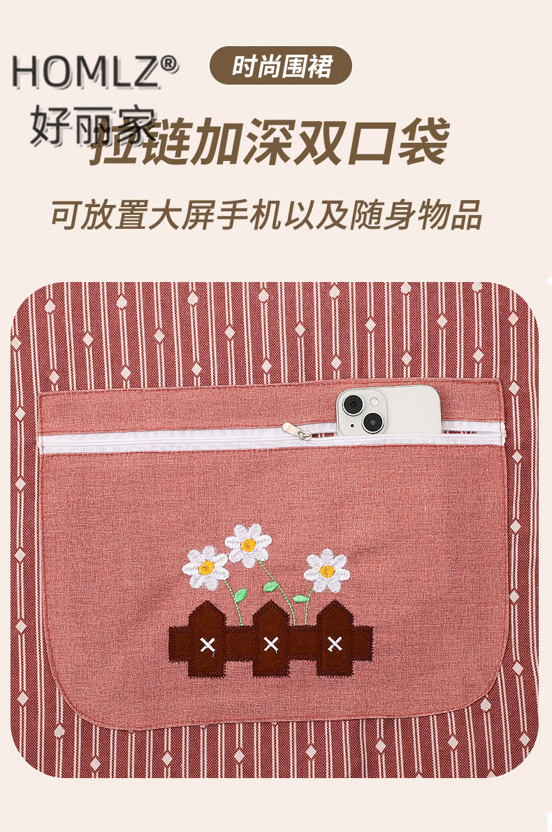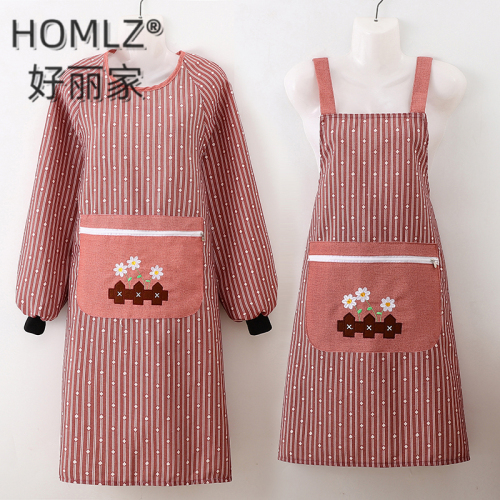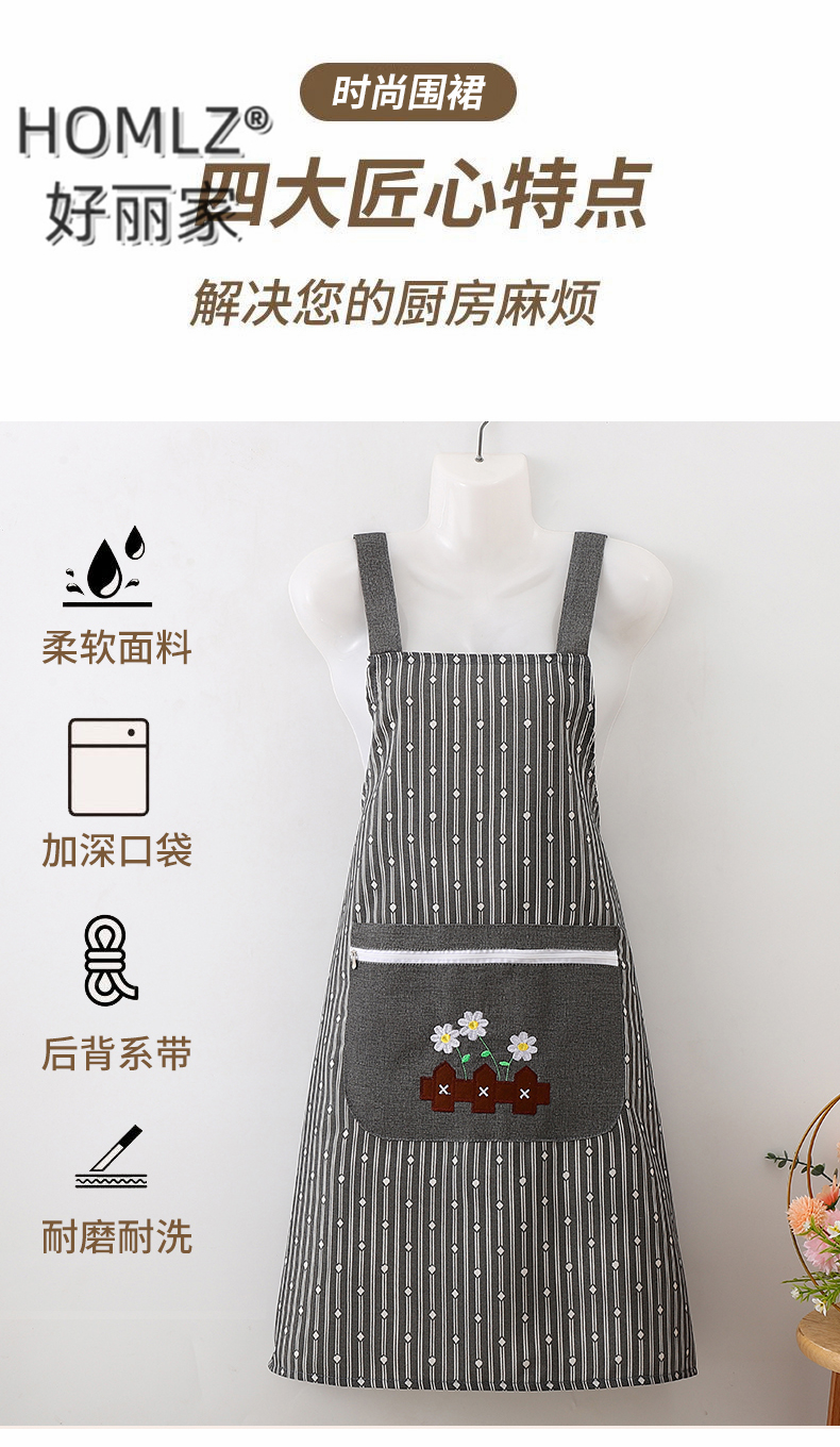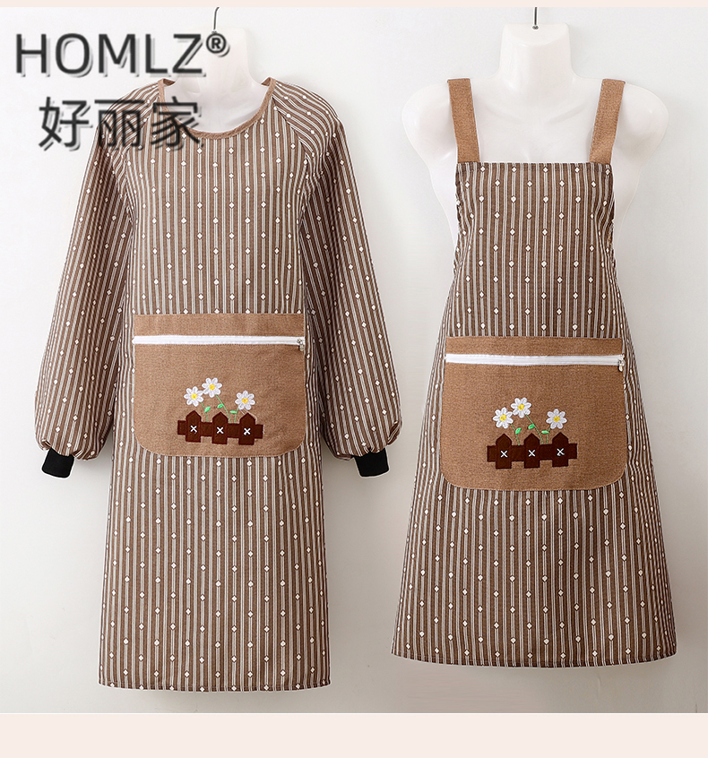 geometric vertical stripes zipper large pocket apron smock work clothes canvas cover cooking apron home kitchen 中文版