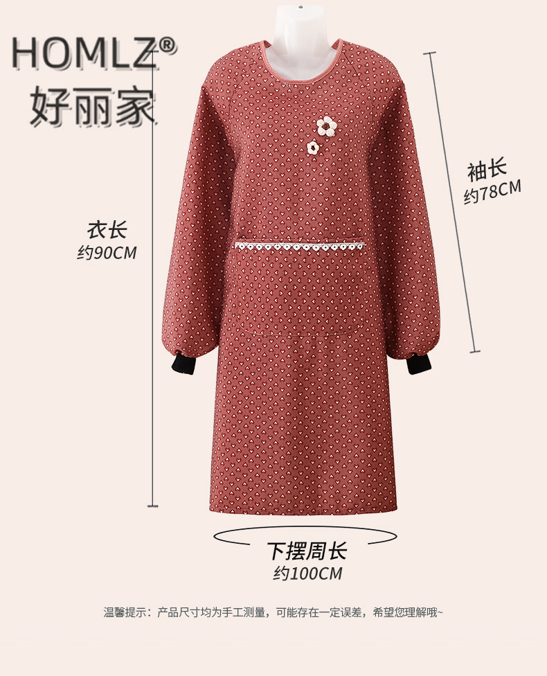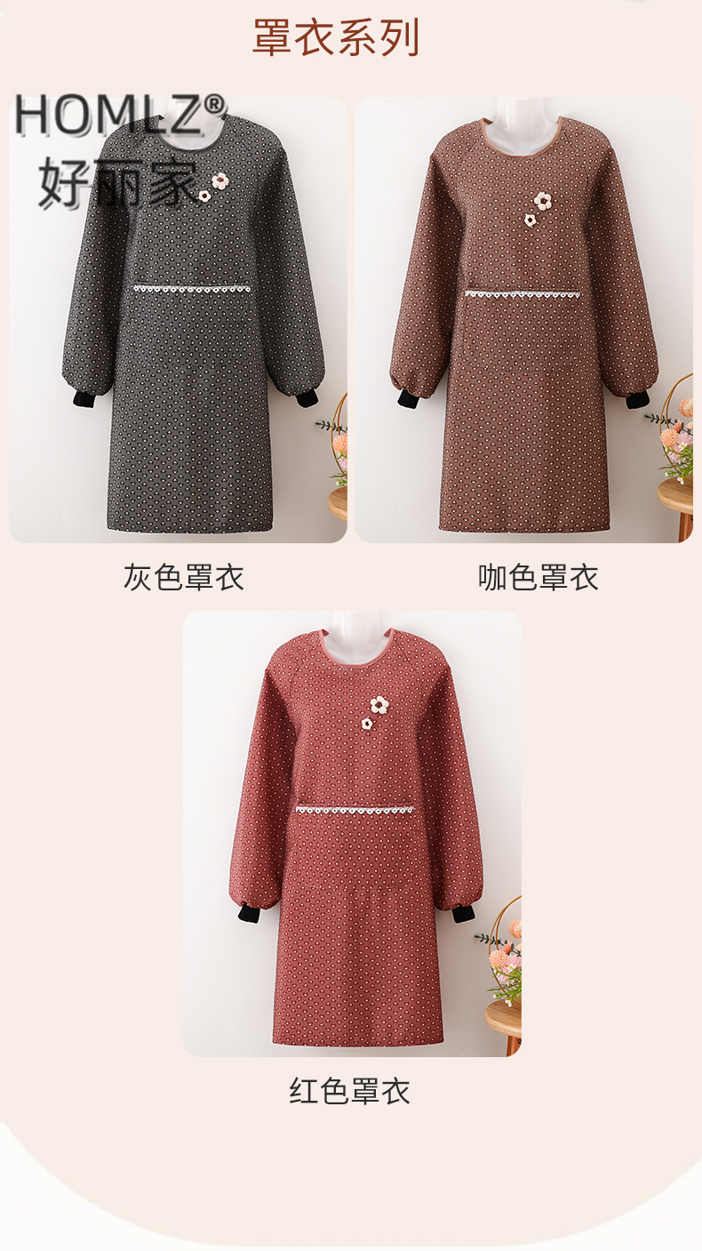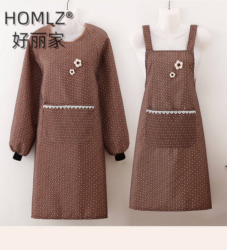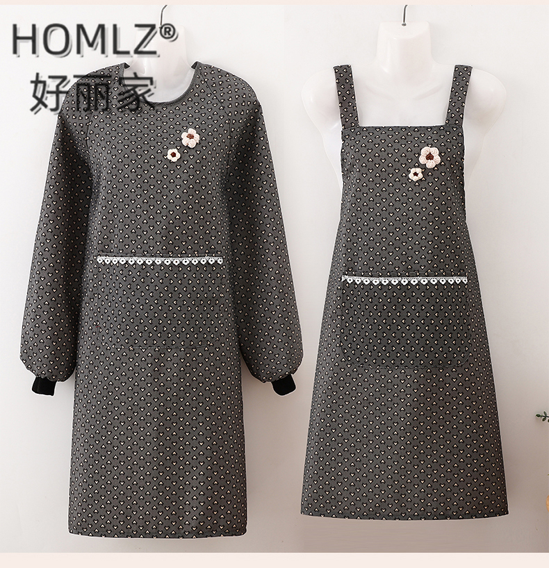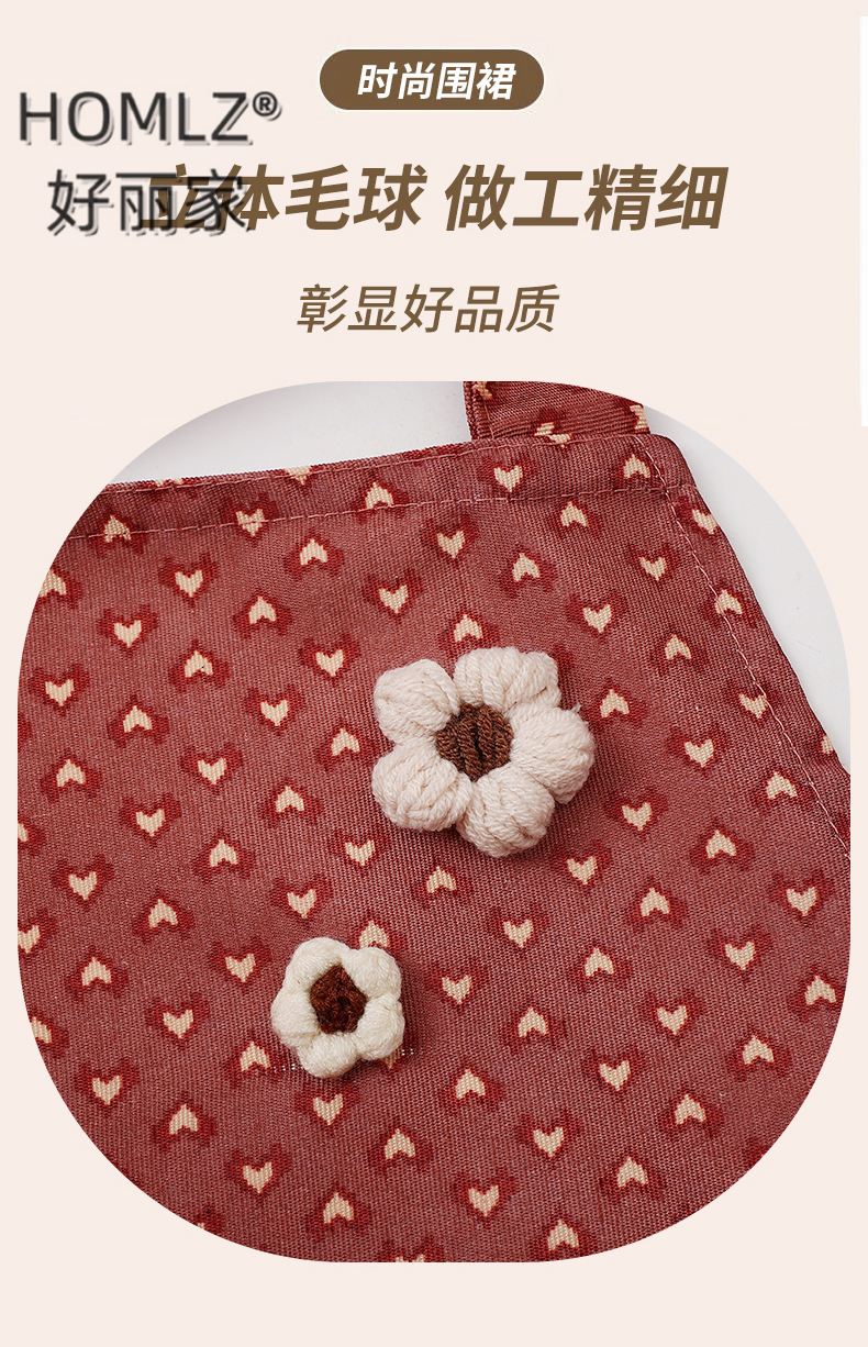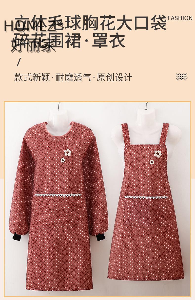 three-dimensional fur ball corsage large pocket apron smock kitchen apron cooking household long sleeve antifouling apron apron 中文版