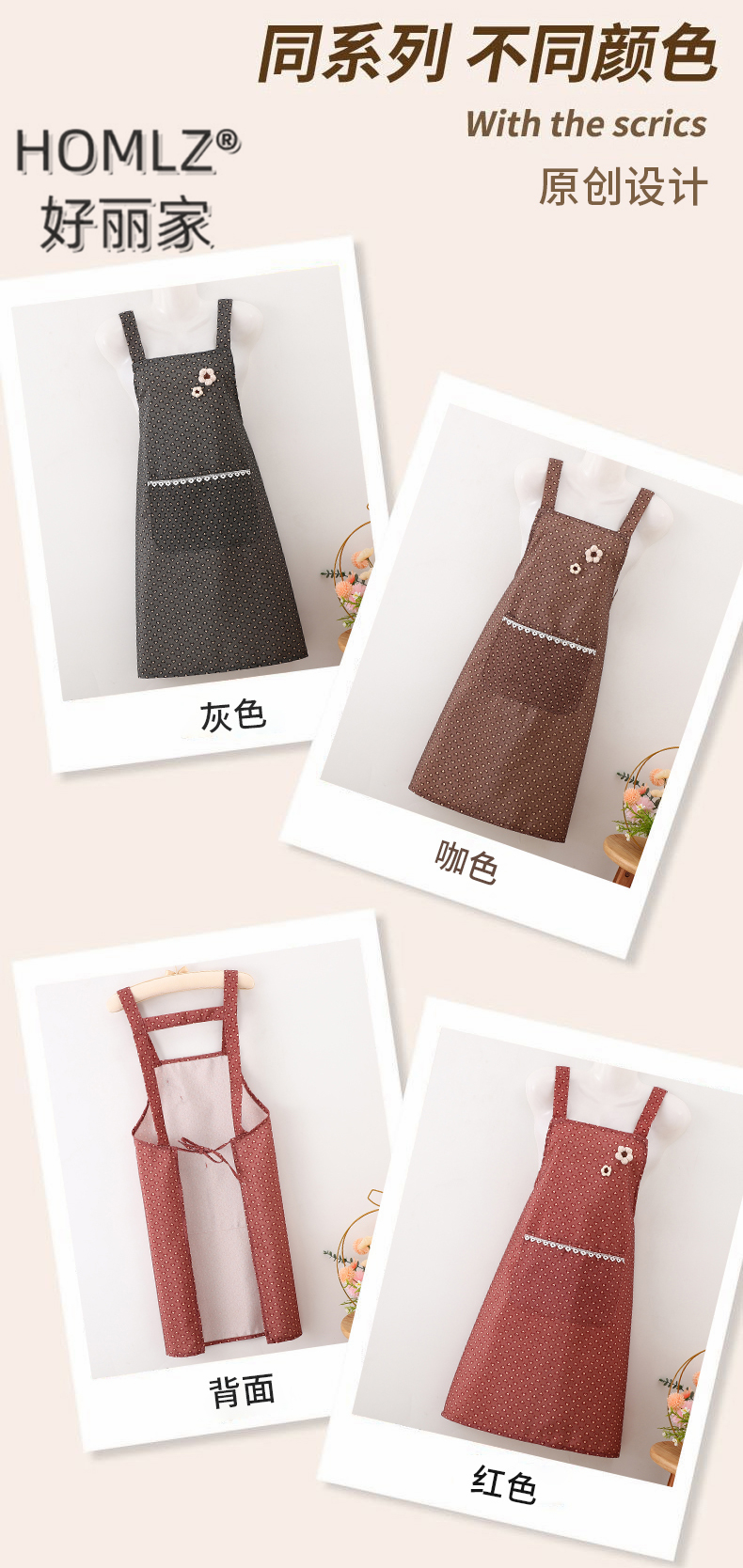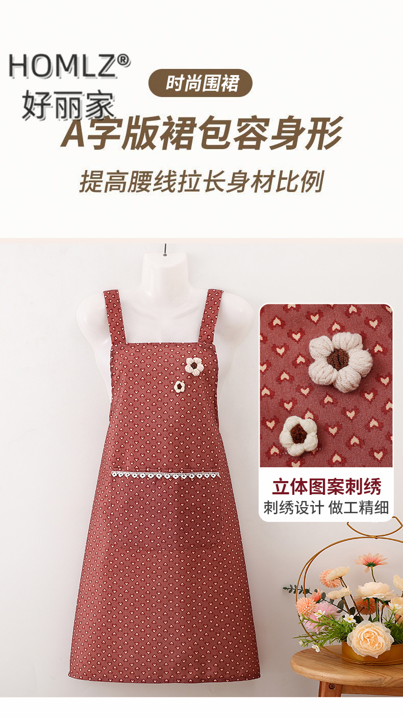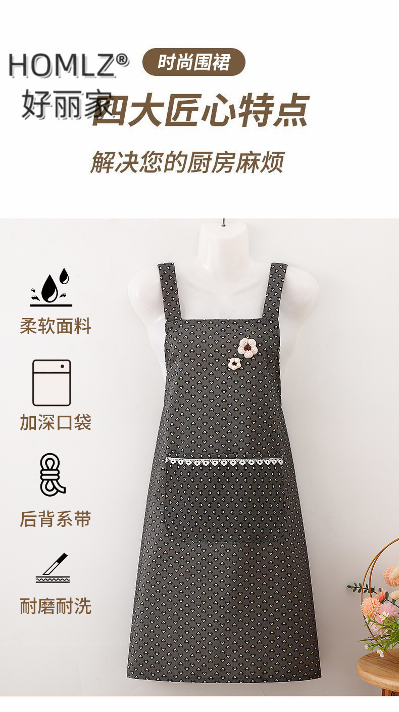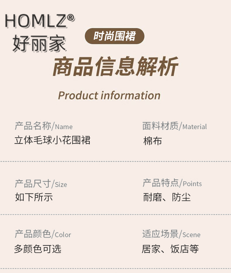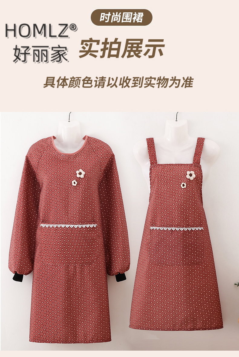 three-dimensional fur ball corsage large pocket apron smock kitchen apron cooking household long sleeve antifouling apron apron 中文版