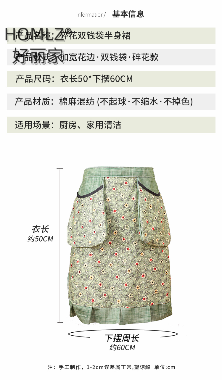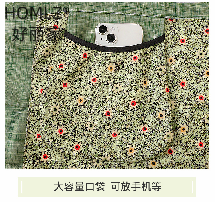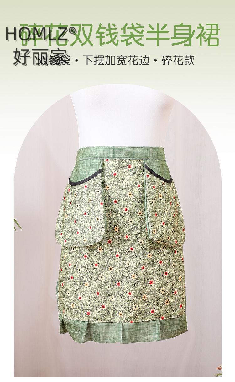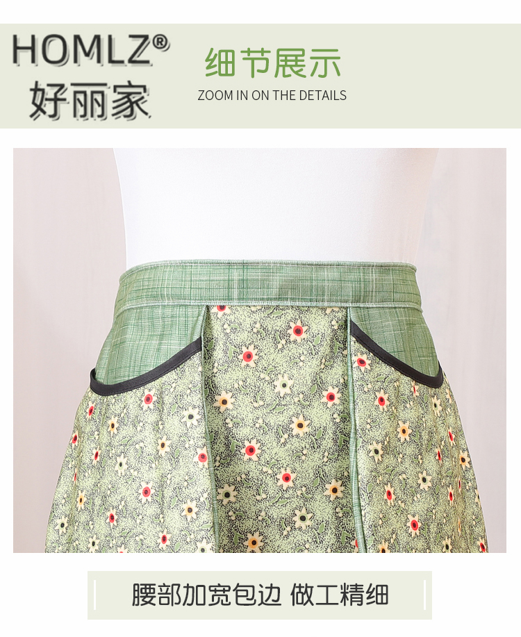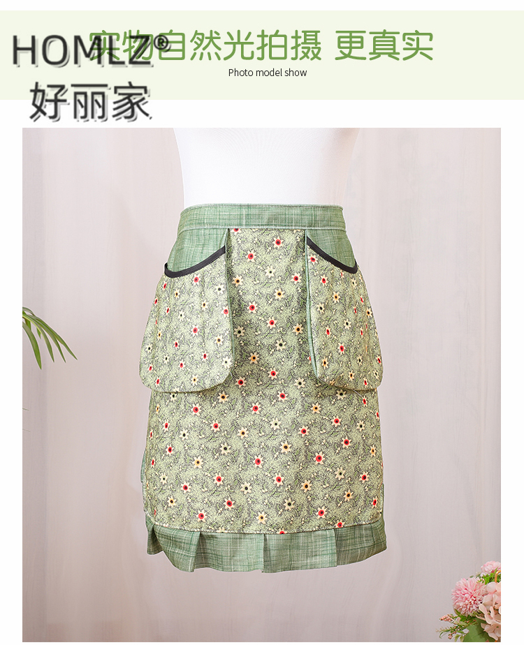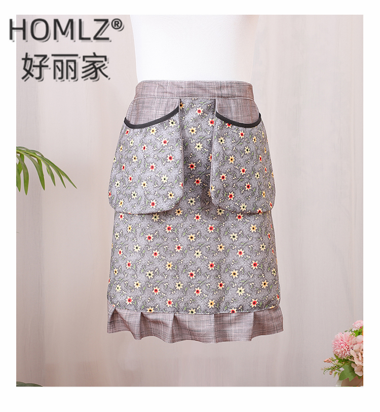 floral double money bag skirt apron wear-resistant kitchen household cooking breathable anti-fouling western style apron work clothes 中文版