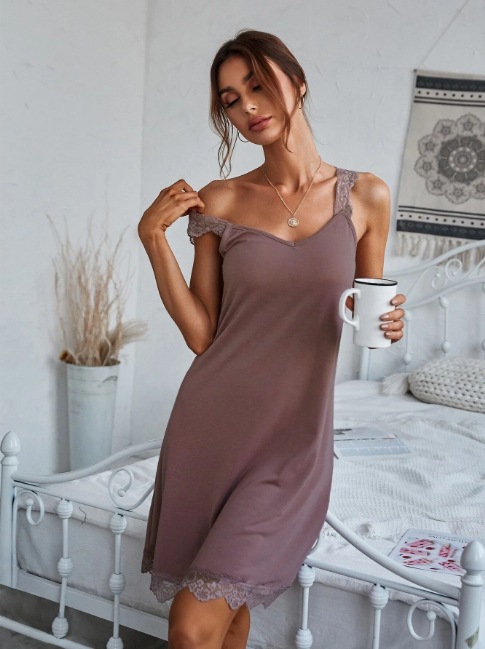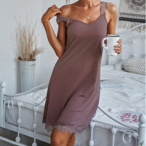 spring and summer new rayon women's solid color nightdress lace elastic lace shoulder strap custom cross-border wholesale 中文版