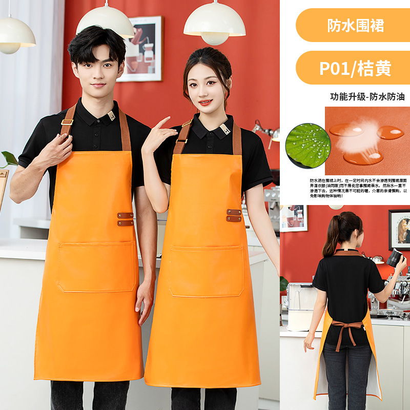 waterproof oilproof apron pu soft leather advertising printing logo home work clothes catering kitchen factory wholesale 中文版