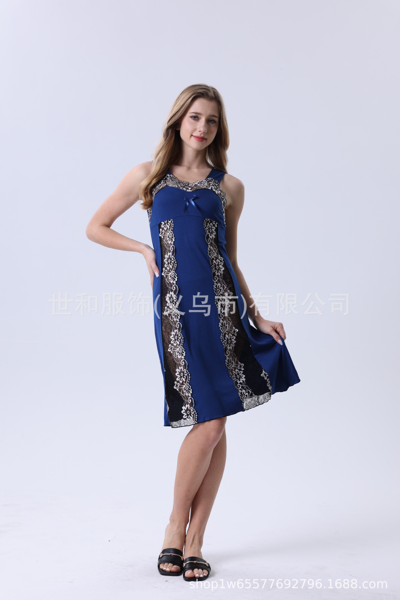 spring and summer new modal rayon women's foreign trade lace stitching solid color wide shoulder nightdress 中文版