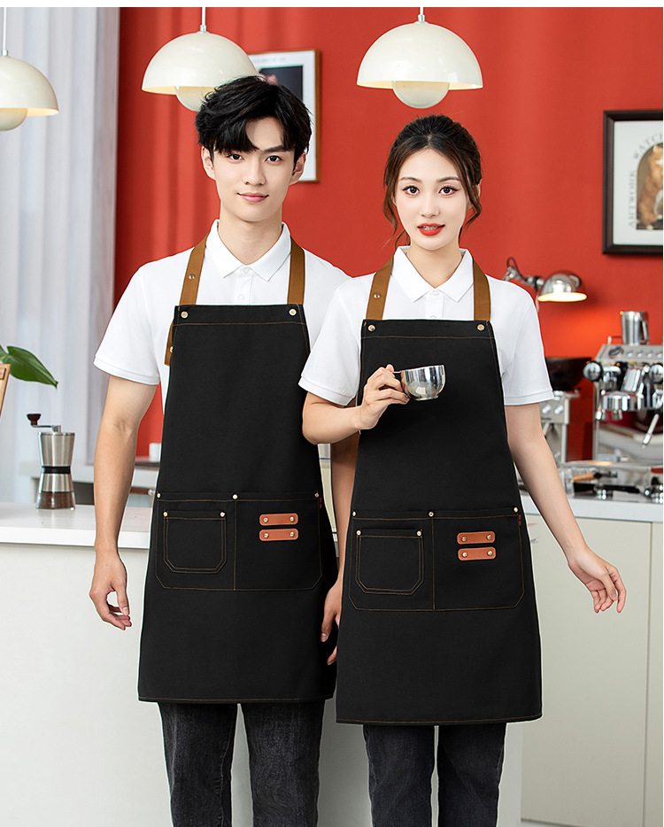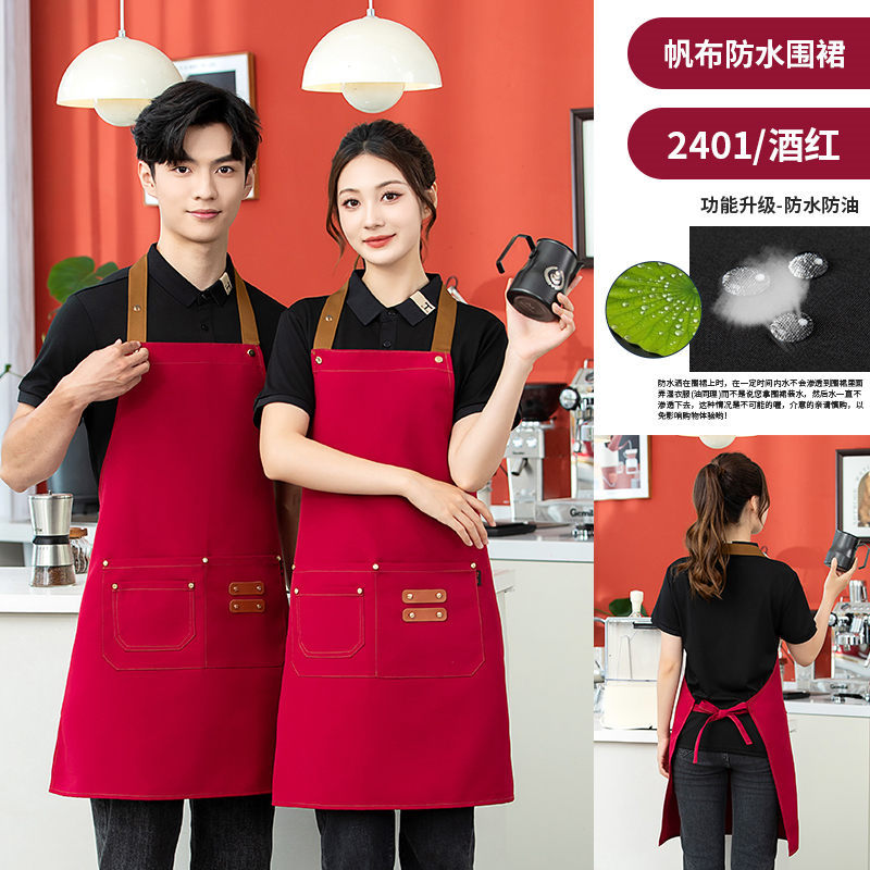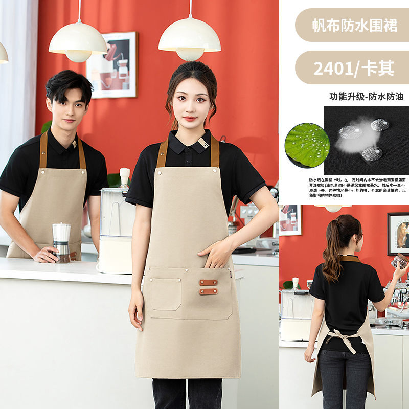 halter canvas adjustable apron custom logo waterproof oil-proof advertising kitchen apron hot pot shop overalls 中文版