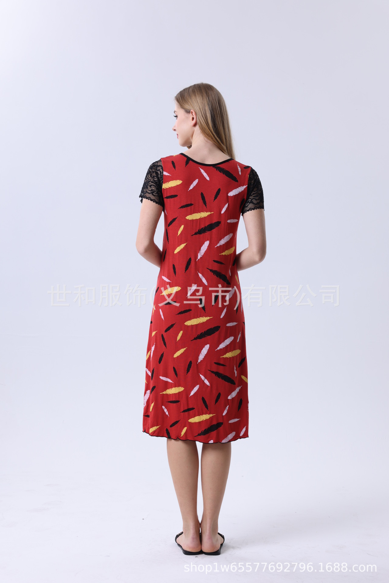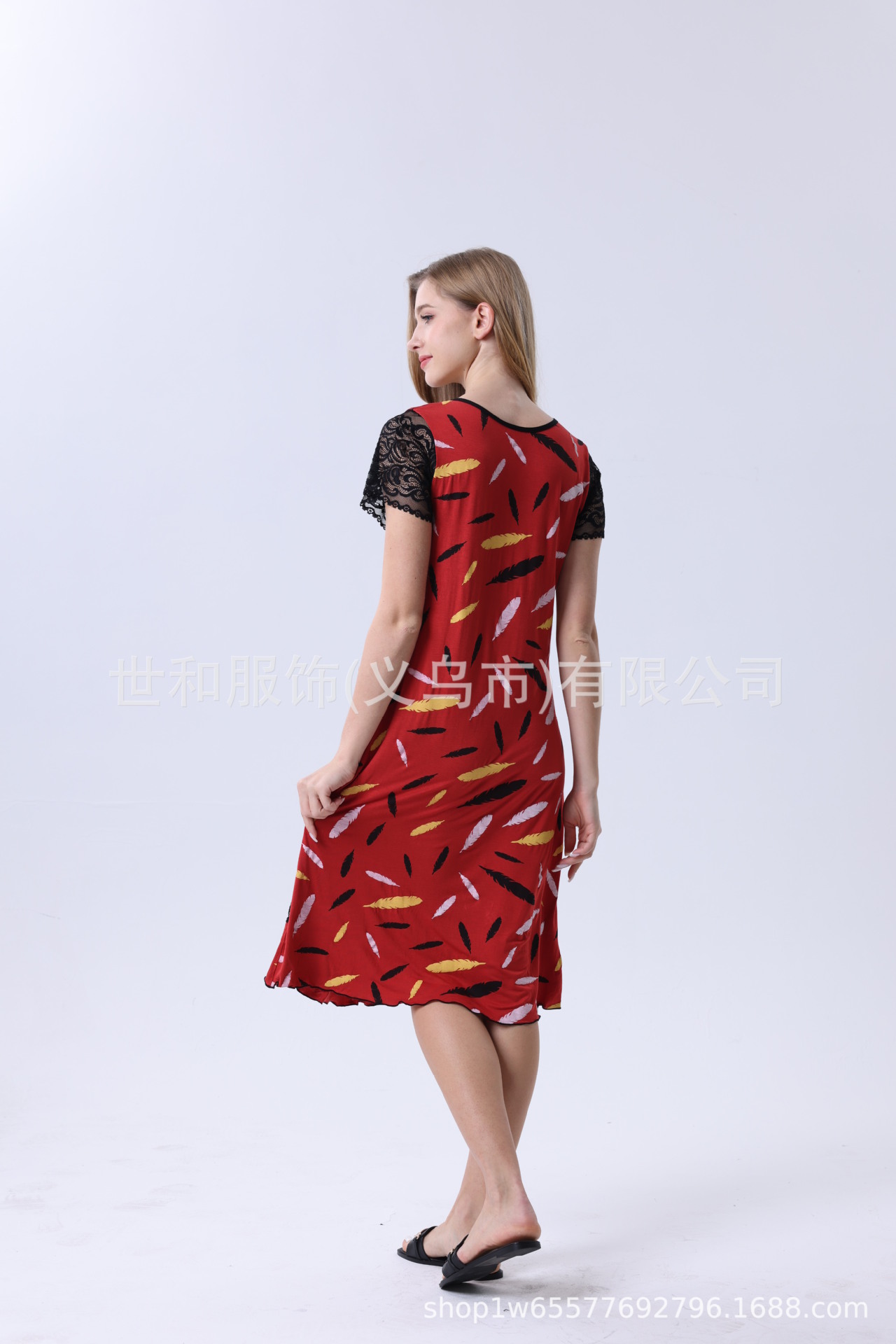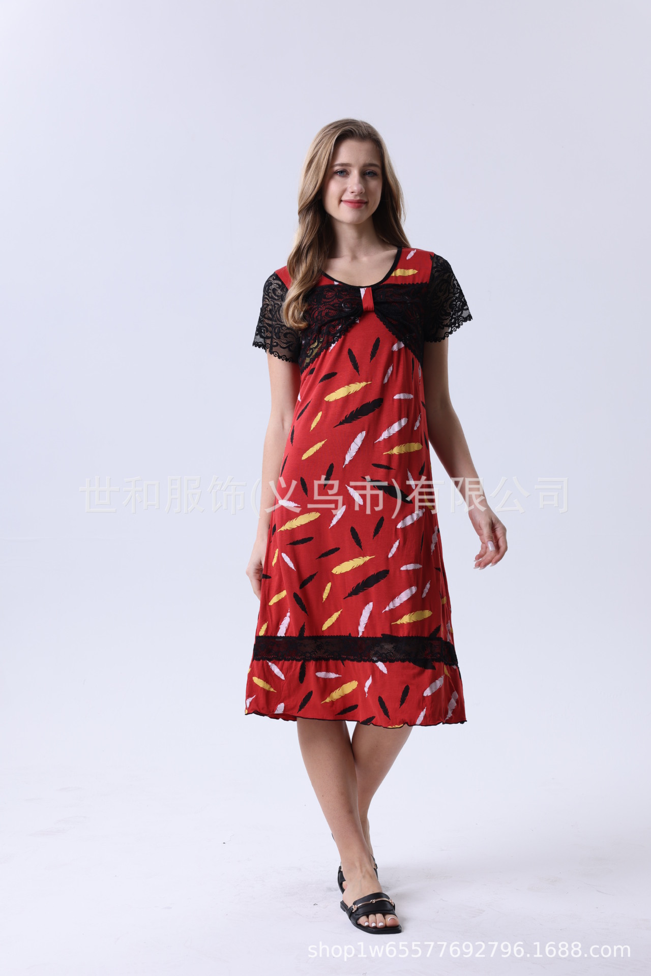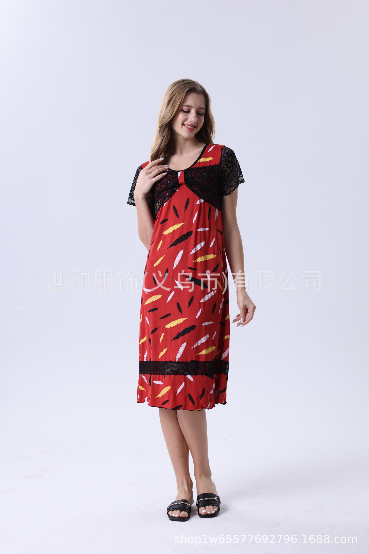 spring and summer new modal rayon women's foreign trade lace stitching short sleeve full printed nightdress 中文版