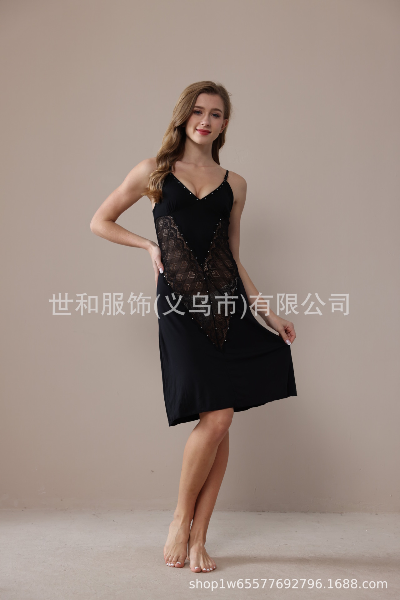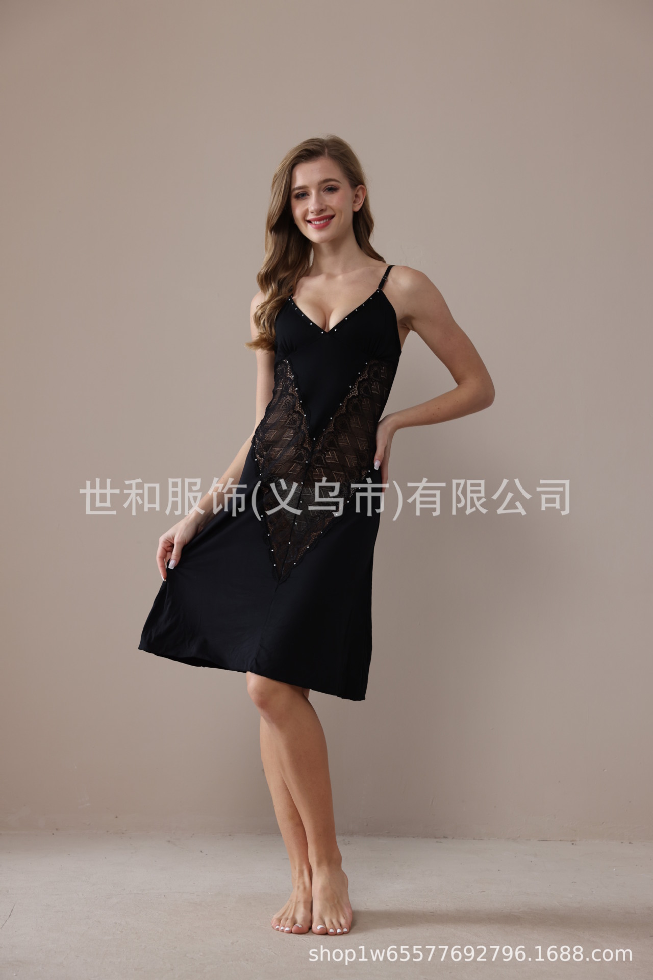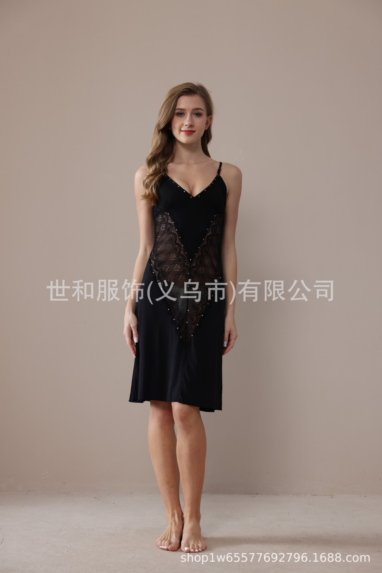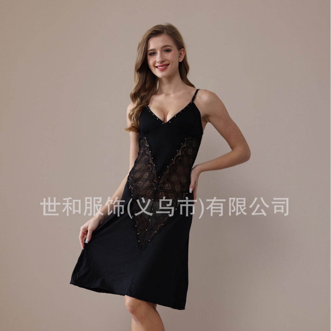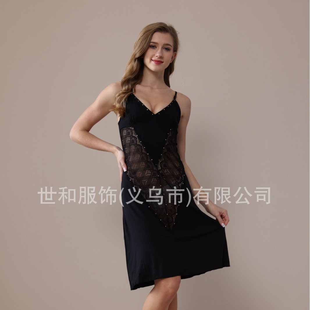 spring and summer new modal rayon women's foreign trade lace stitching solid color diamond slip nightdress 中文版