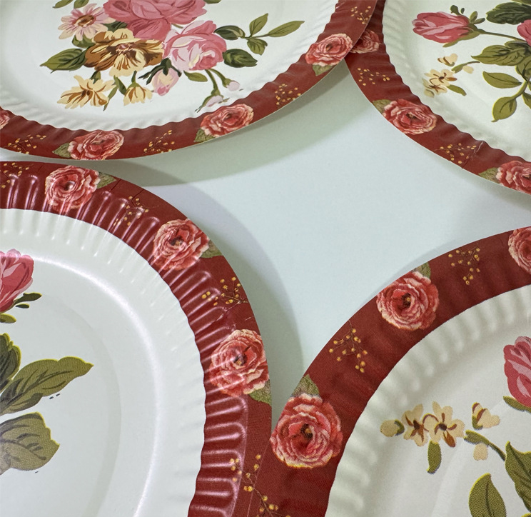 foreign trade cross-border disposable service plate flowers and flowers birthday paper pallet party gathering supplies festival