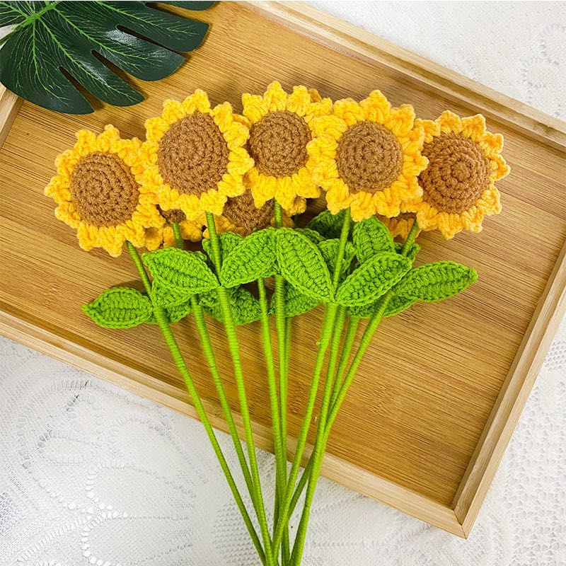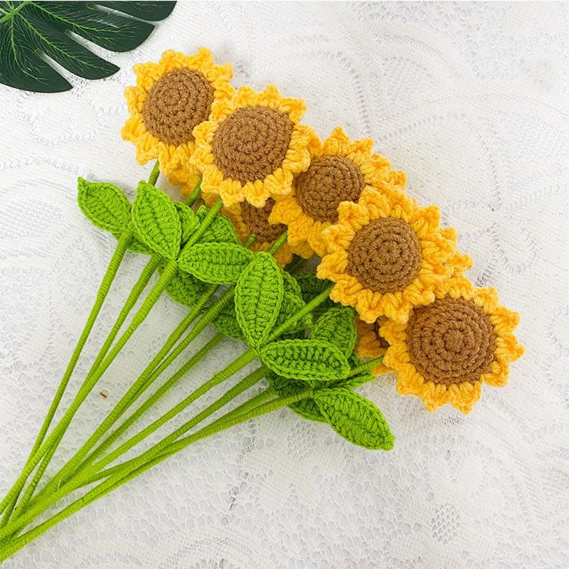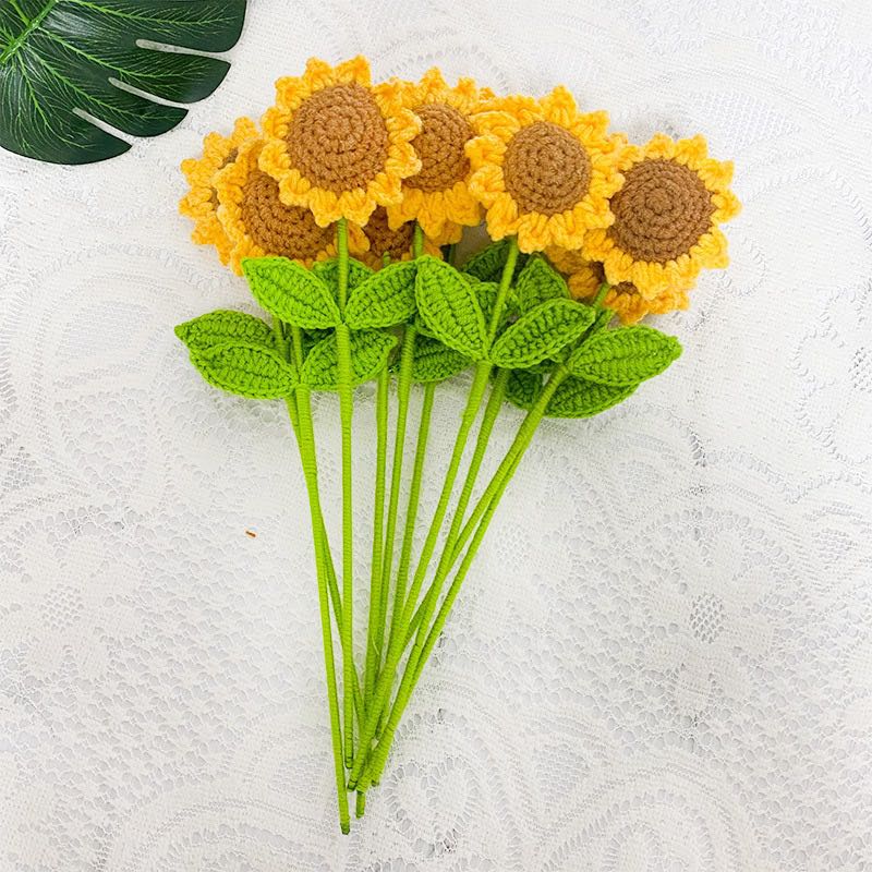 finished handmade crocheted sunflower artificial bouquet diy creative wool sunflower fake flower holiday gift http 中文版