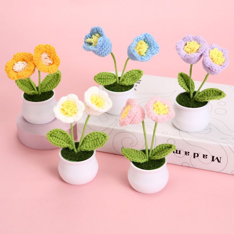 hand-woven linglan potted office decoration home decoration wool knitting linglan artificial flower gift present