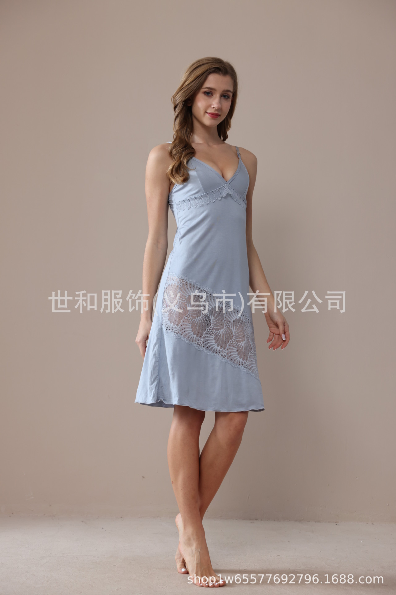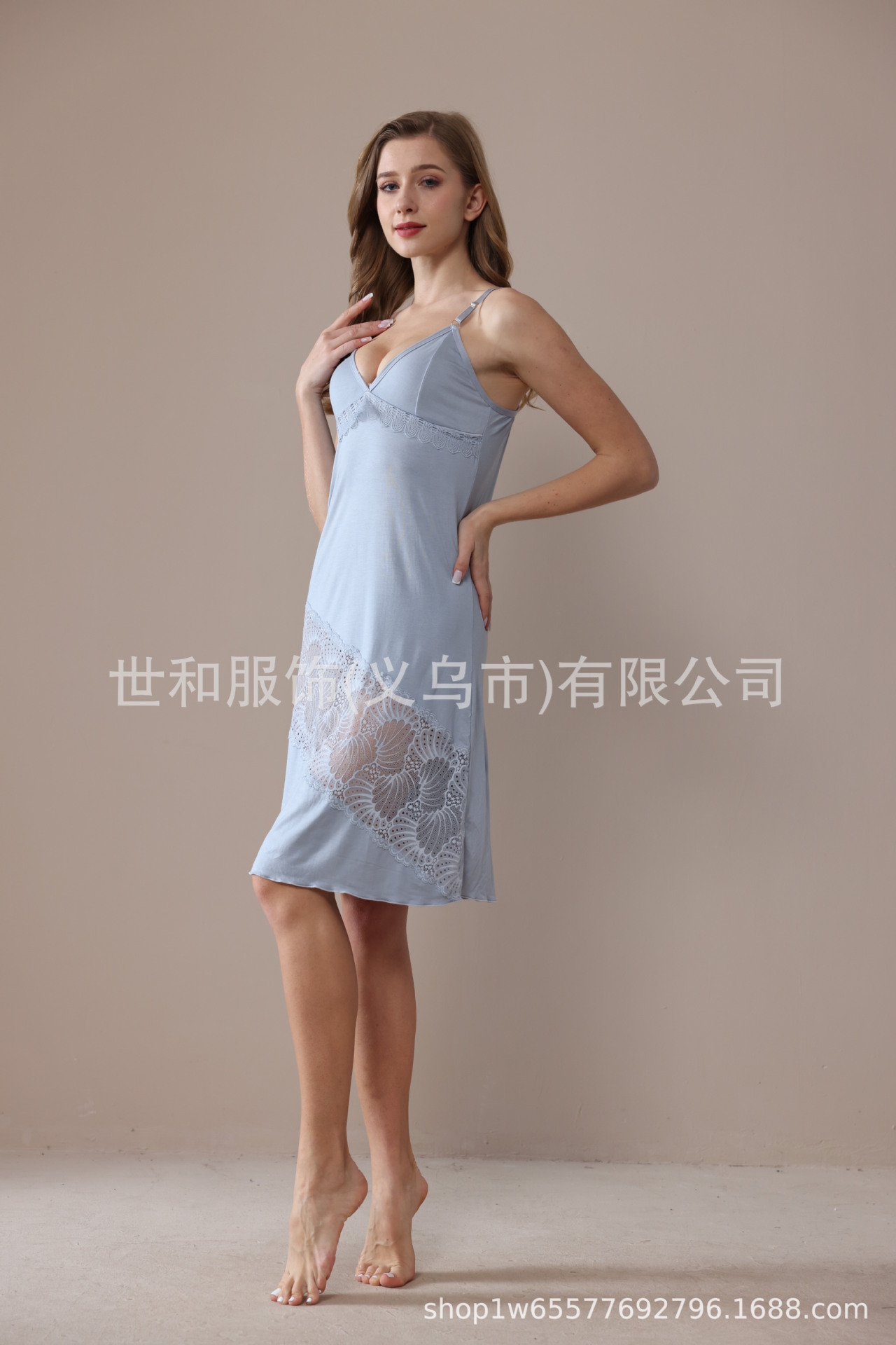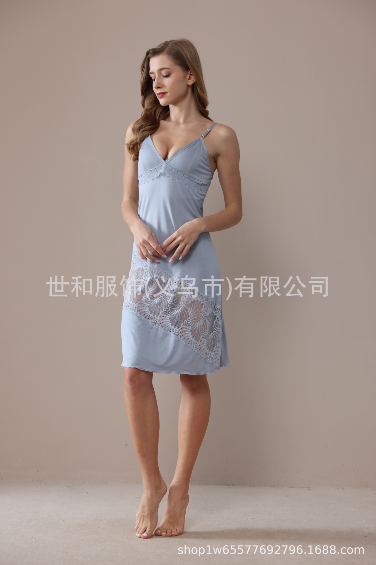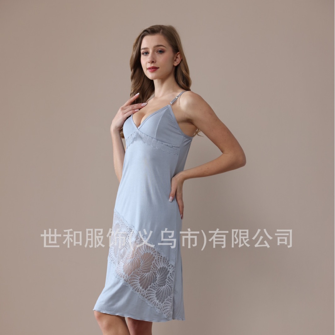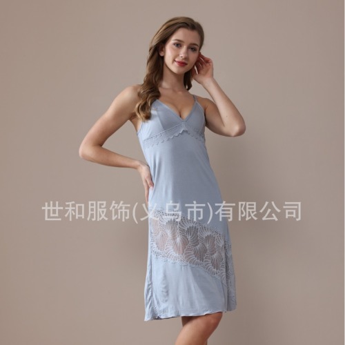 spring and summer new modal rayon women's foreign trade lace stitching solid color slip nightdress 中文版