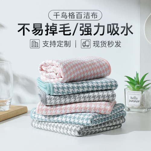 household kitchen absorbent towel thickened ultra-fine fiber houndstooth rag absorbent scouring pad not easy to stick oil rag 中文版