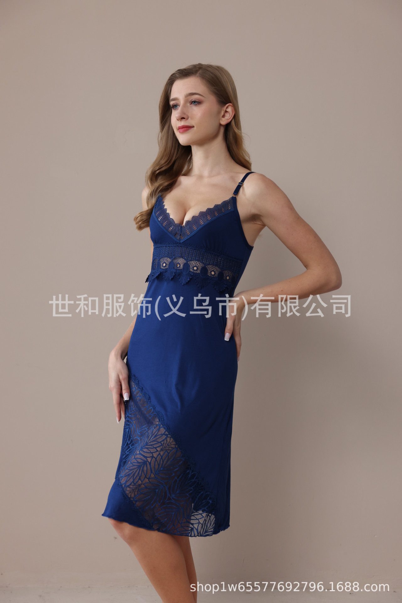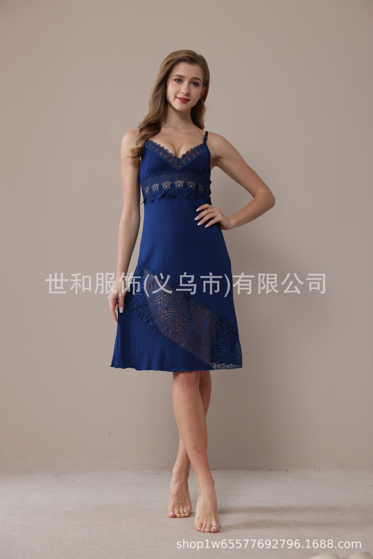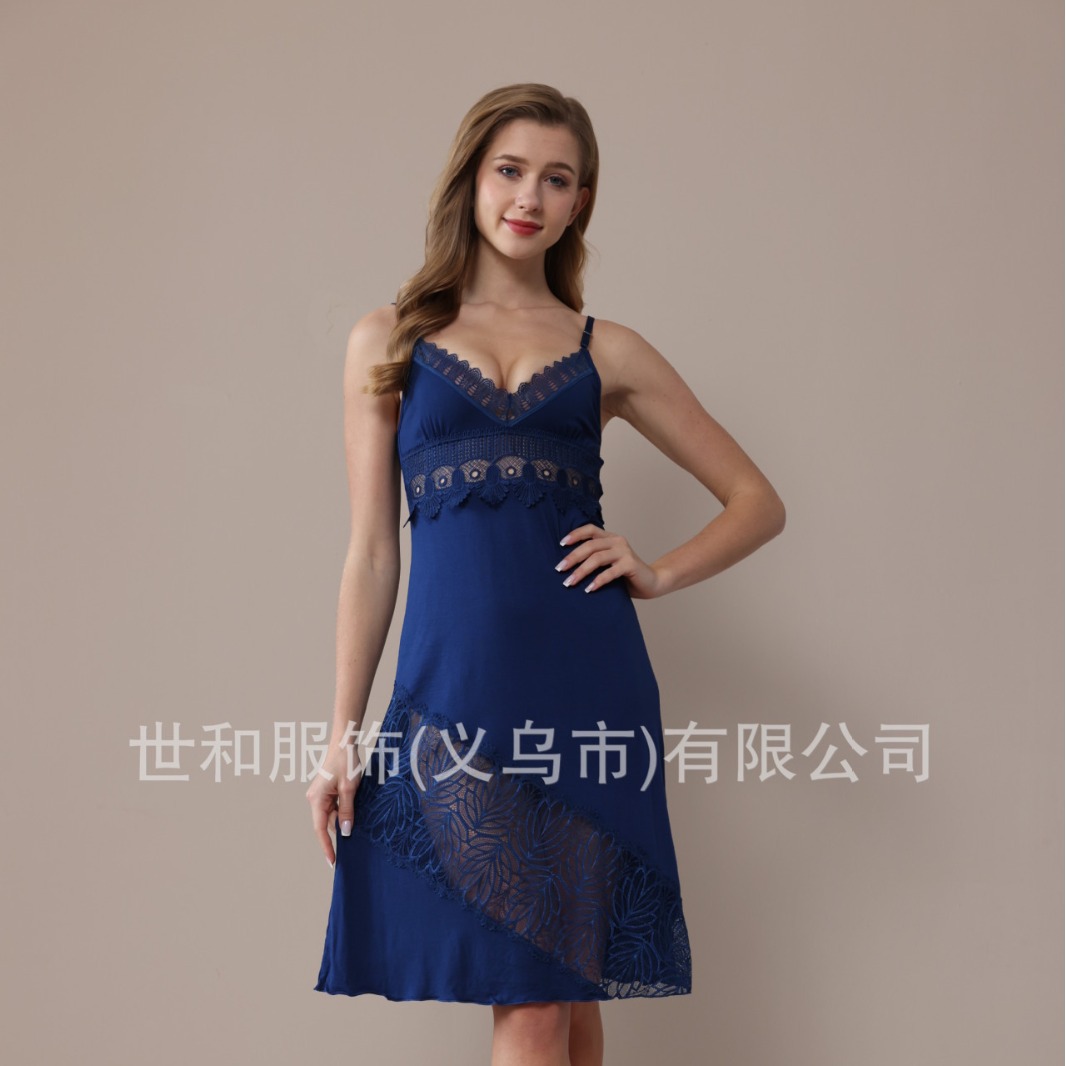 spring and summer new modal rayon women's foreign trade lace stitching solid color slip nightdress 中文版
