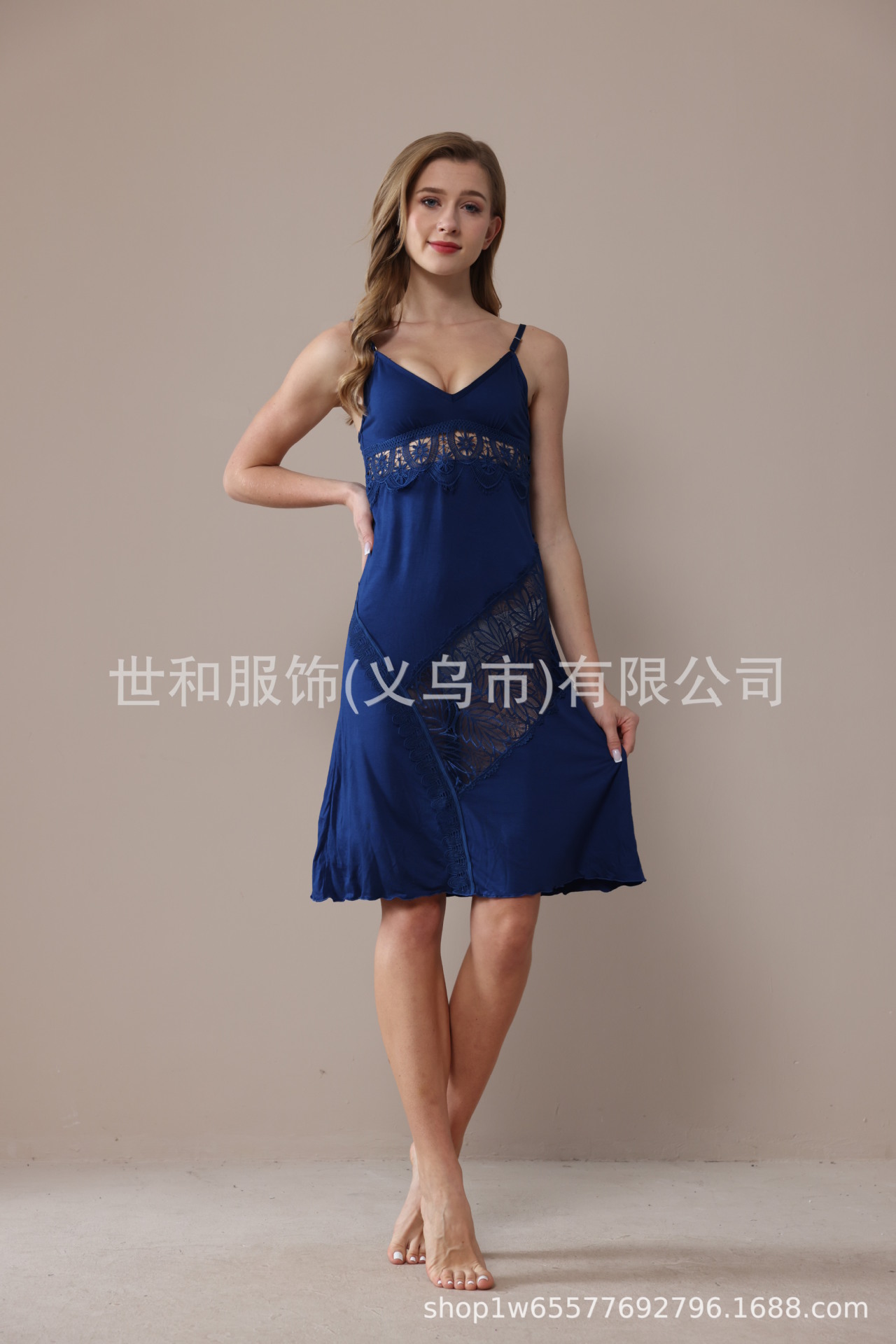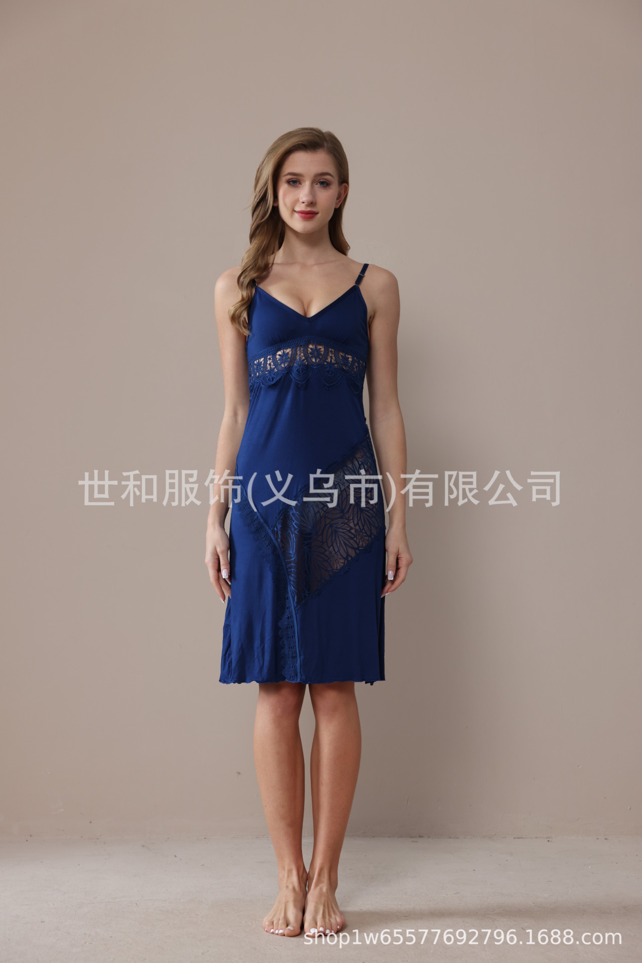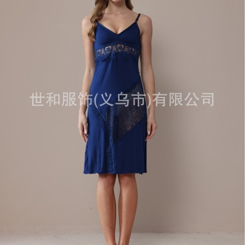 spring and summer new modal rayon women's foreign trade lace stitching solid color slip nightdress 中文版
