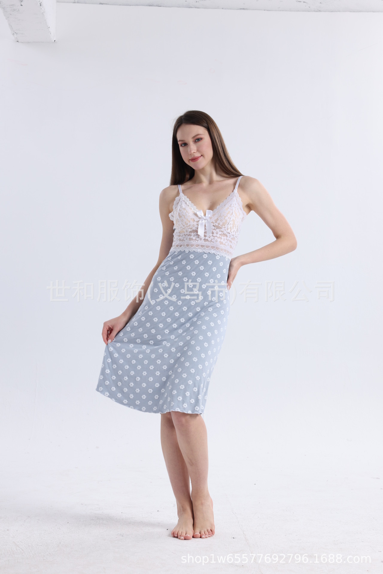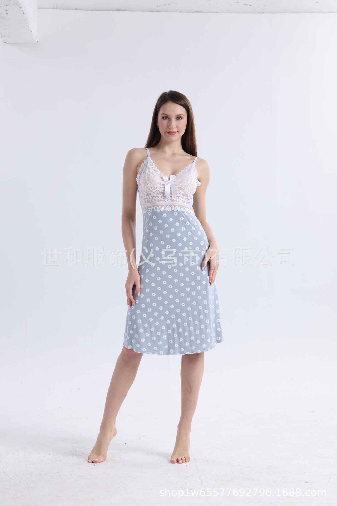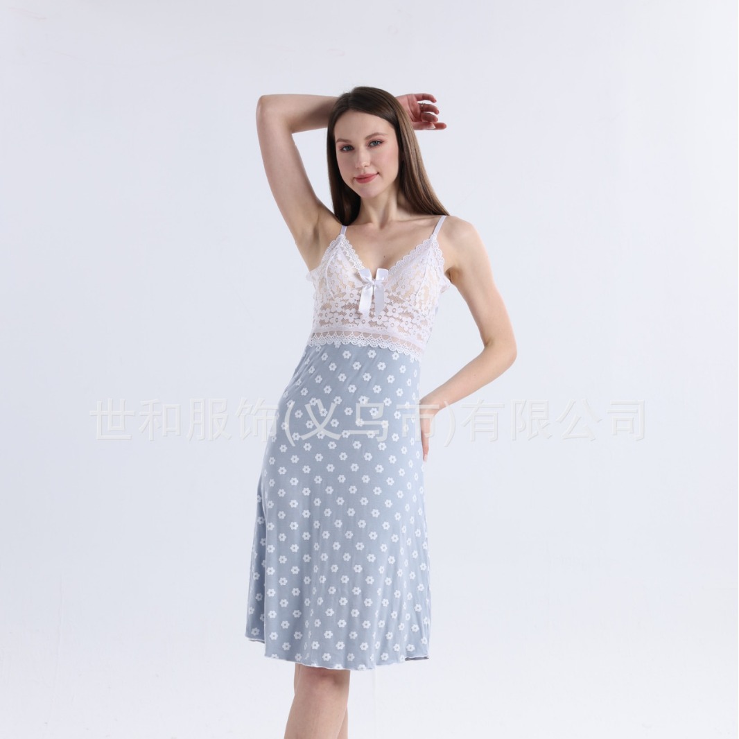 spring and summer new modal rayon women's foreign trade lace stitching full printed slip nightdress 中文版