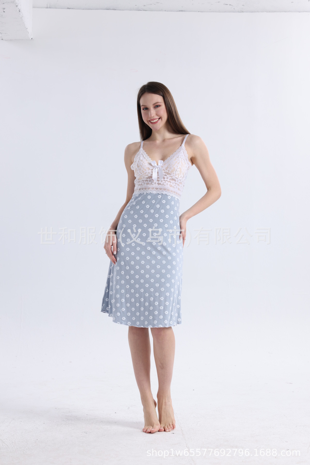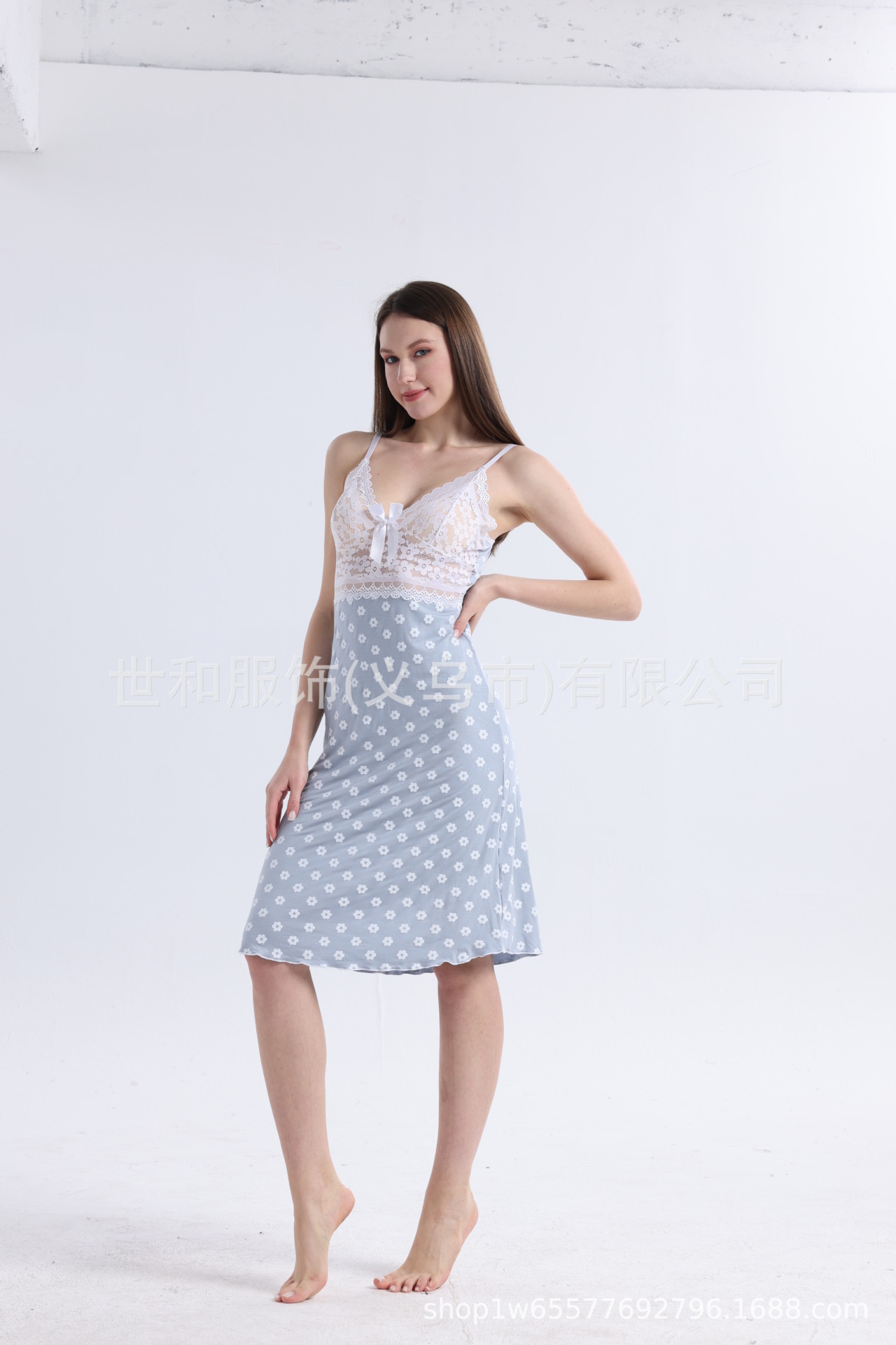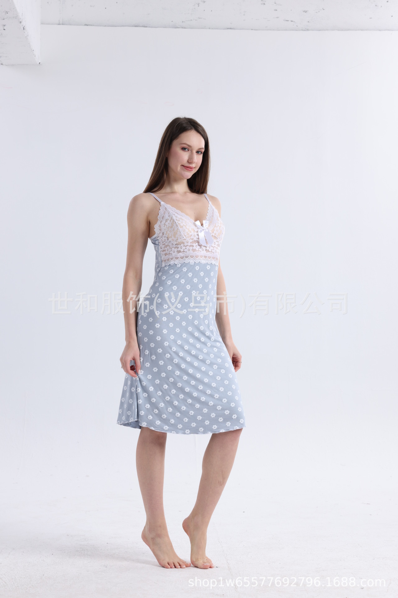 spring and summer new modal rayon women's foreign trade lace stitching full printed slip nightdress 中文版