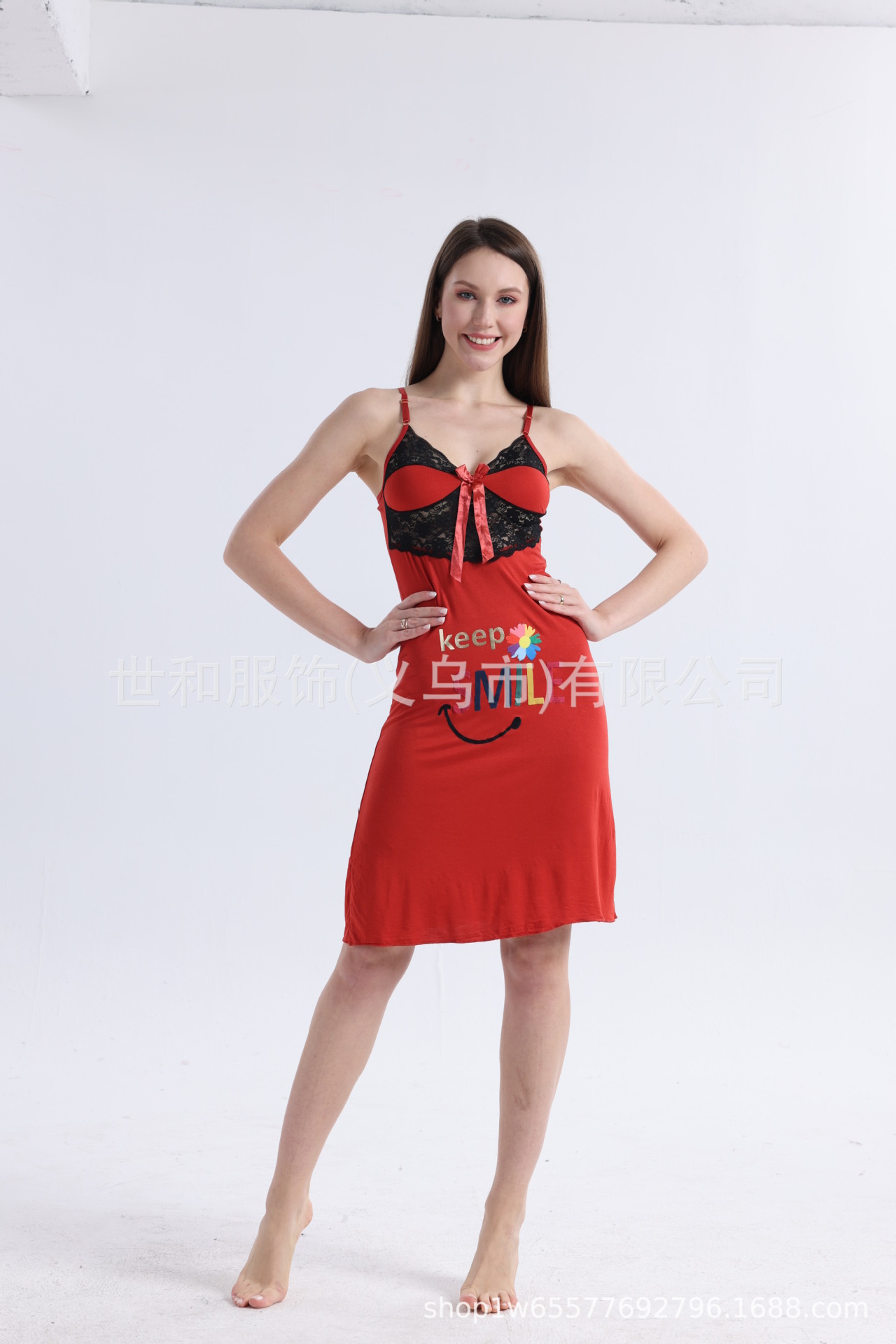 spring and summer new modal rayon women's foreign trade lace stitching printing slip nightdress 中文版