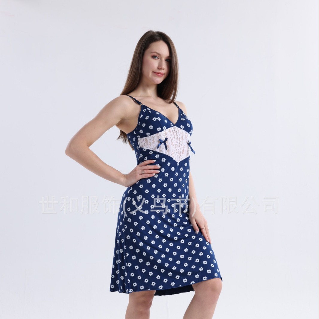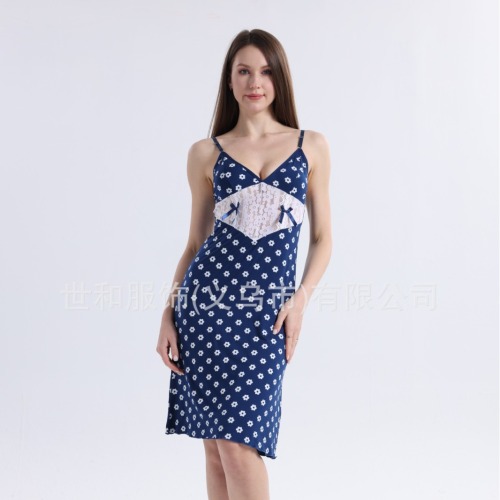 spring and summer new modal rayon women's foreign trade lace splicing sling nightdress 中文版