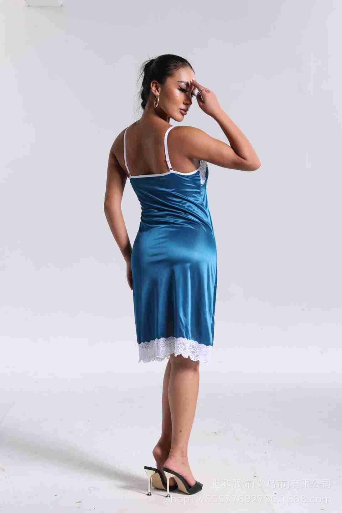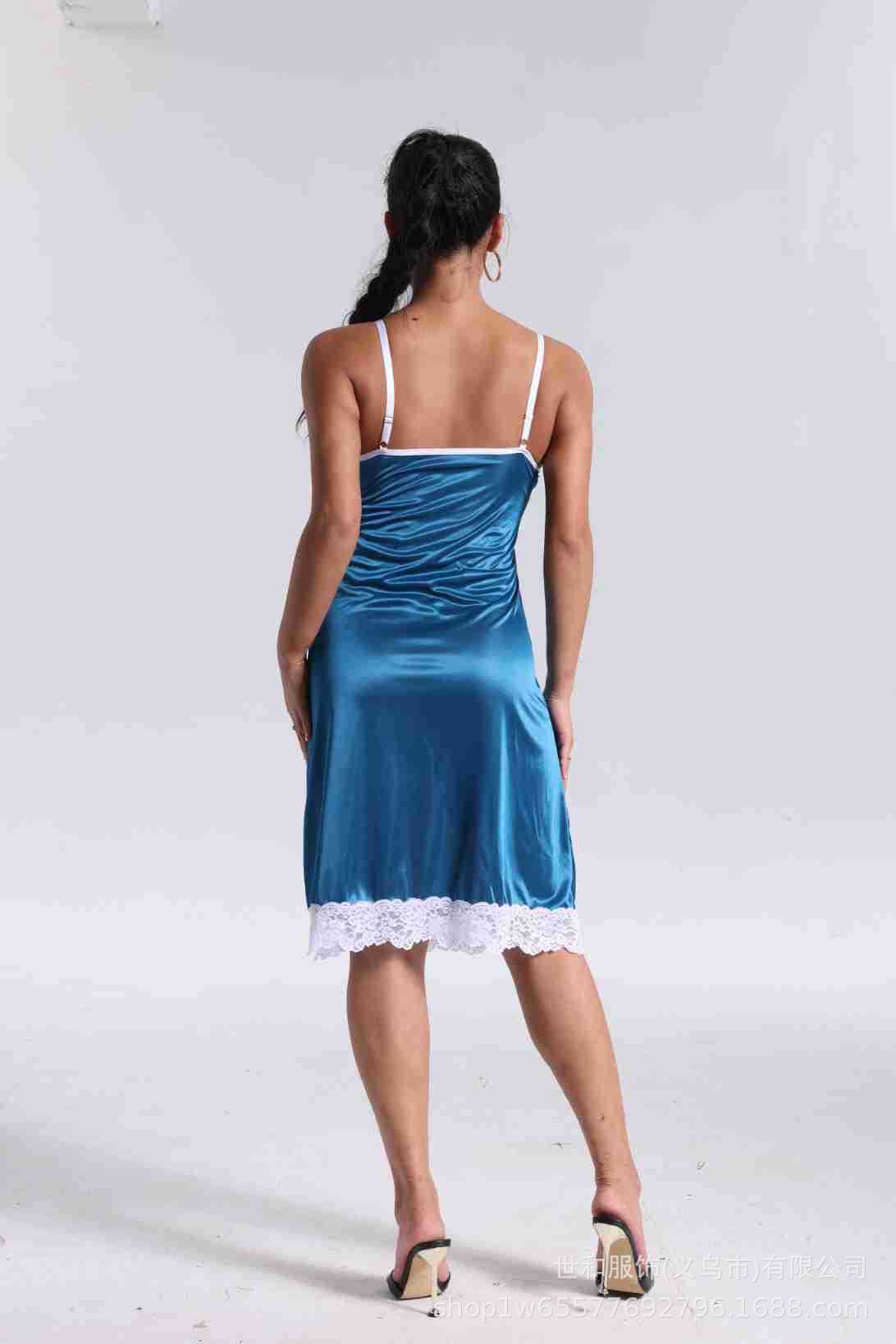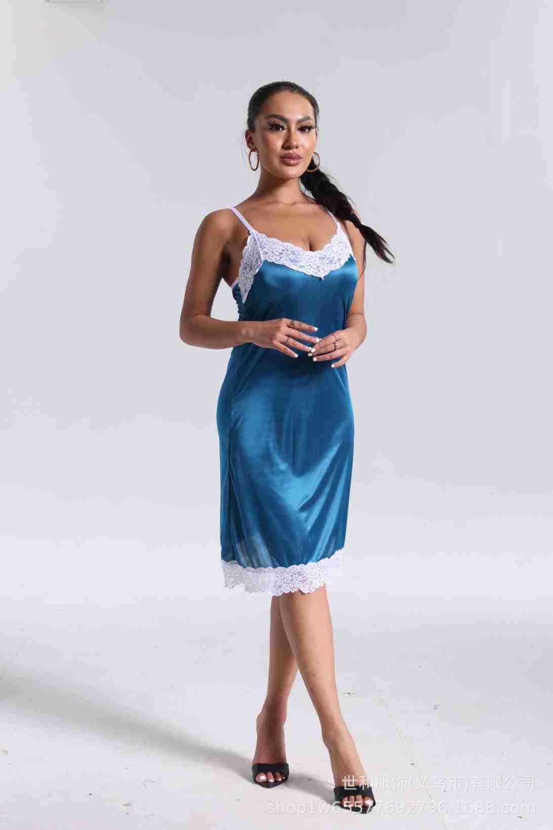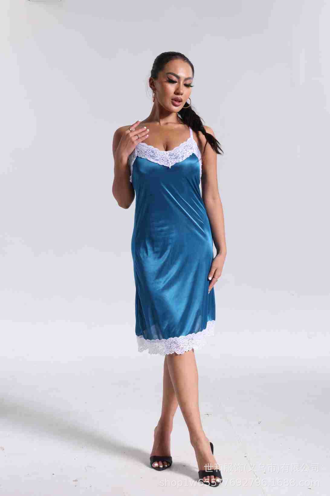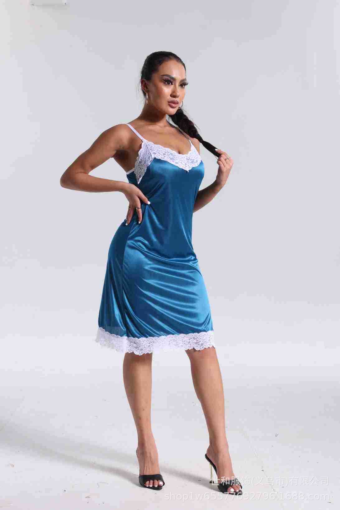 spring and summer new women's pajamas foreign trade women's ice silk lace lace spaghetti-strap nightdress cross-border wholesale 中文版