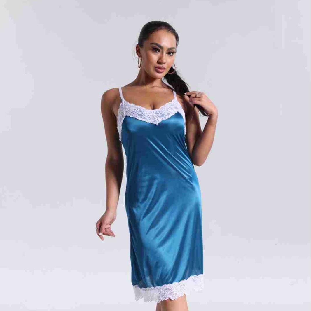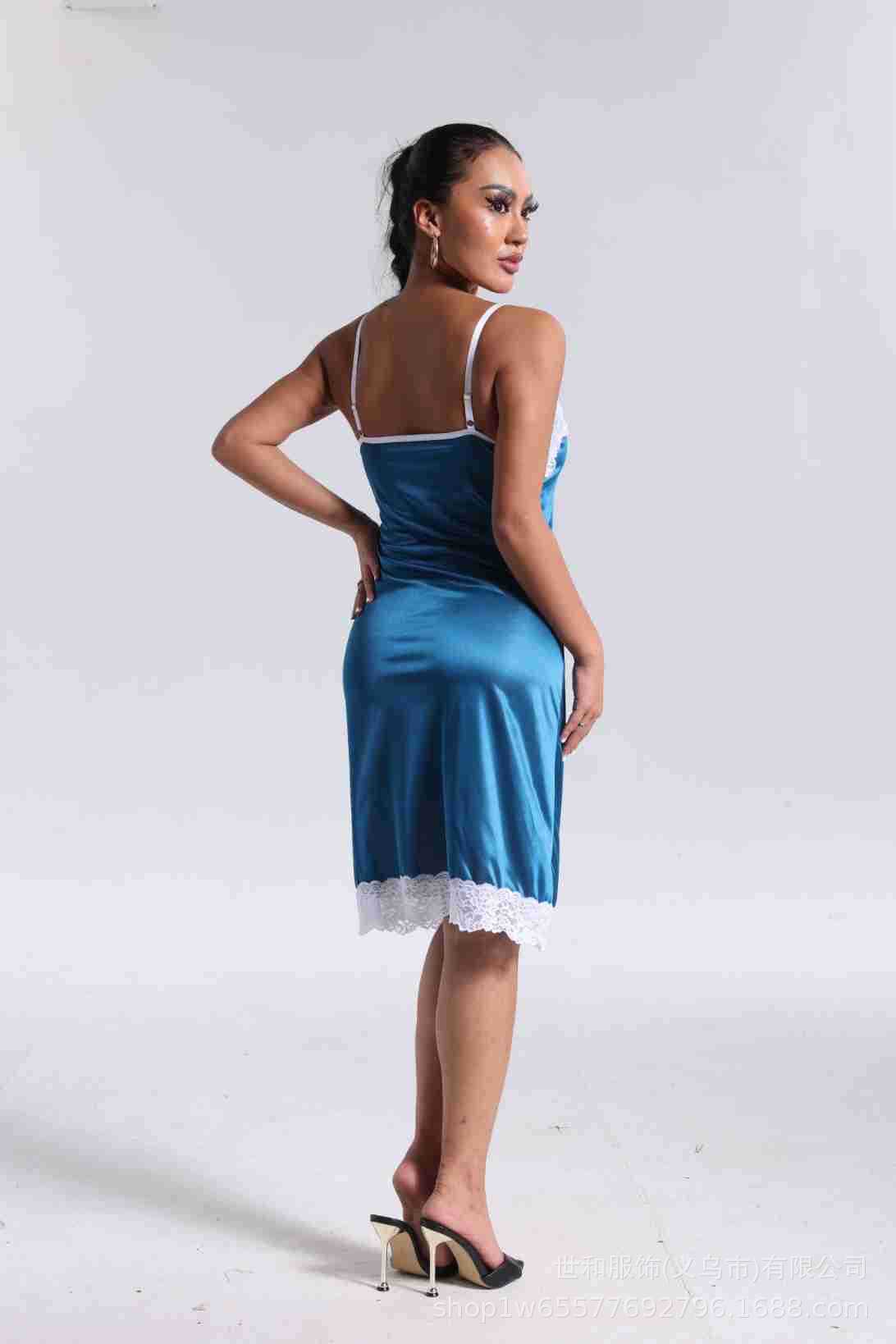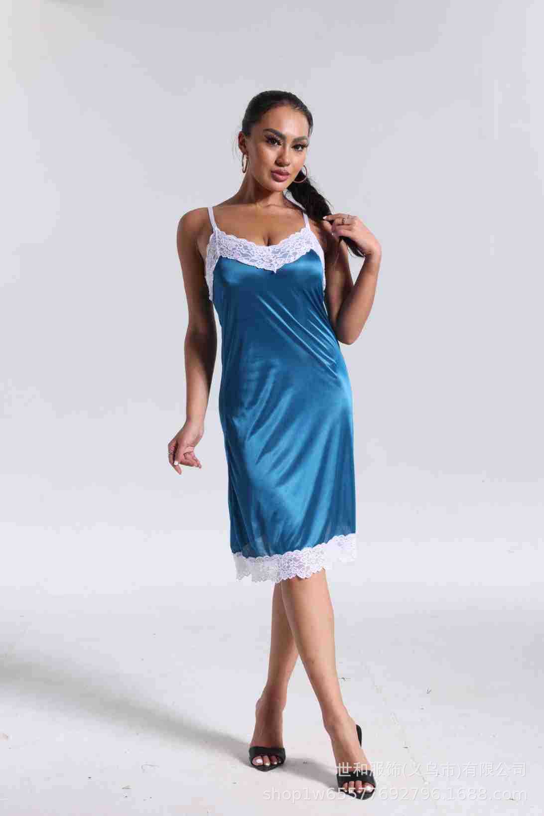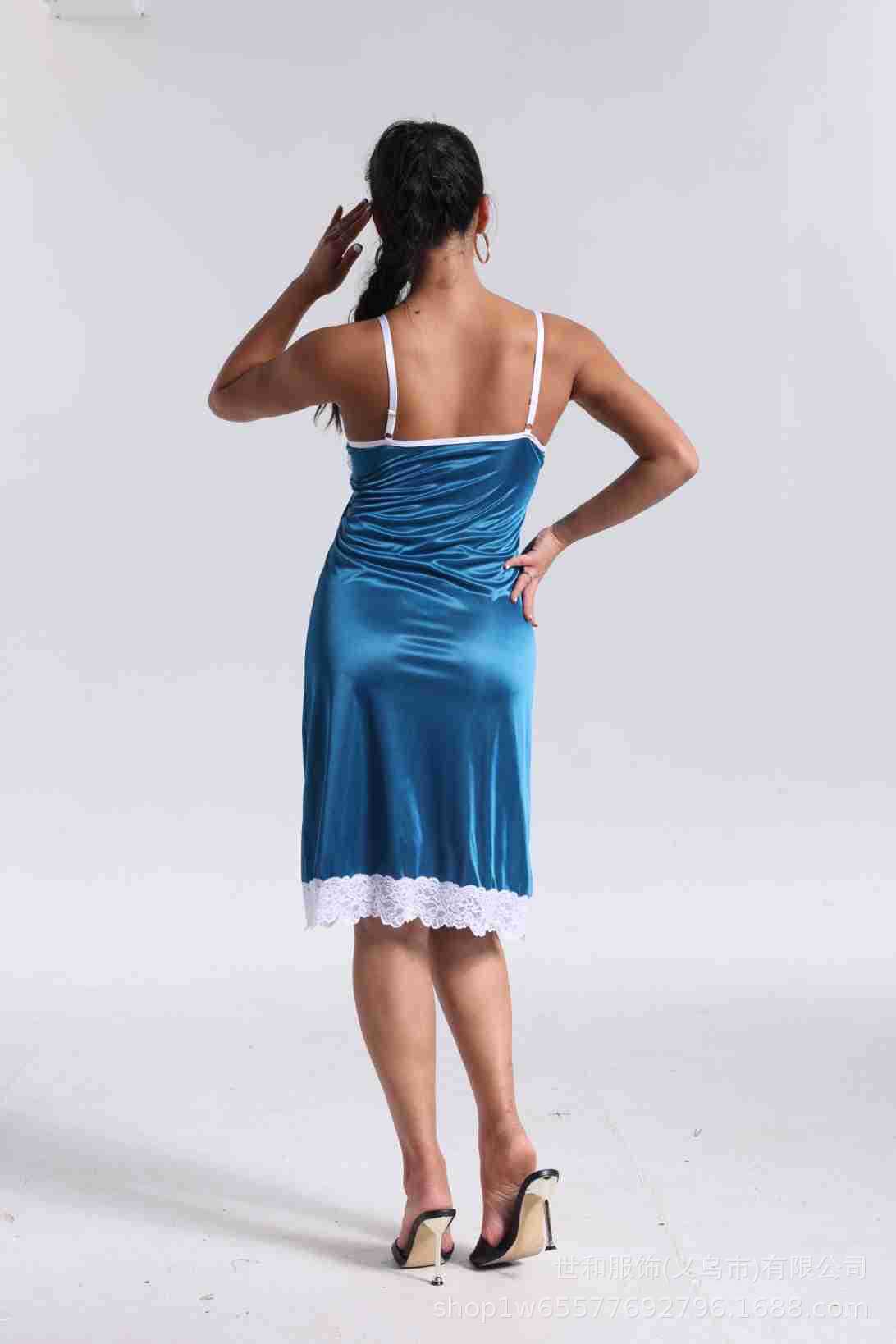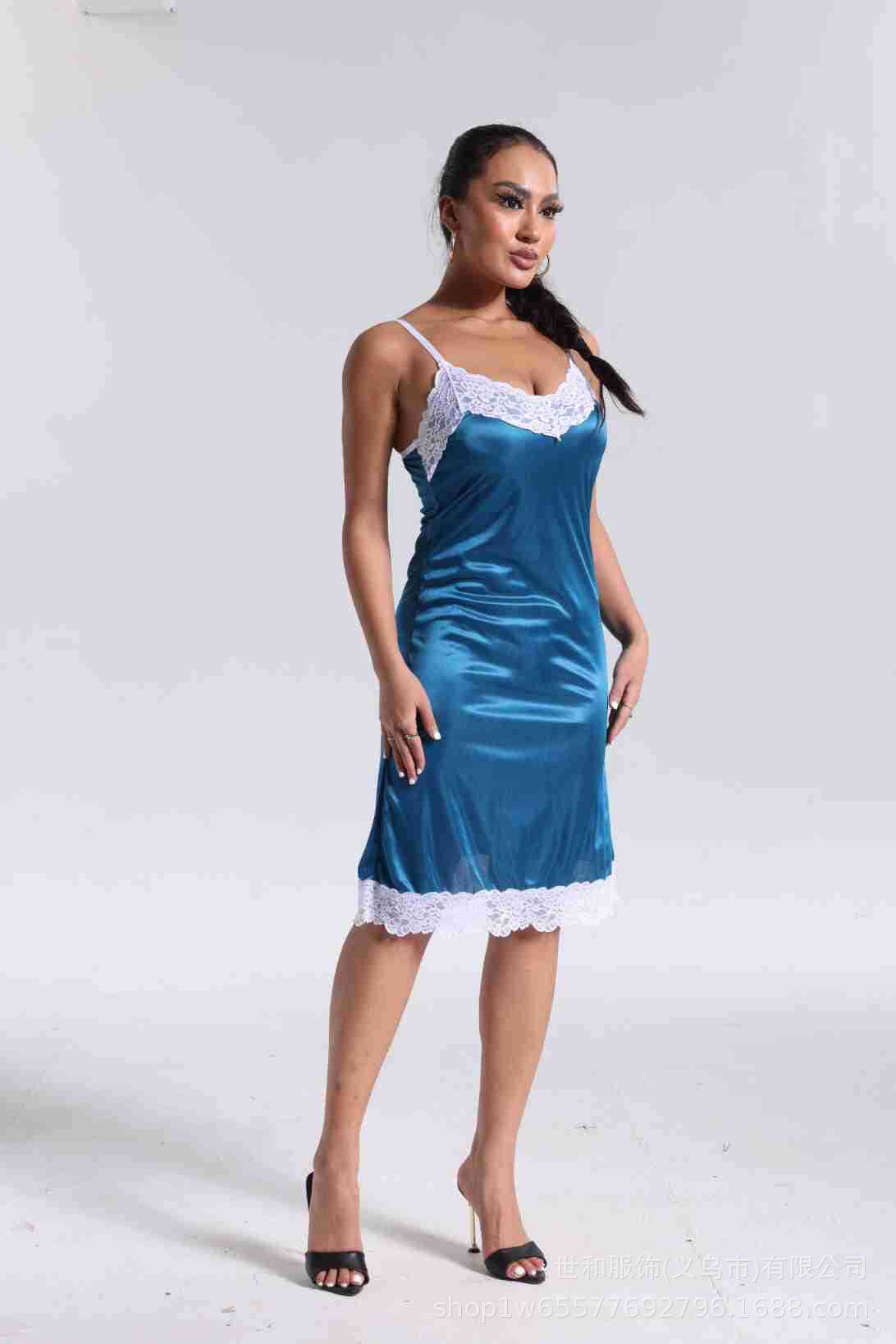 spring and summer new women's pajamas foreign trade women's ice silk lace lace spaghetti-strap nightdress cross-border wholesale 中文版