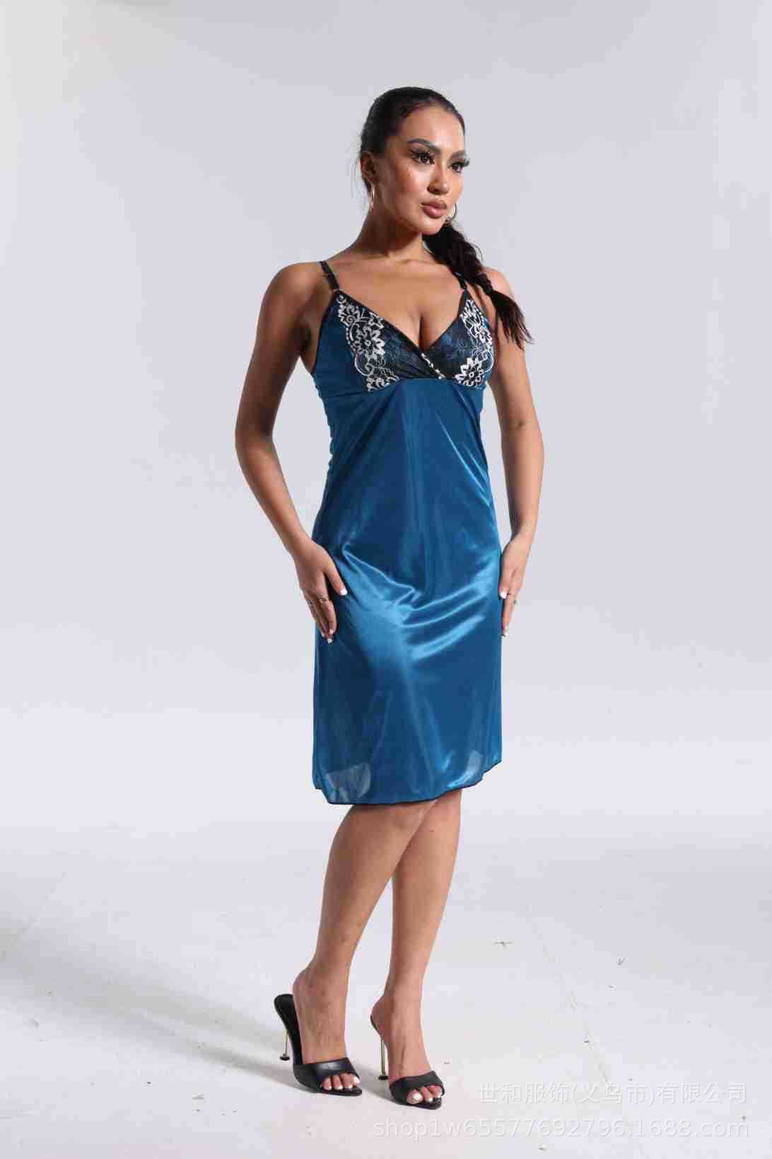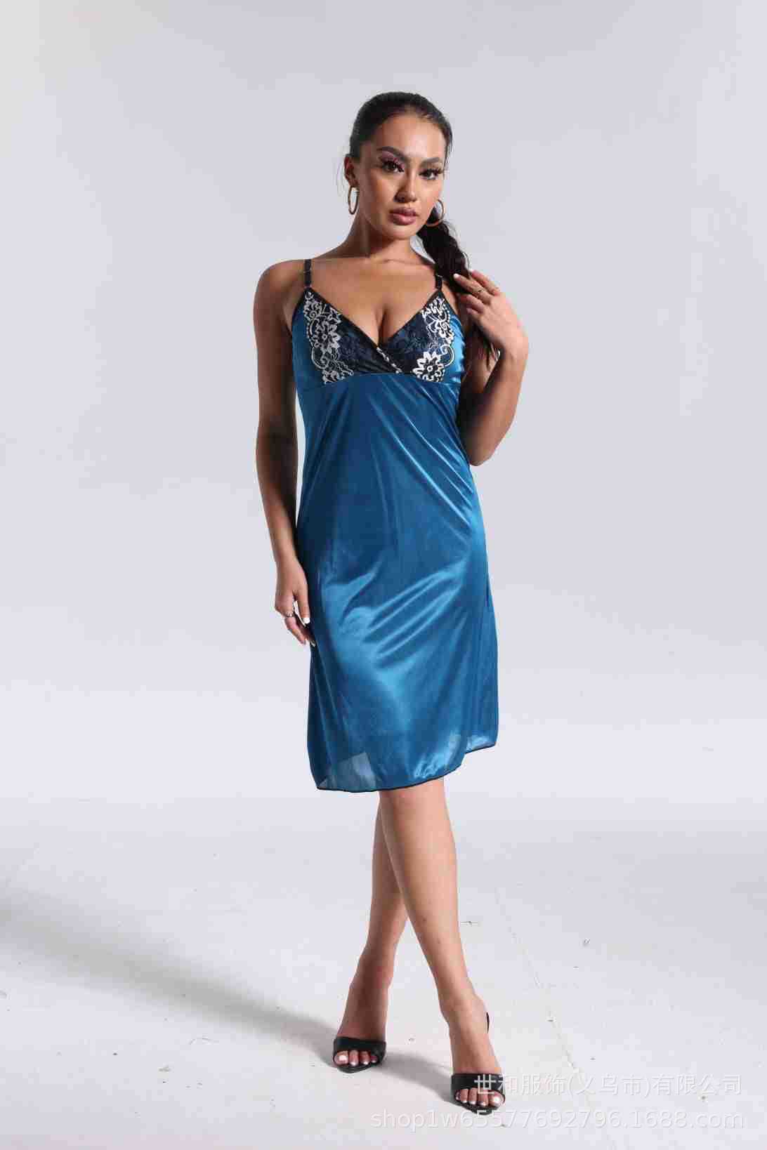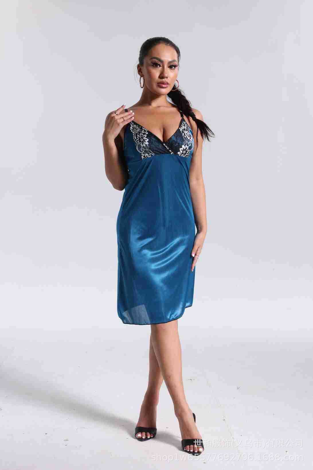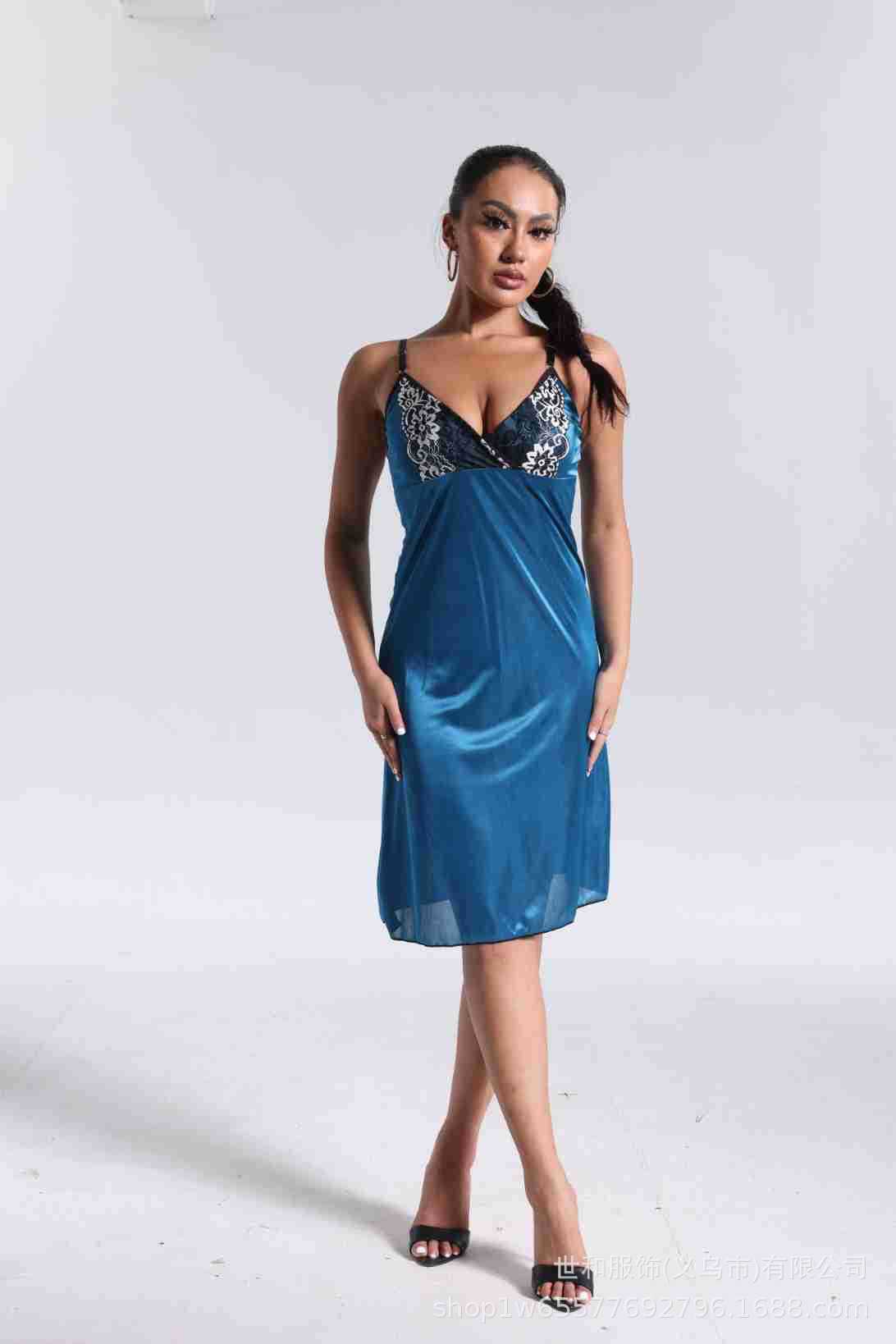 spring and summer new women's pajamas foreign trade women's ice silk lace lace spaghetti-strap nightdress cross-border wholesale 中文版