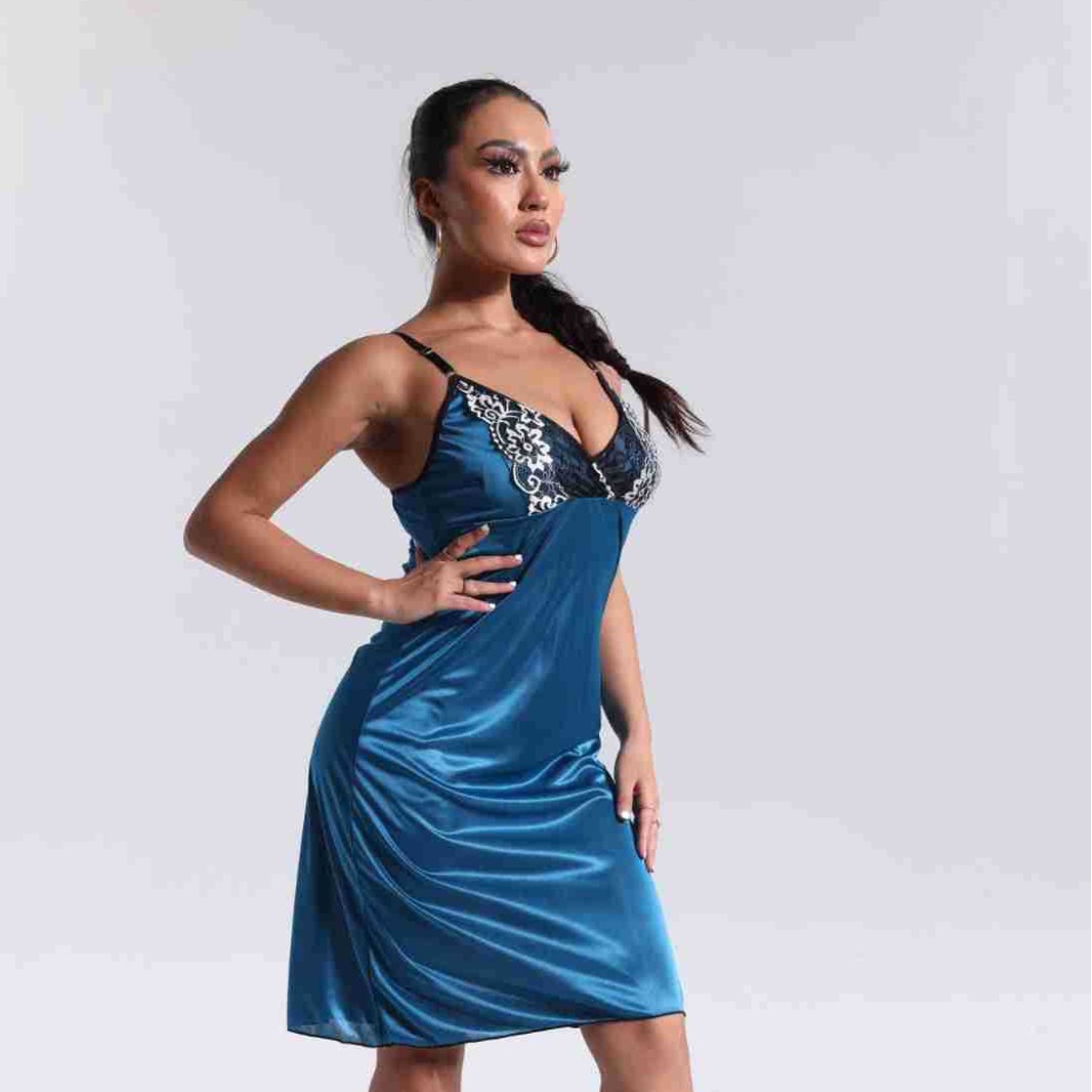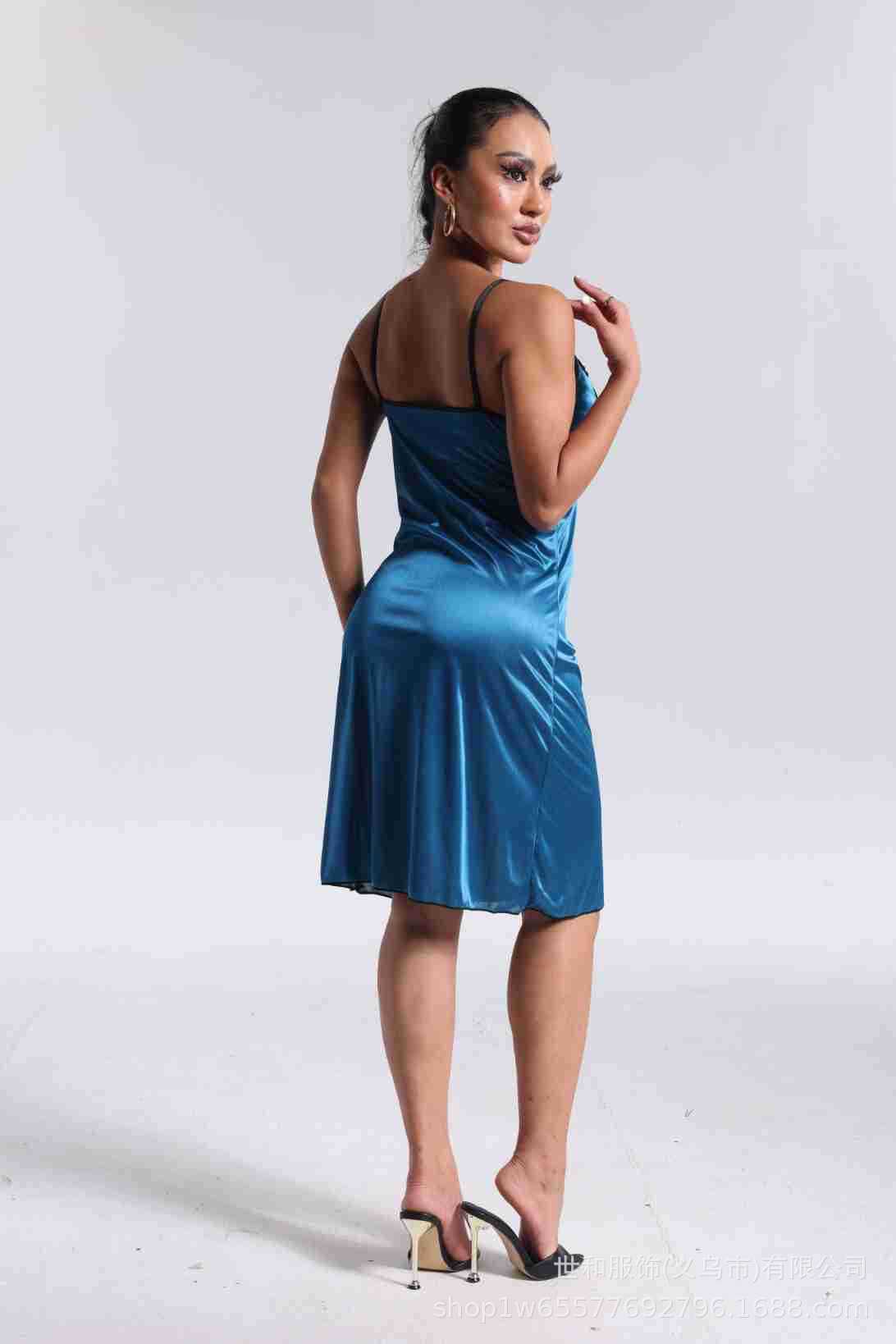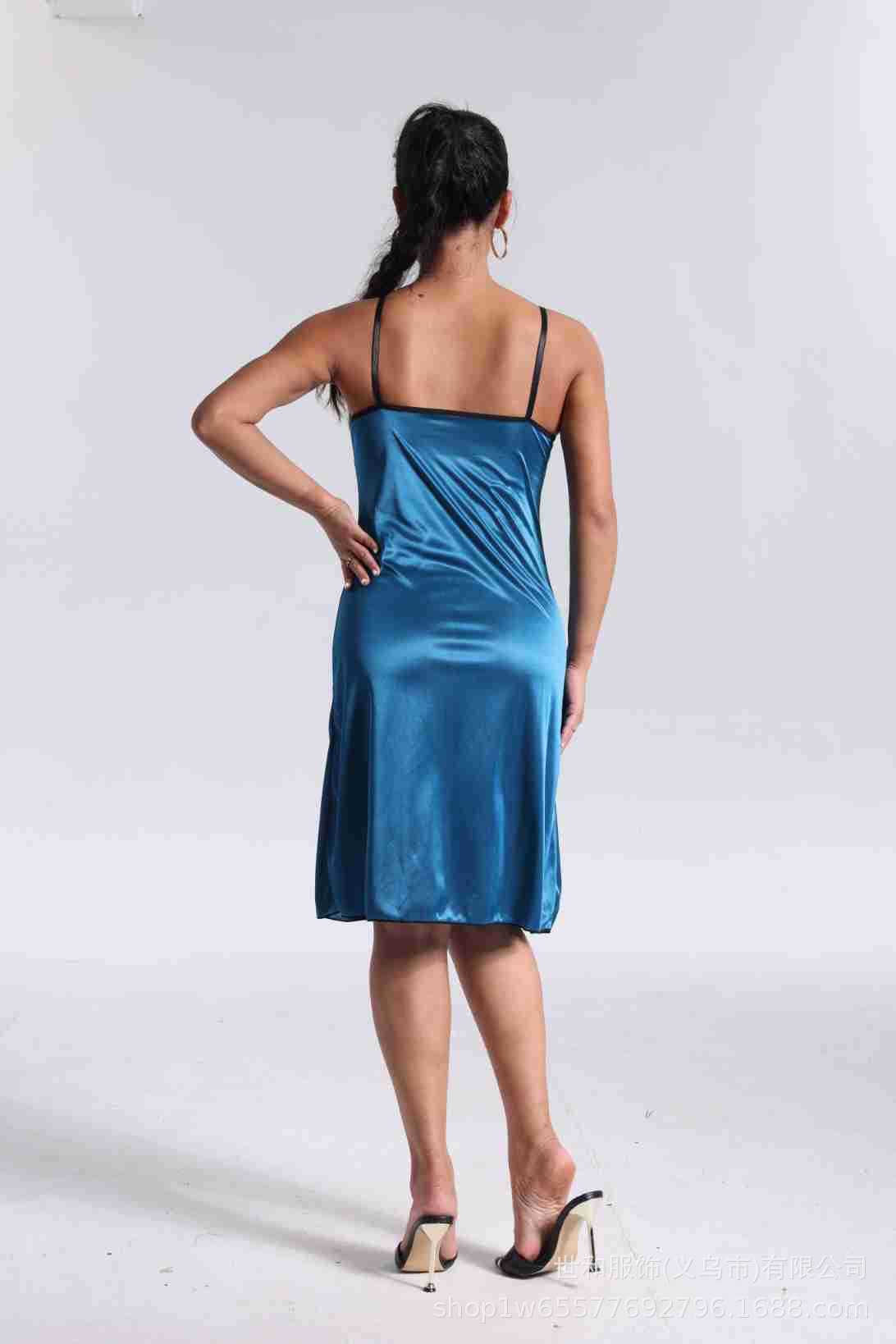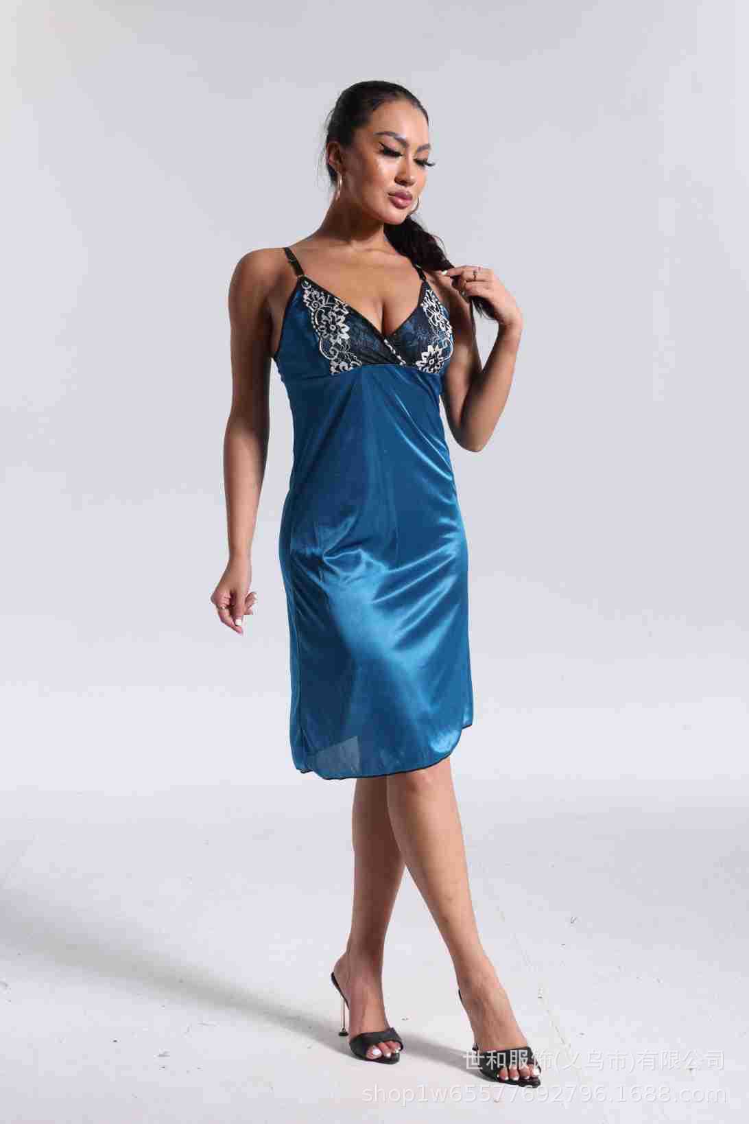 spring and summer new women's pajamas foreign trade women's ice silk lace lace spaghetti-strap nightdress cross-border wholesale 中文版