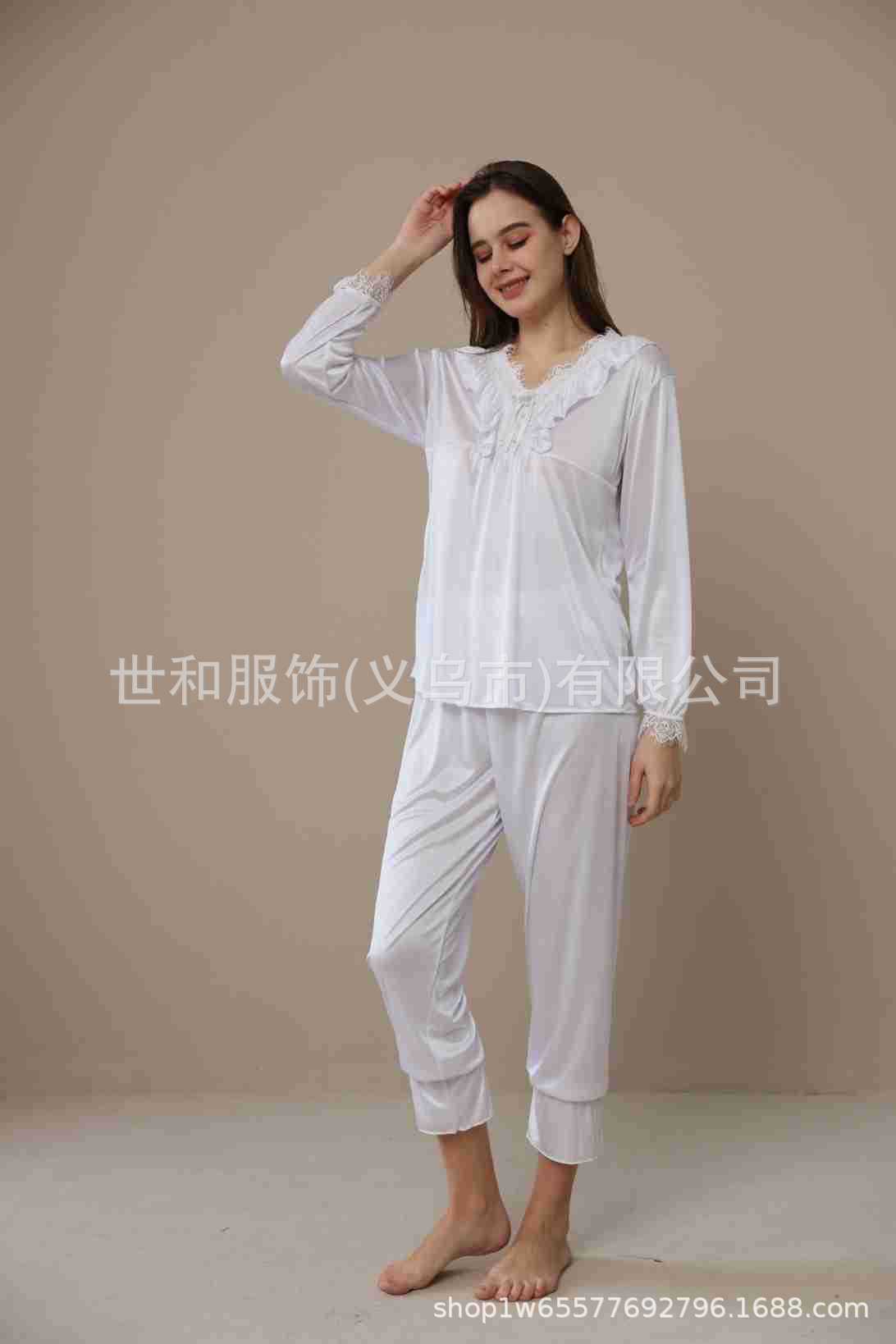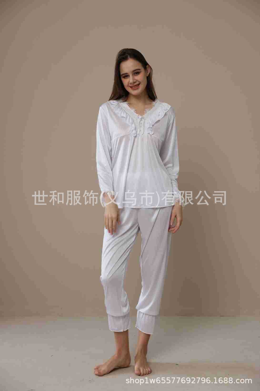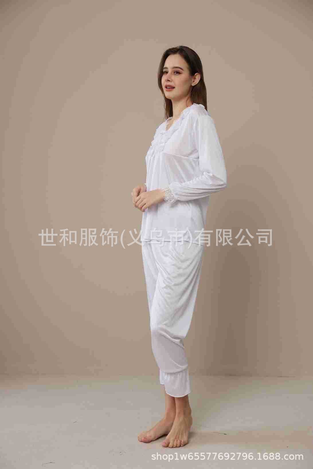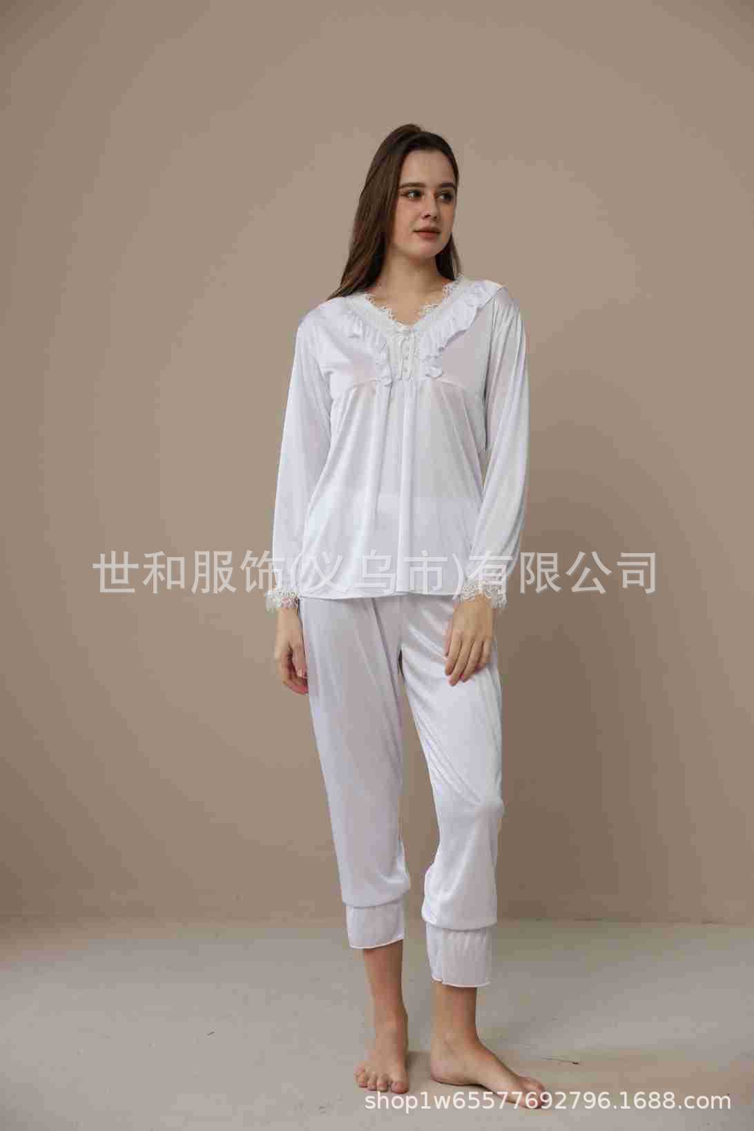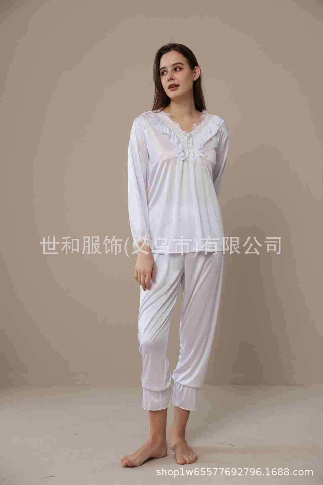 spring and summer new foreign trade women's swimming light lace court style long-sleeved trousers pajamas home wear two-piece suit 中文版