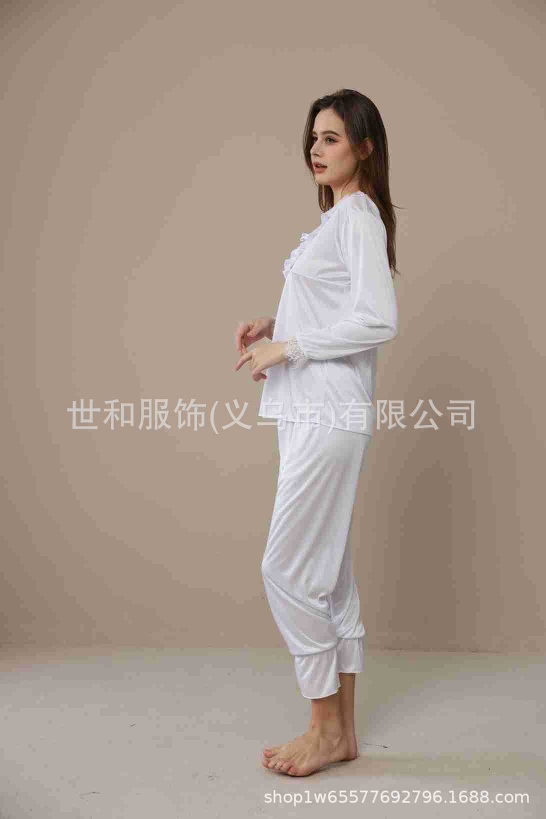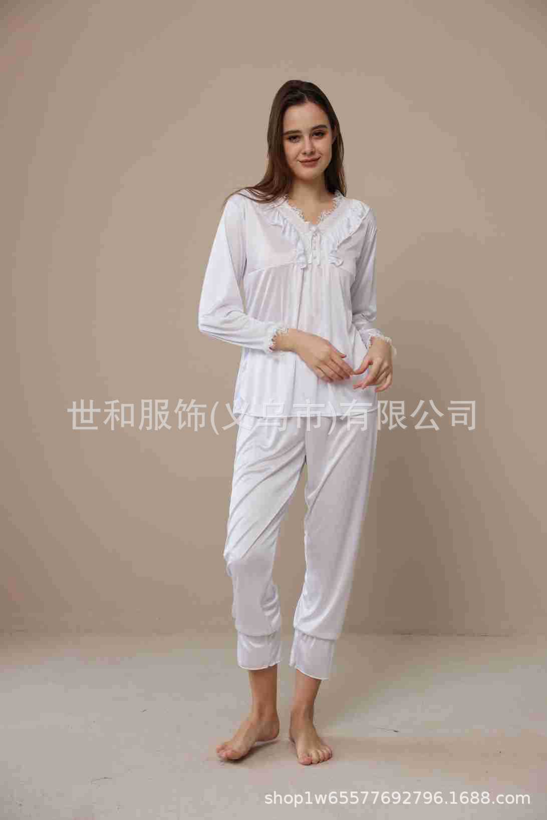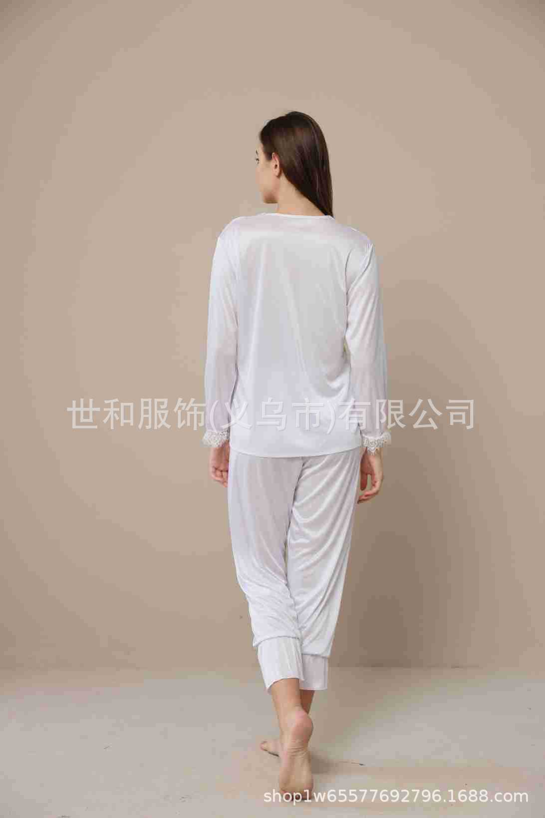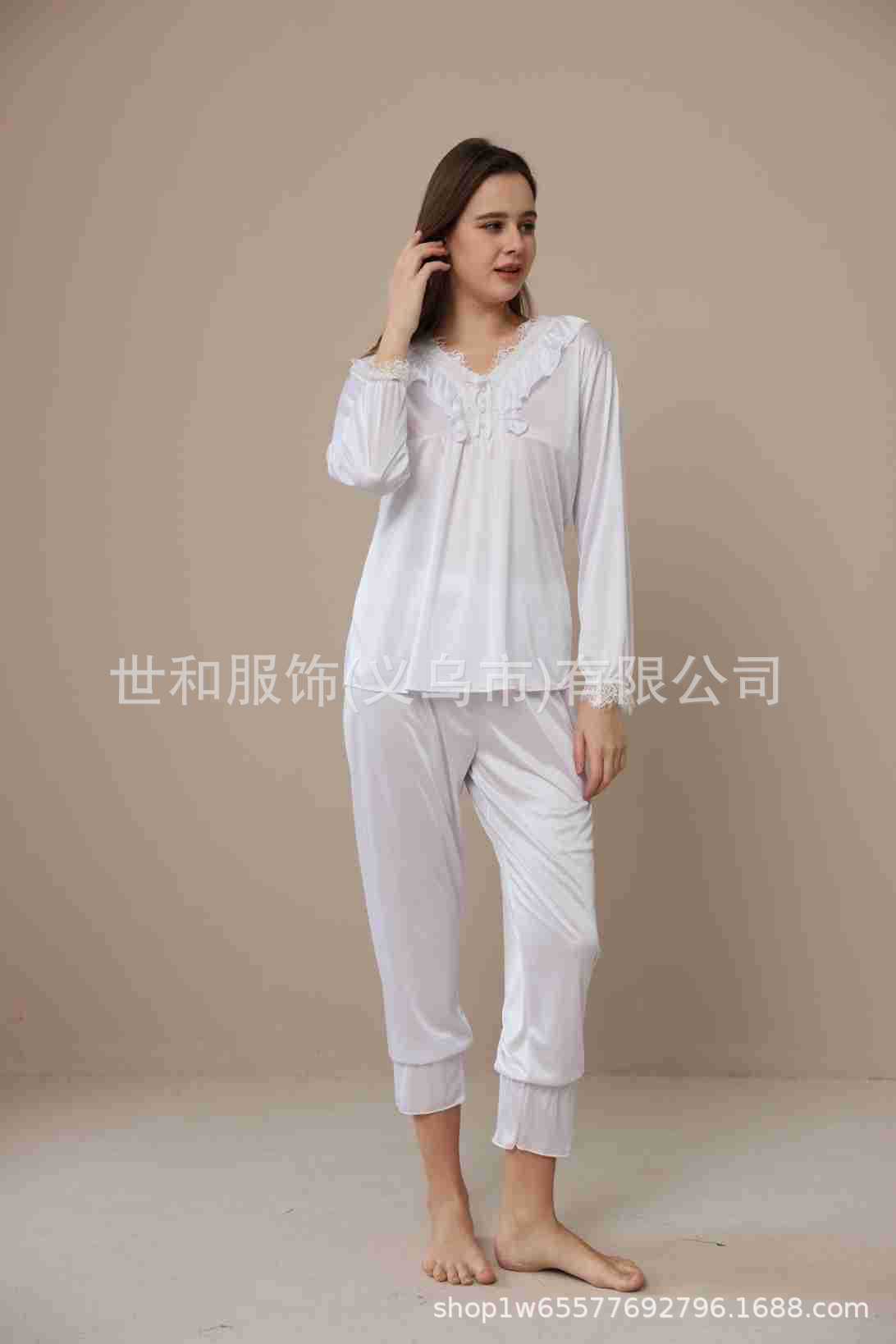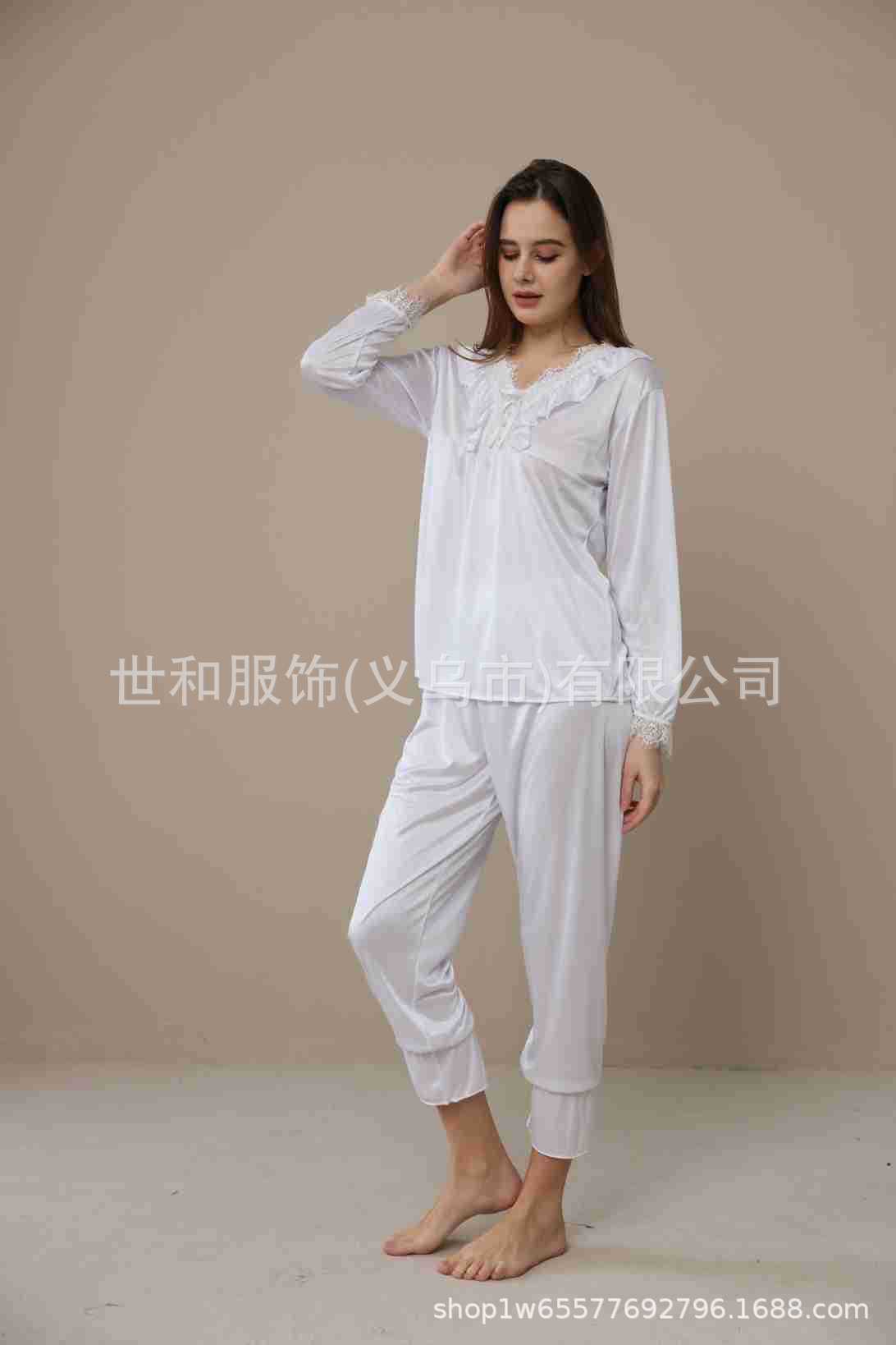spring and summer new foreign trade women's swimming light lace court style long-sleeved trousers pajamas home wear two-piece suit 中文版