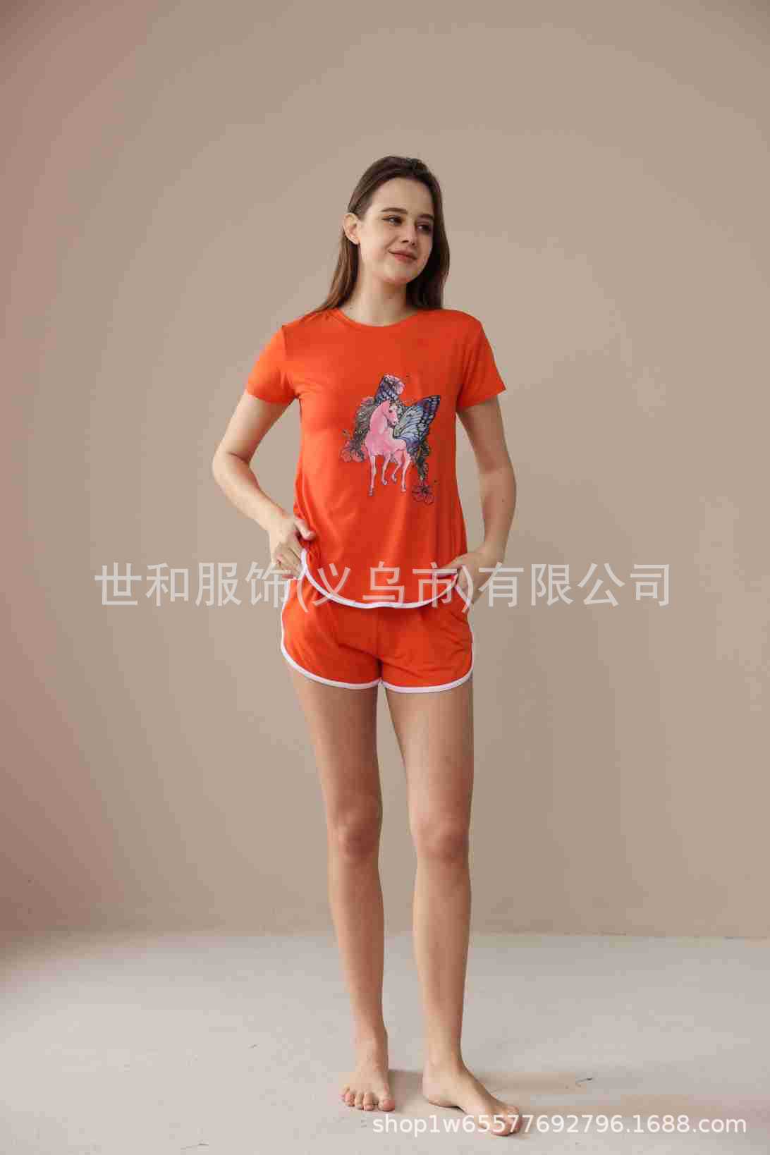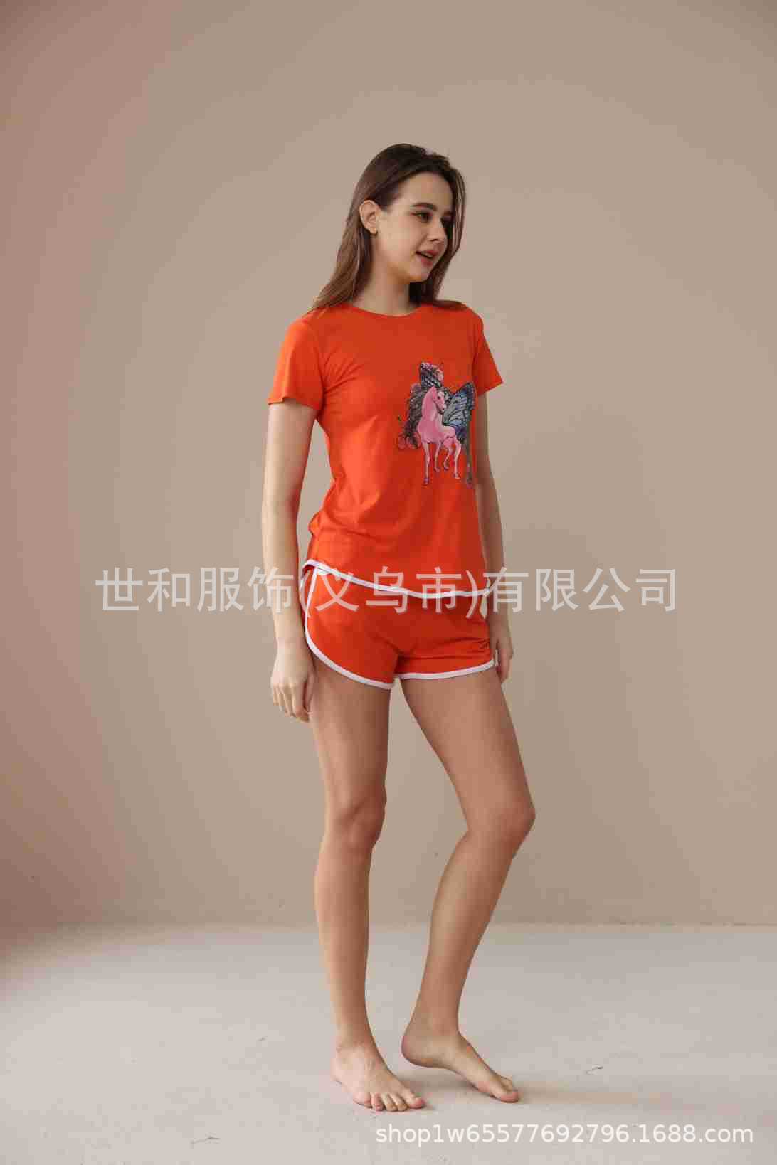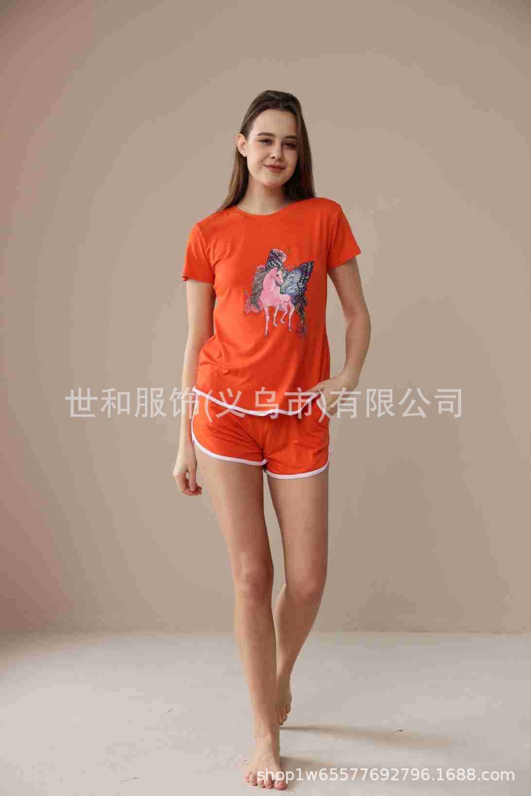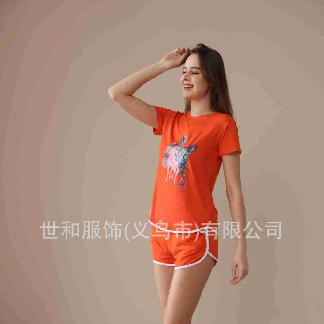 spring and summer new foreign trade women's oversized printed short sleeves shorts with pockets pajamas suit 中文版