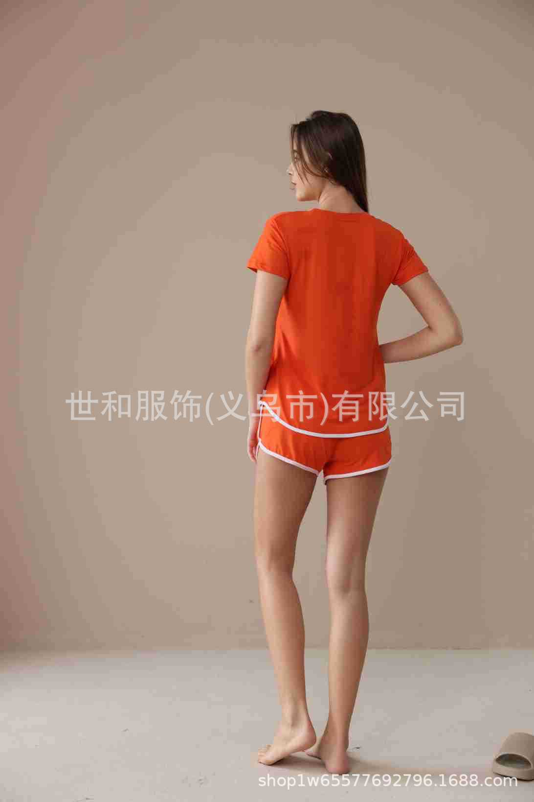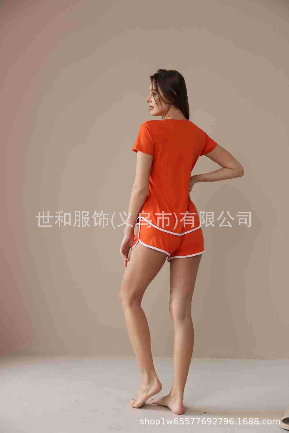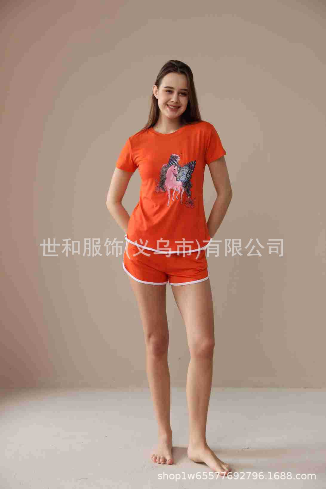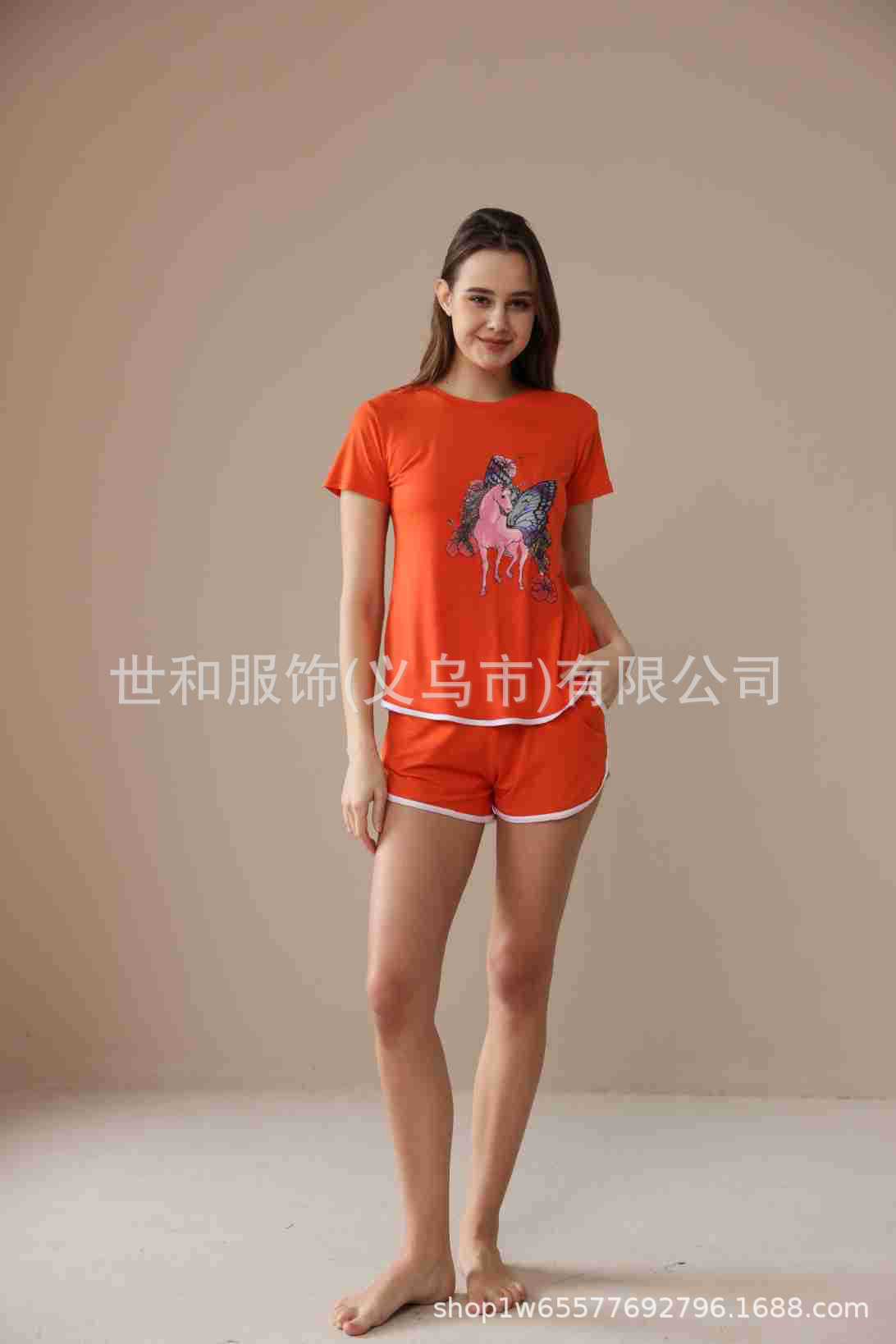 spring and summer new foreign trade women's oversized printed short sleeves shorts with pockets pajamas suit 中文版