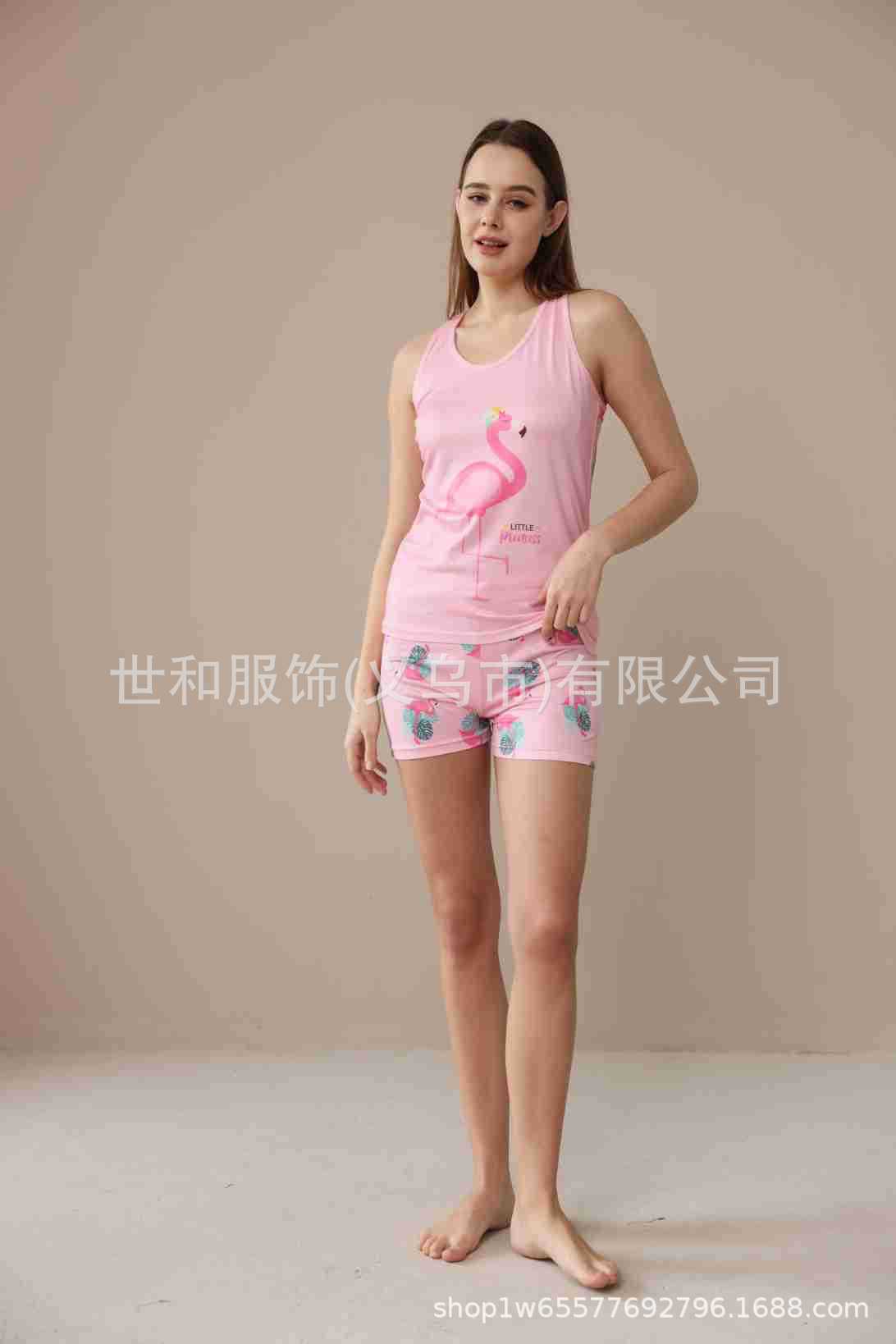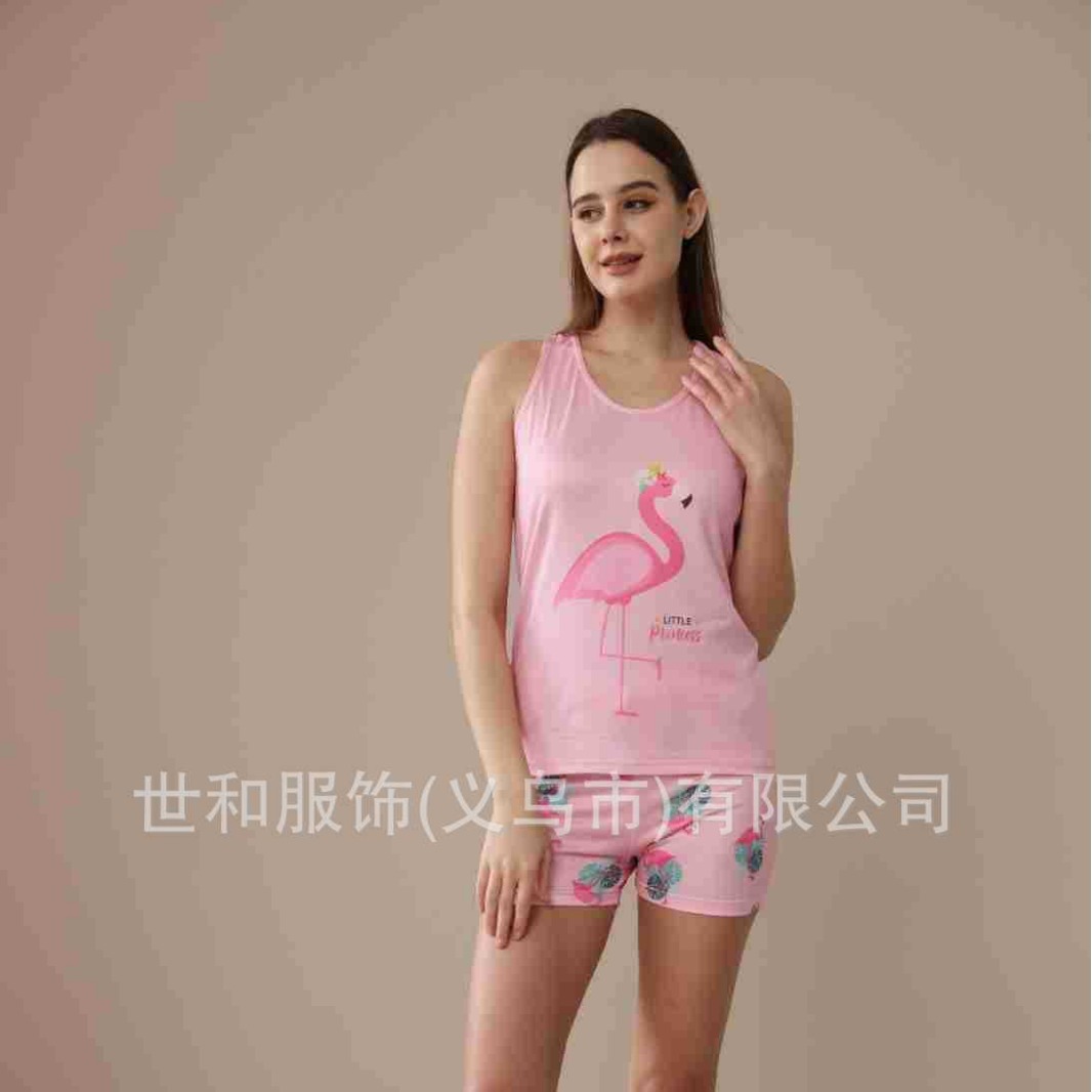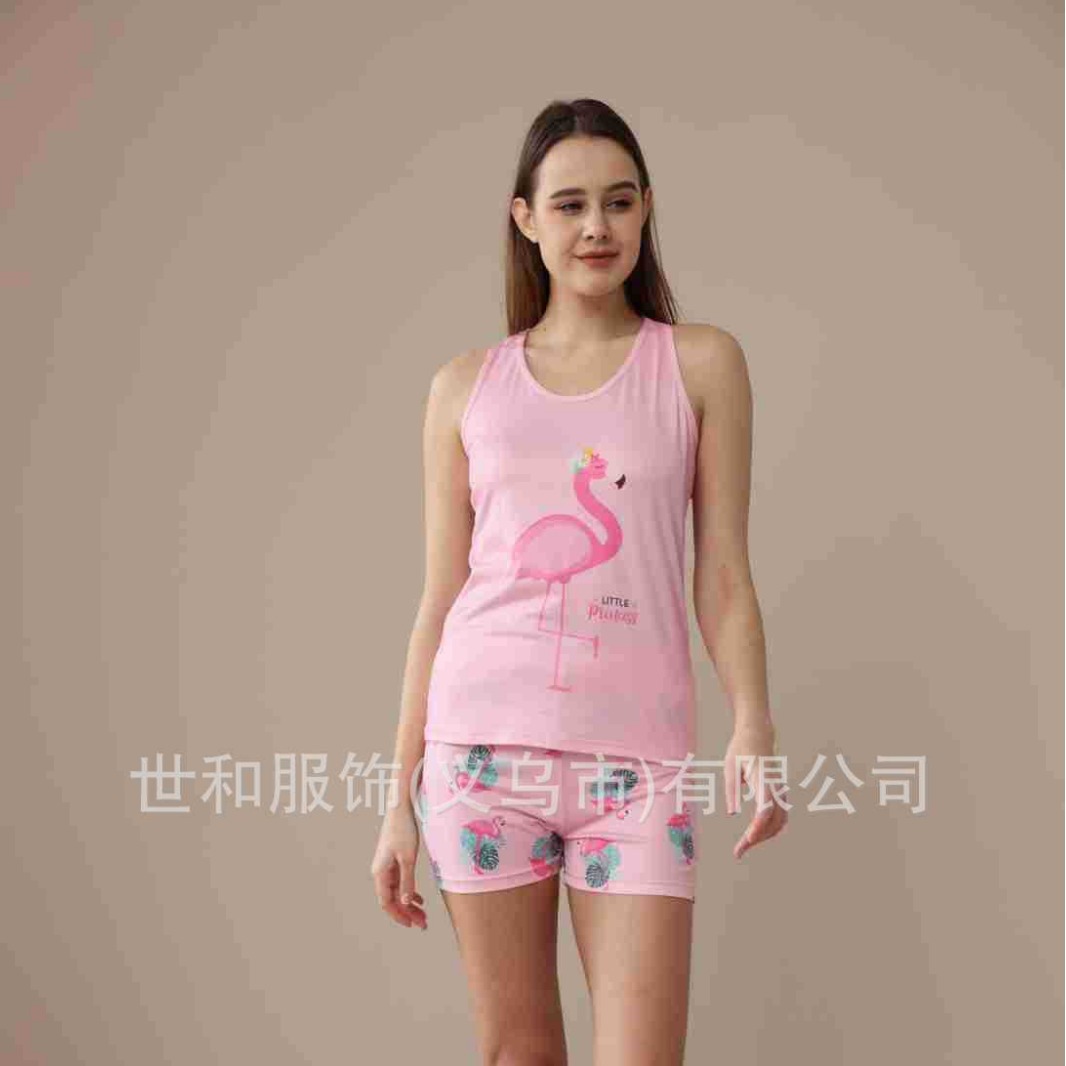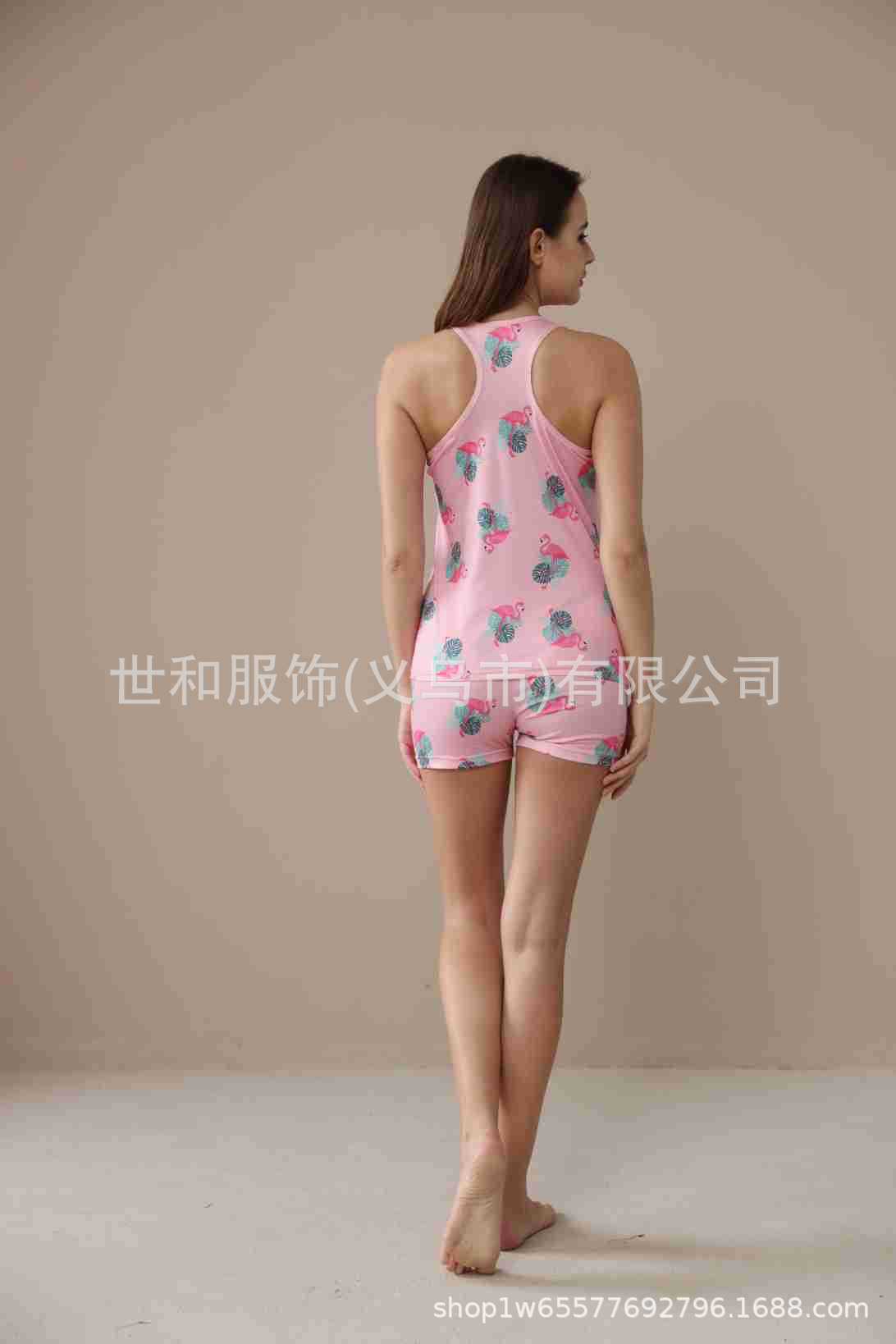 spring and summer new foreign trade women's large size printed vest shorts pajamas suit 中文版
