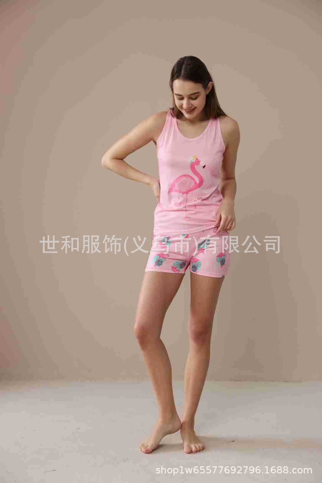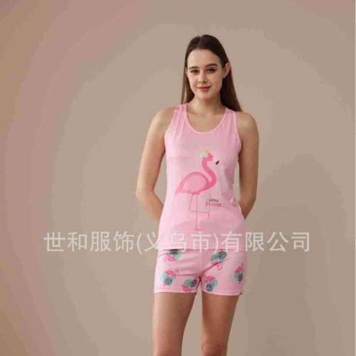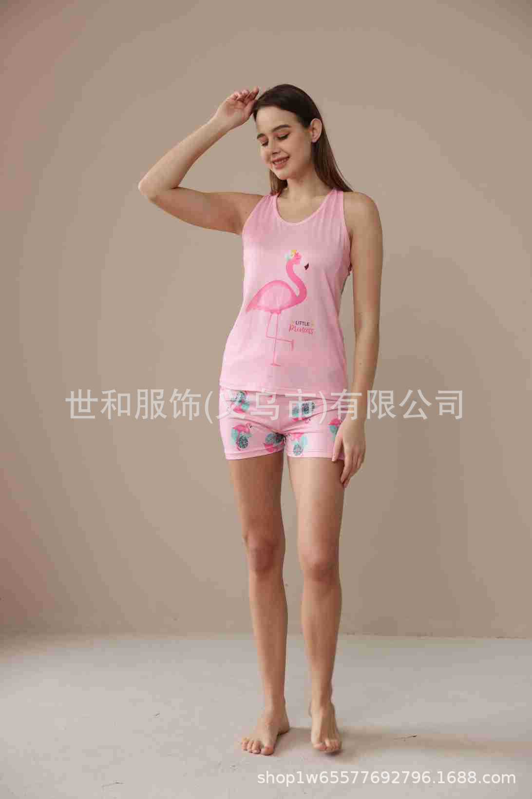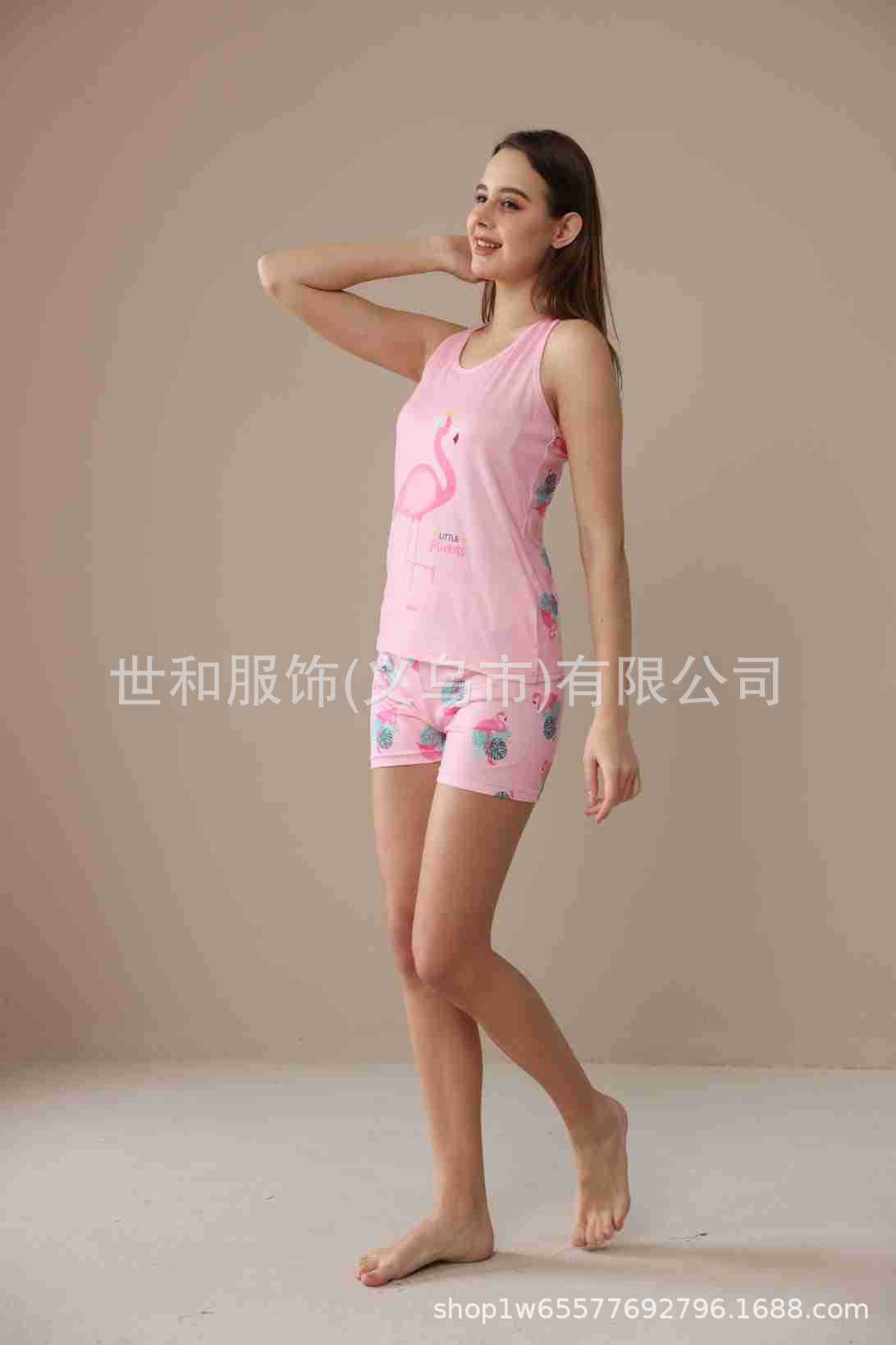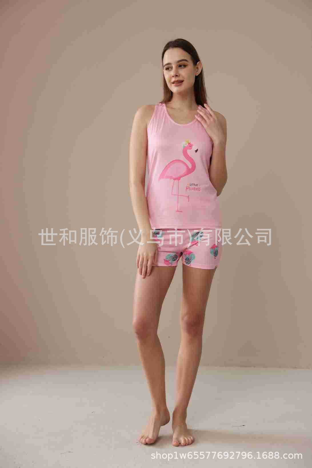 spring and summer new foreign trade women's large size printed vest shorts pajamas suit 中文版
