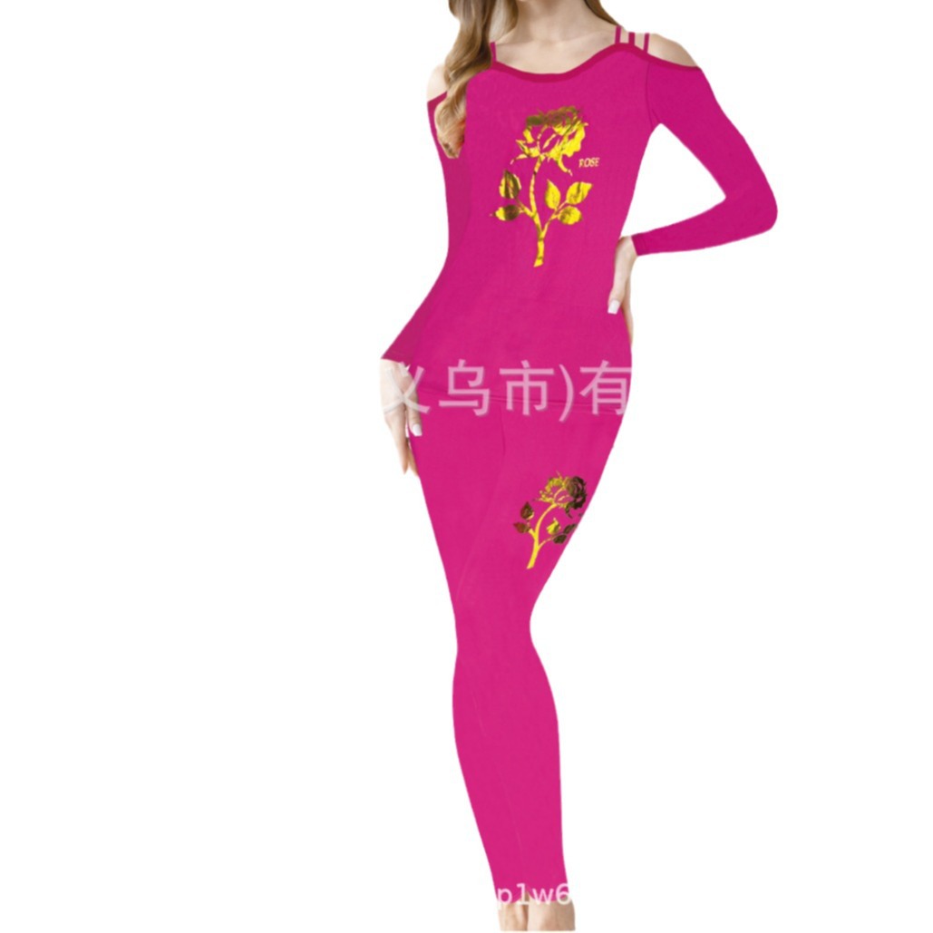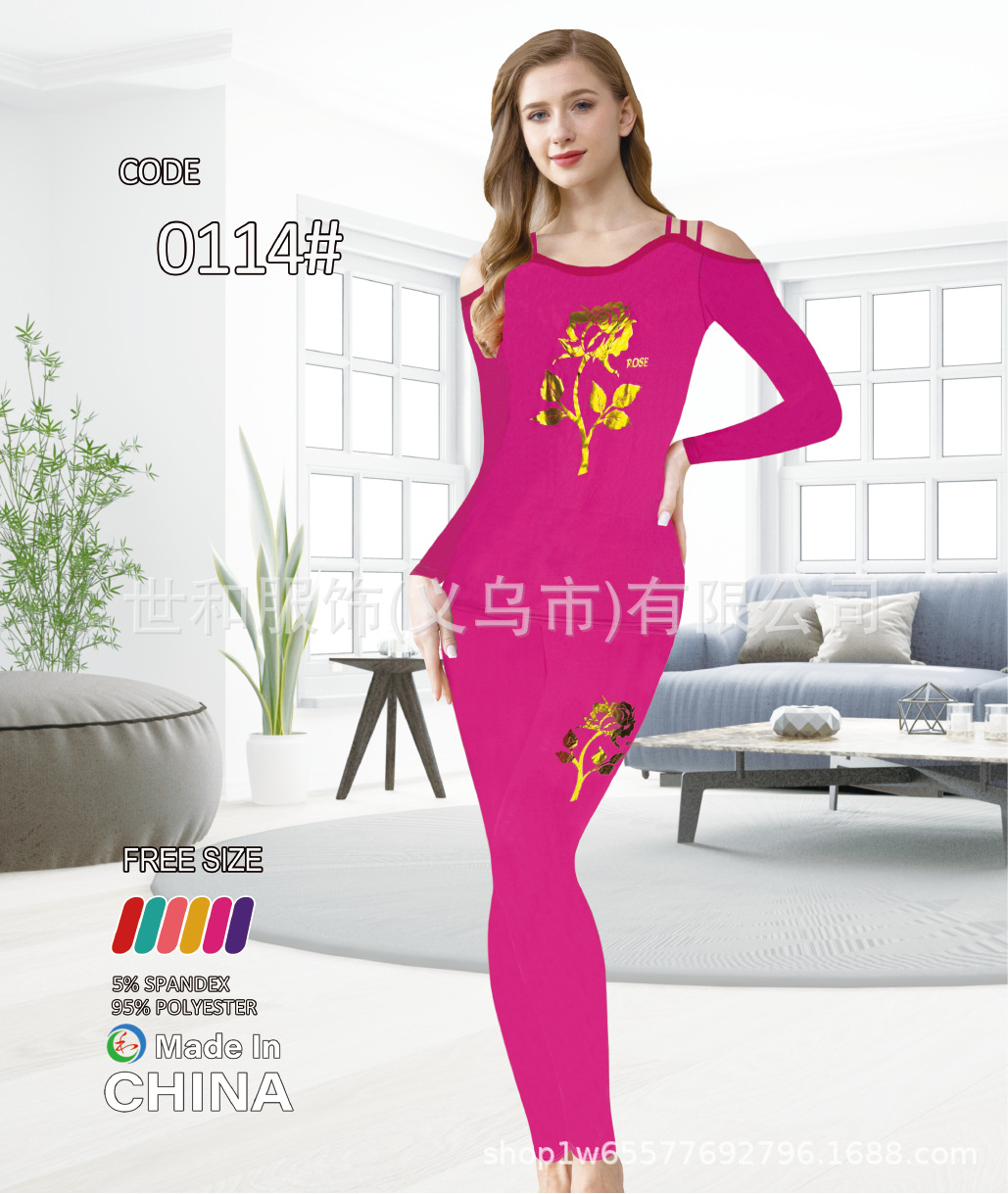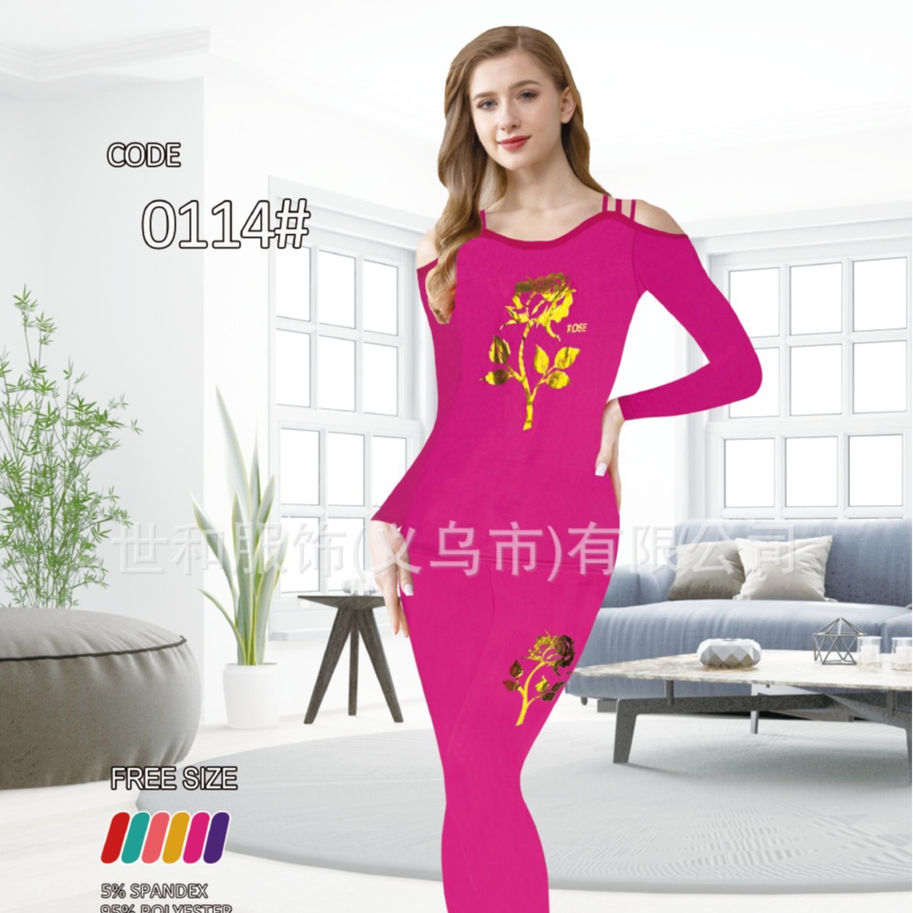 spring and summer new women's foreign trade long-sleeved trousers printing suit 中文版