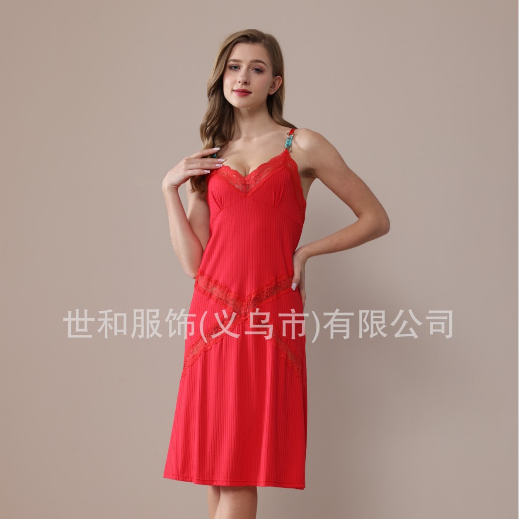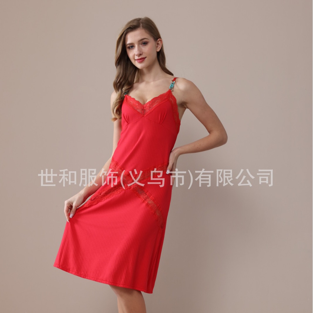 spring and summer new sunken stripe nightdress lace chain strap foreign trade women's nightdress 中文版