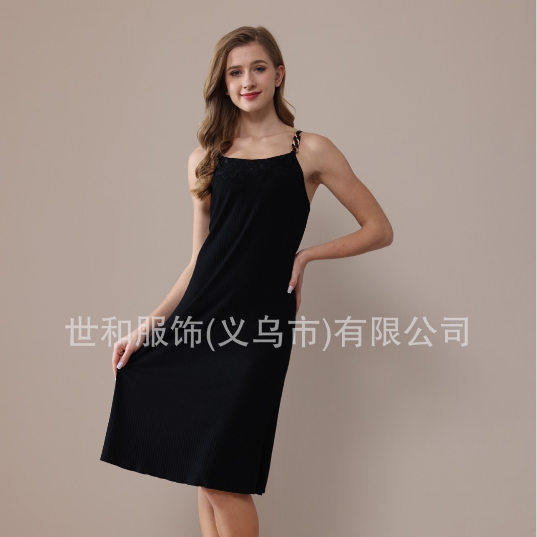 spring and summer new sunken stripe nightdress chain strap foreign trade women's nightdress 中文版