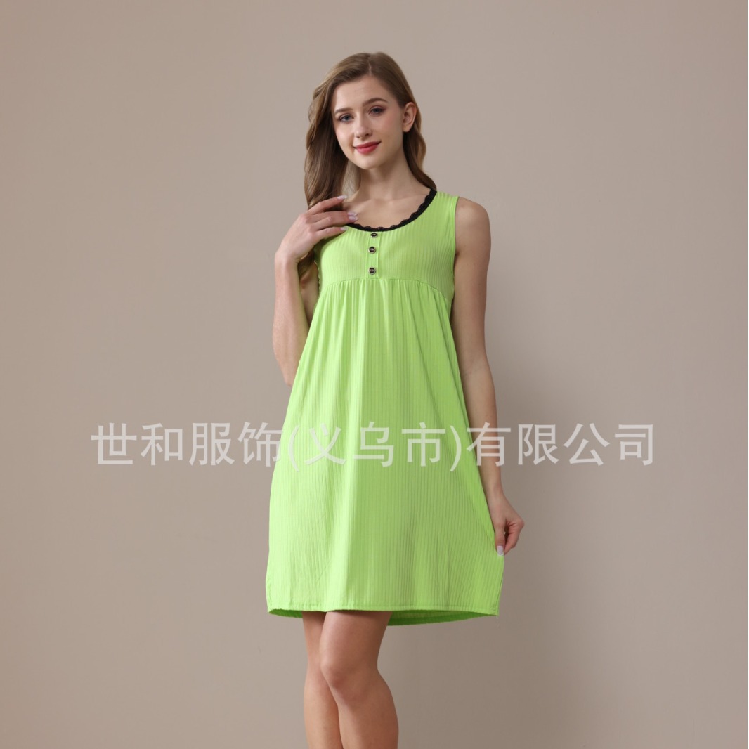 spring and summer new sunken stripe nightdress lace wide shoulder foreign trade women's nightdress 中文版
