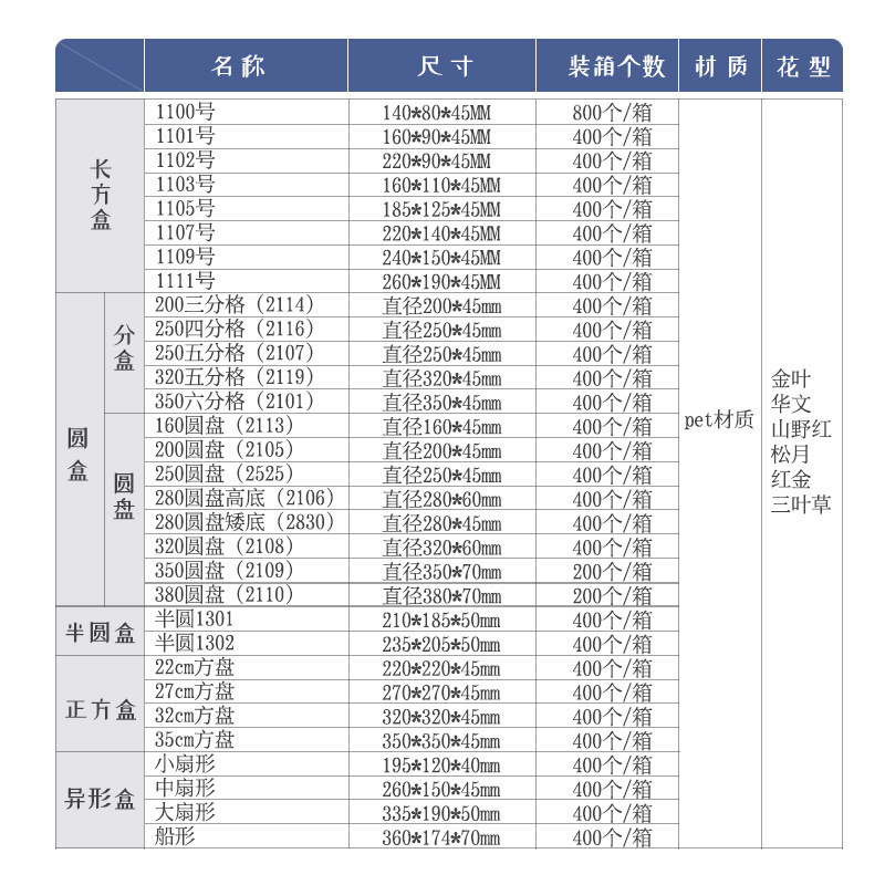 golden leaf six compartments 35cm 25 sets