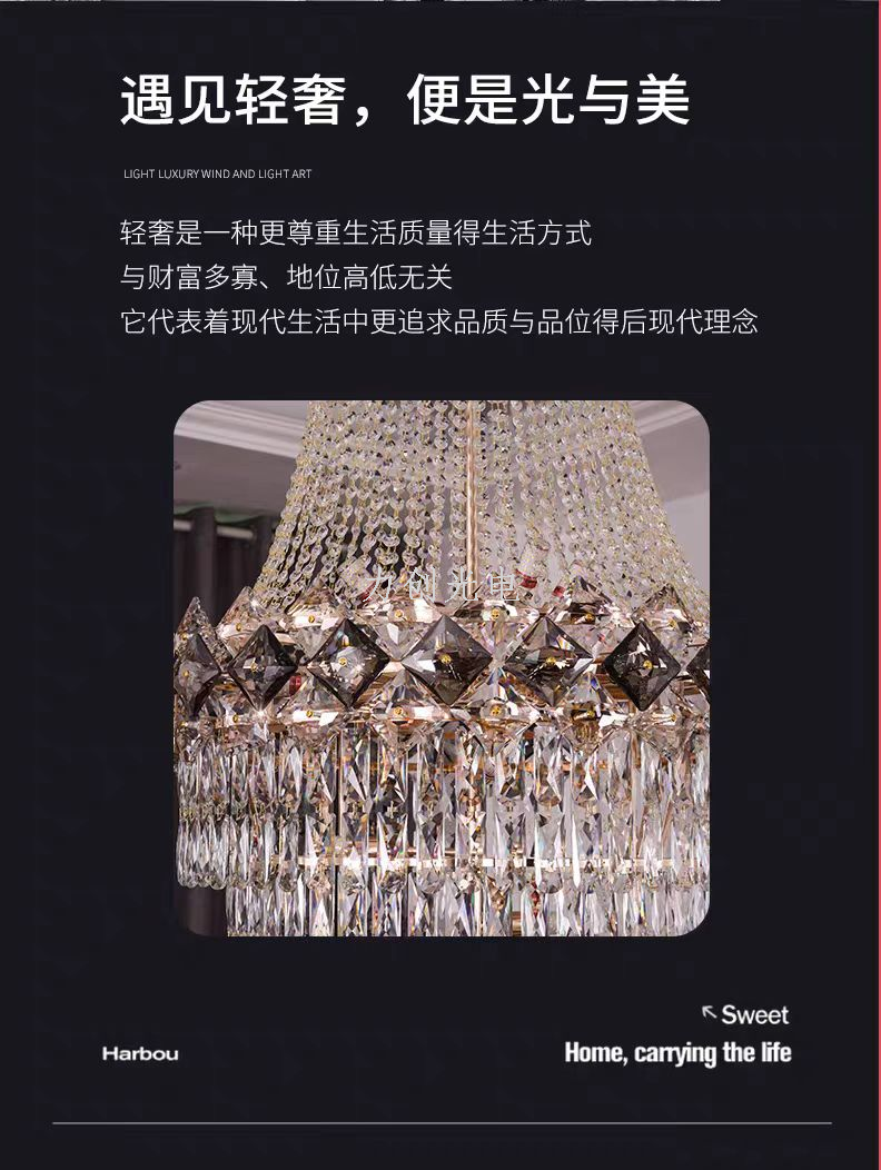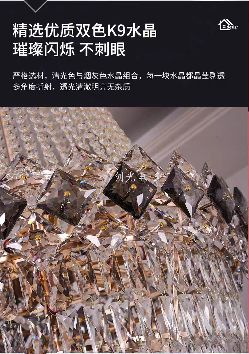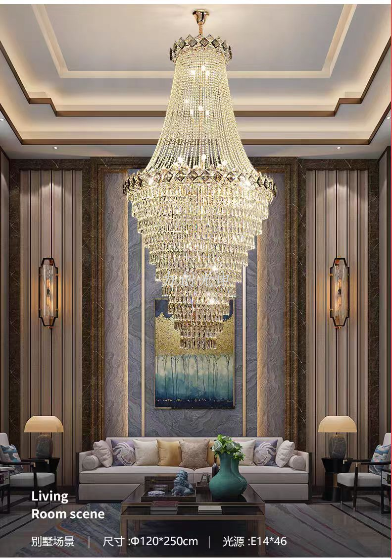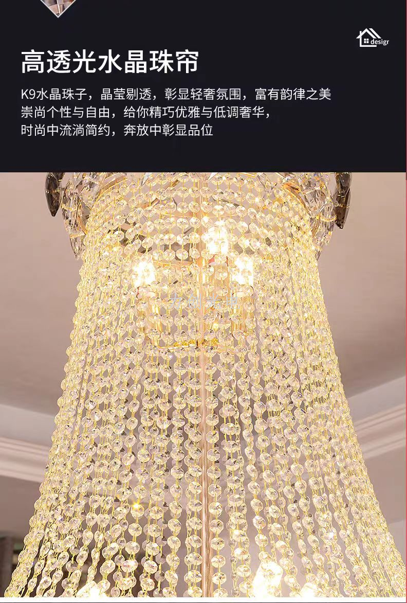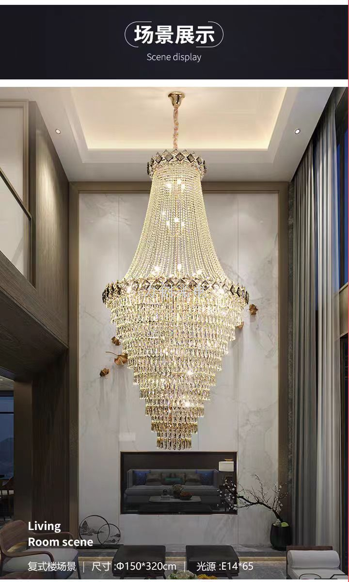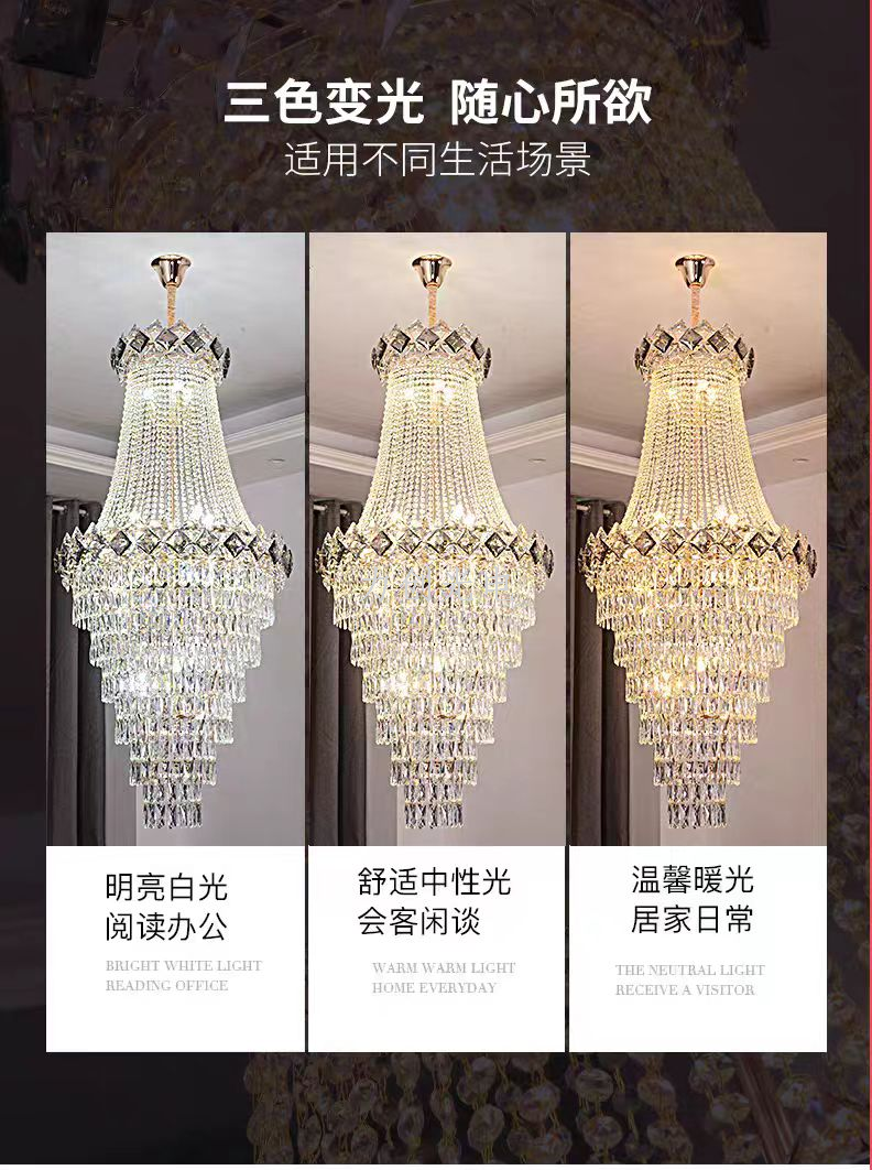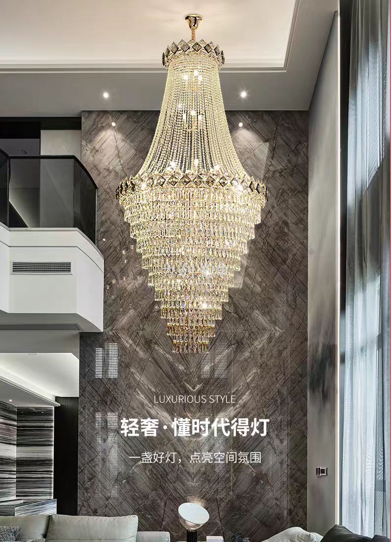 duplex building chandelier villa living room empty light luxury crystal staircase hall living room loft high-end atmospheric lamps 中文版